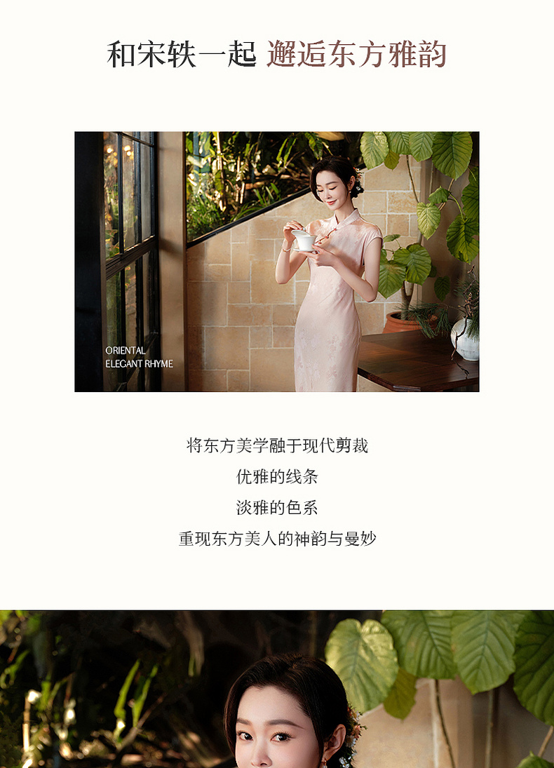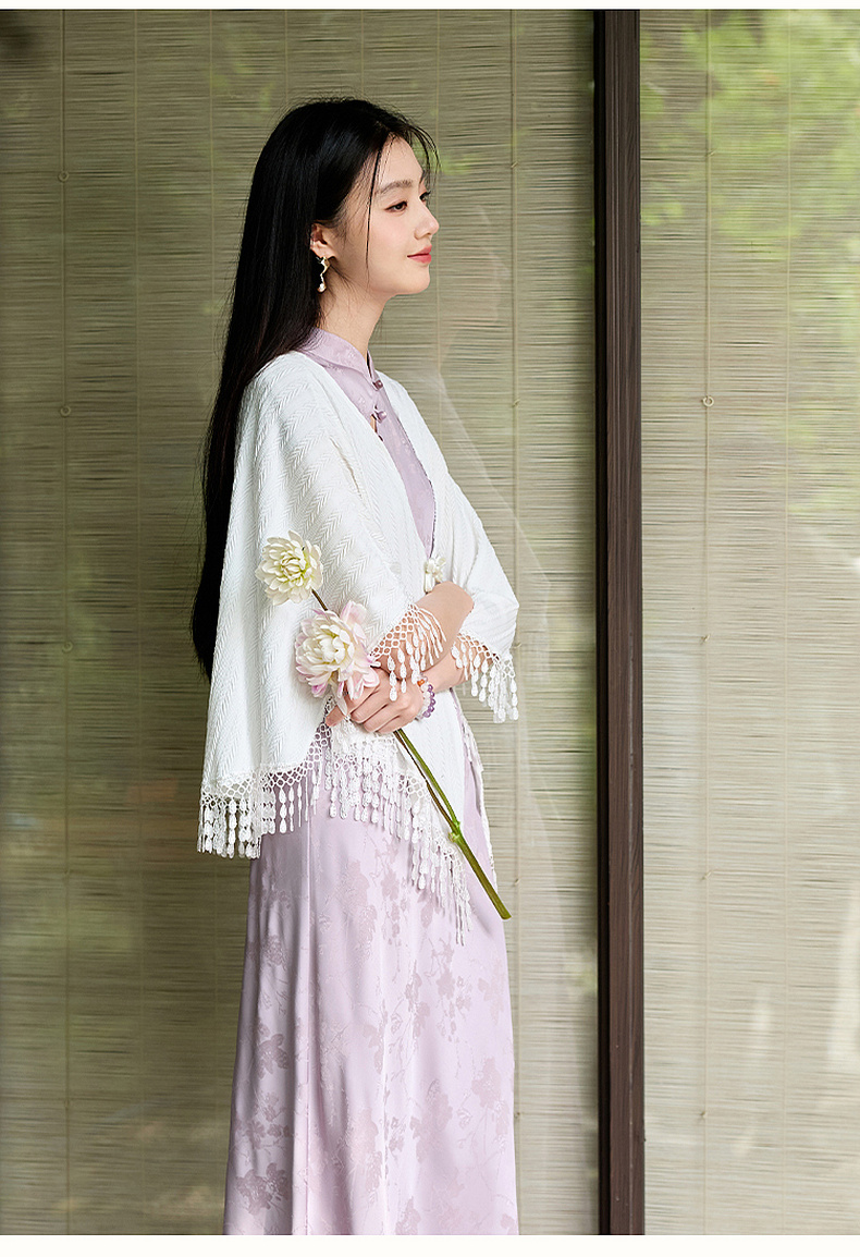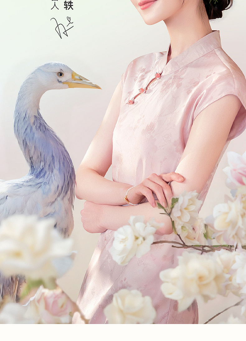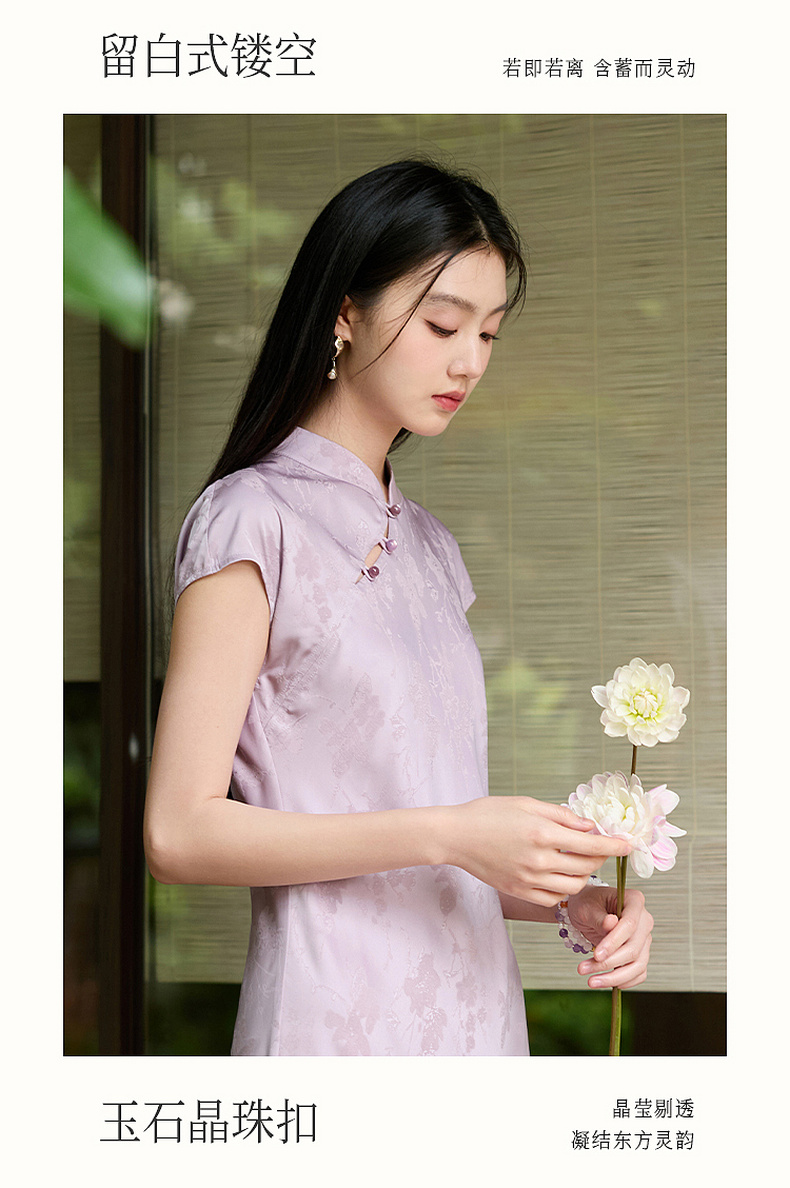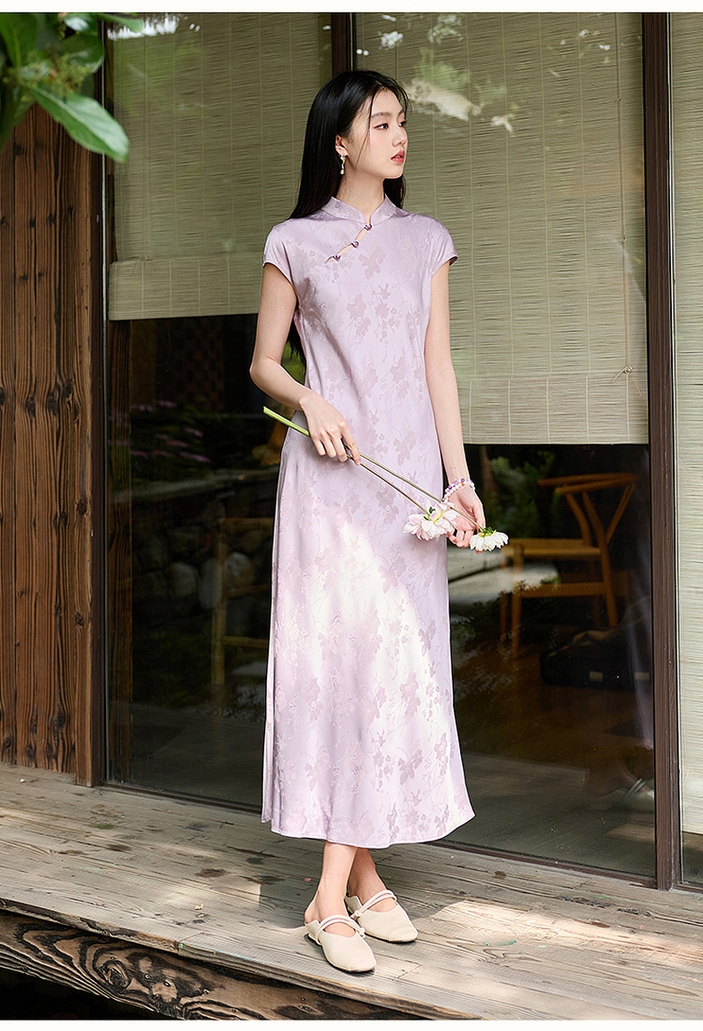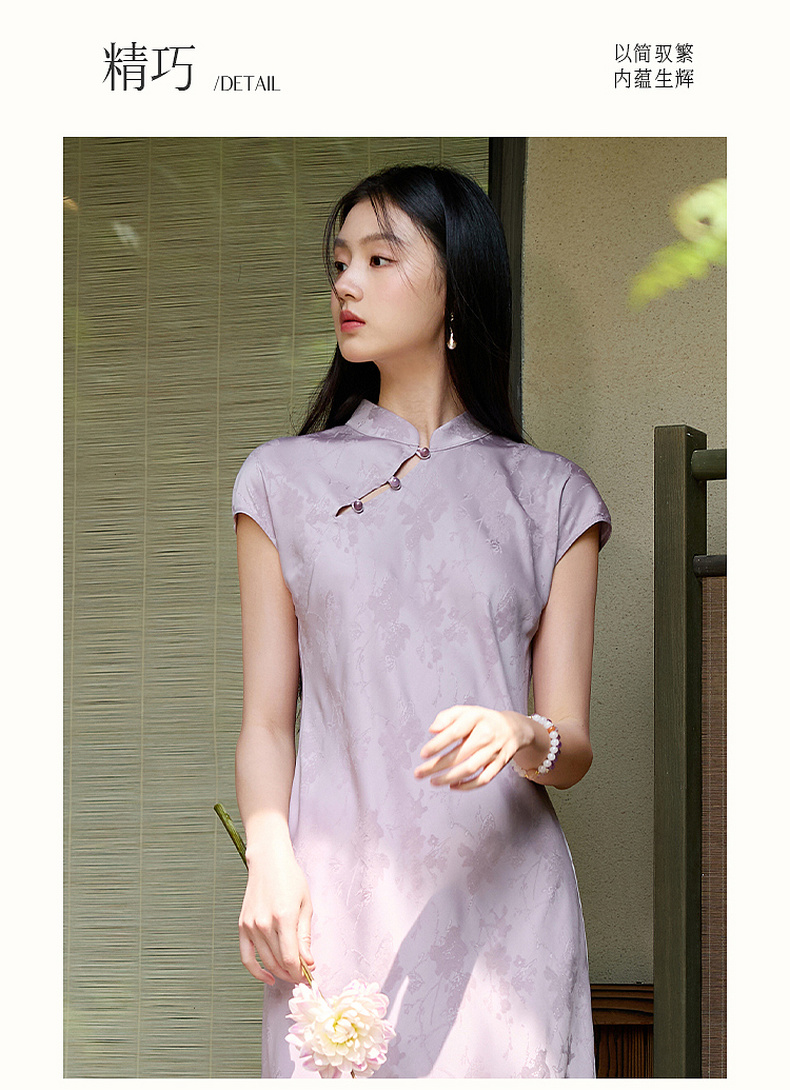 三彩【落樱浮影】2026春季新款新中式连衣裙提花A字裙长裙C