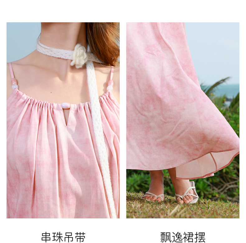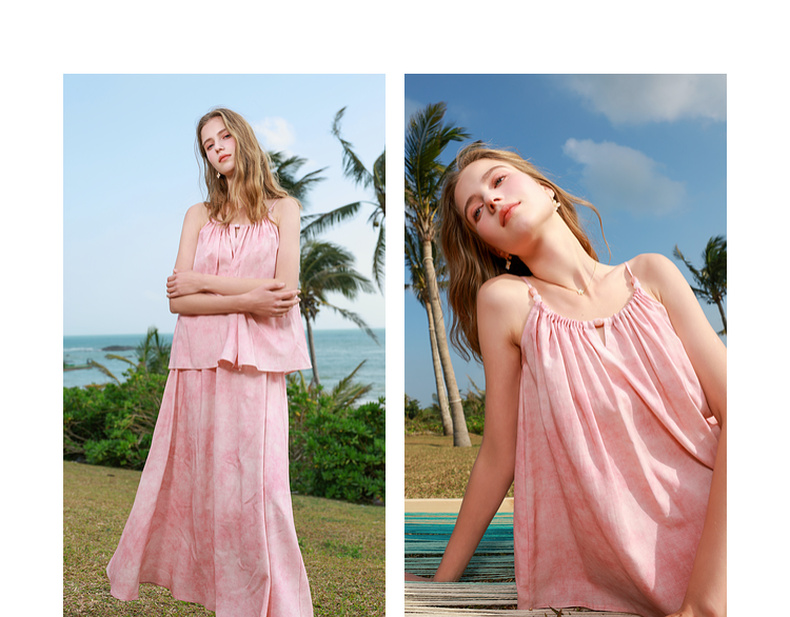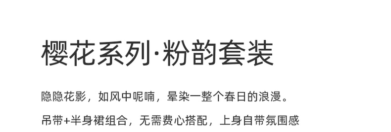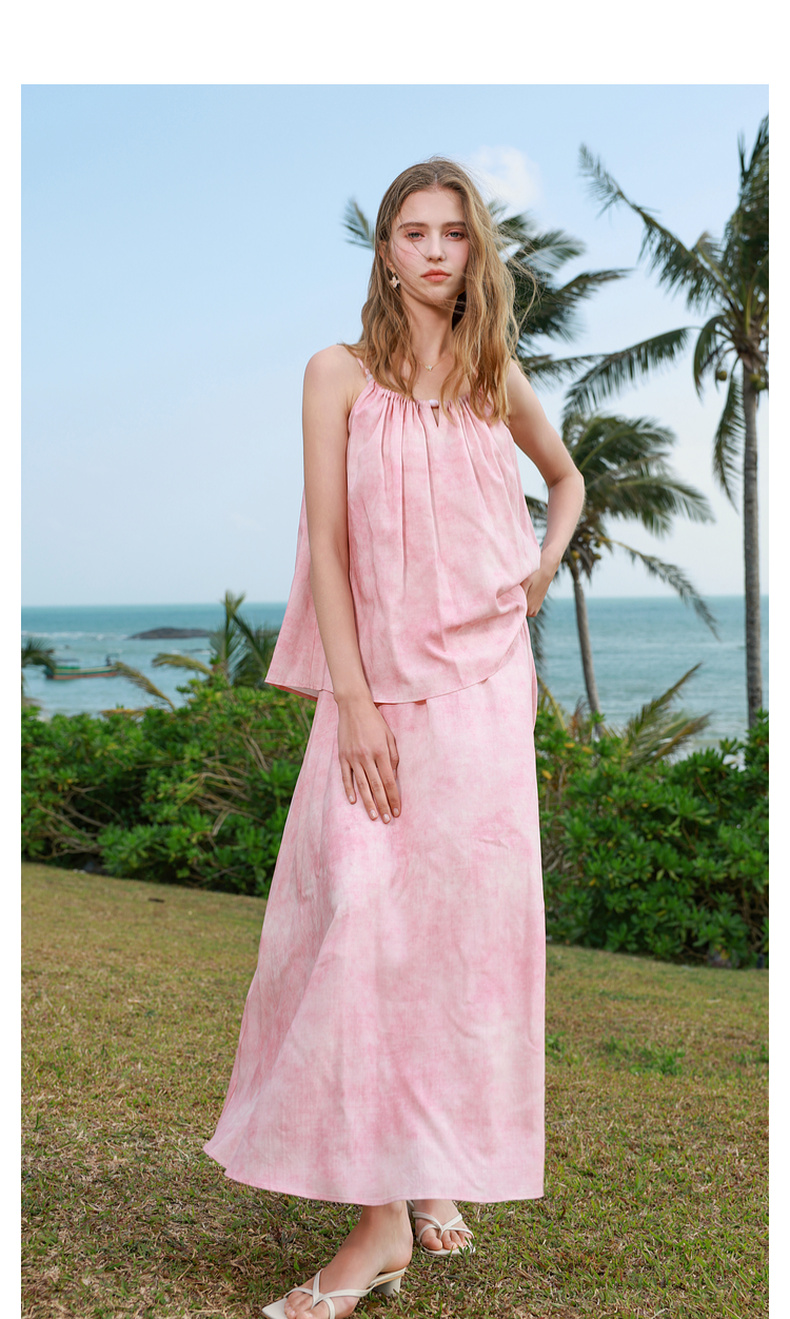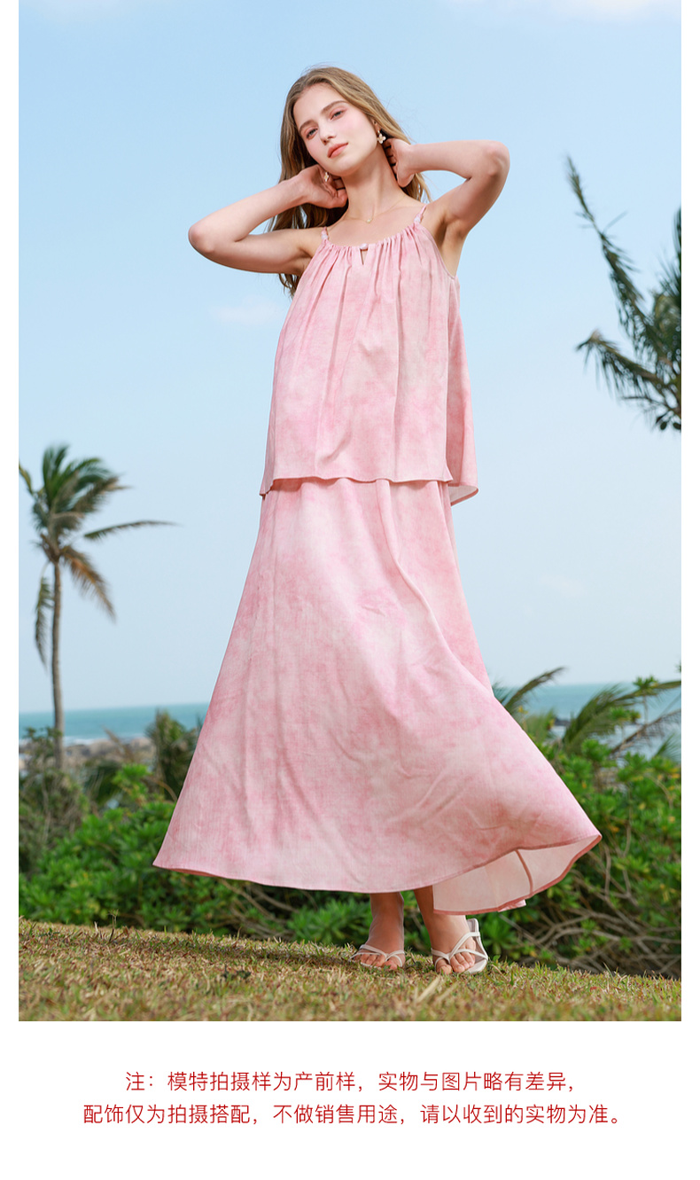 三彩2025春季新款樱花套装莱赛尔吊带上衣半身裙长裙度假M