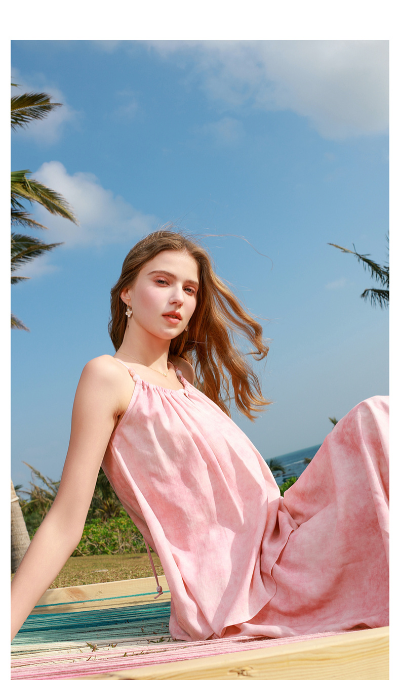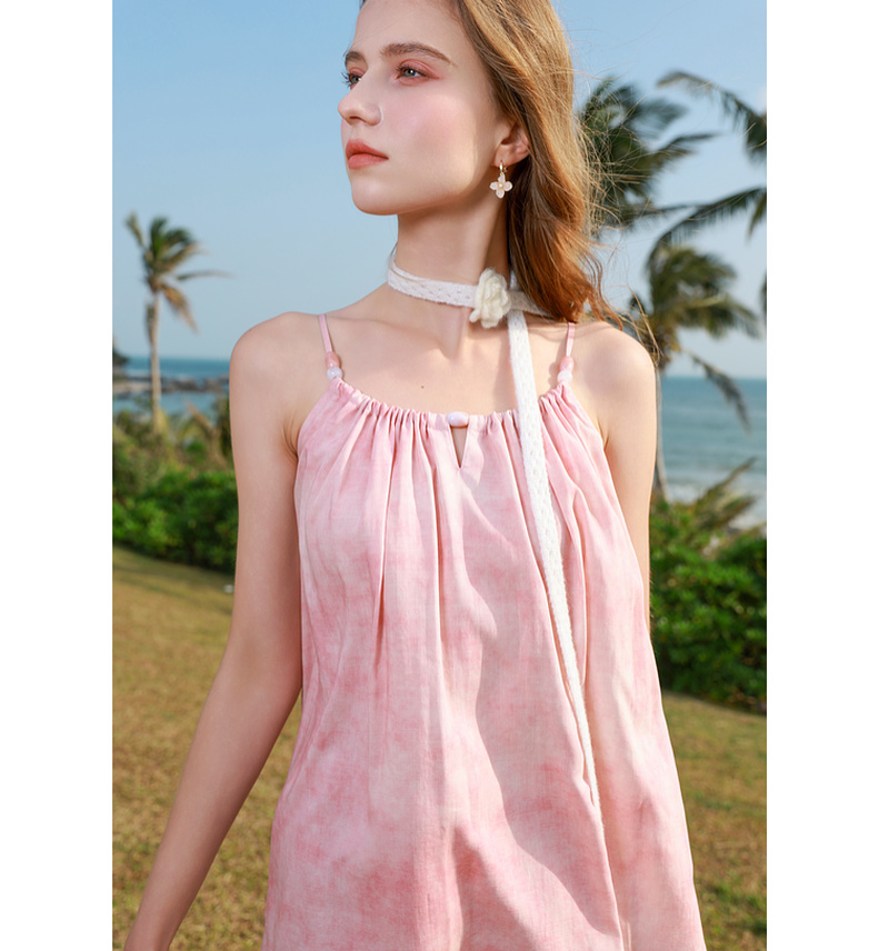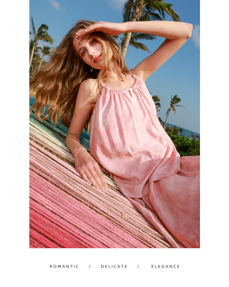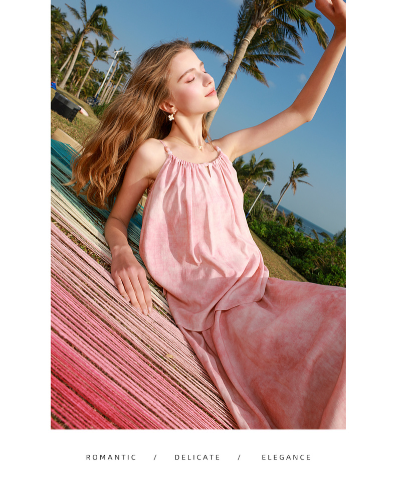 三彩2025春季新款樱花套装莱赛尔吊带上衣半身裙长裙度假M