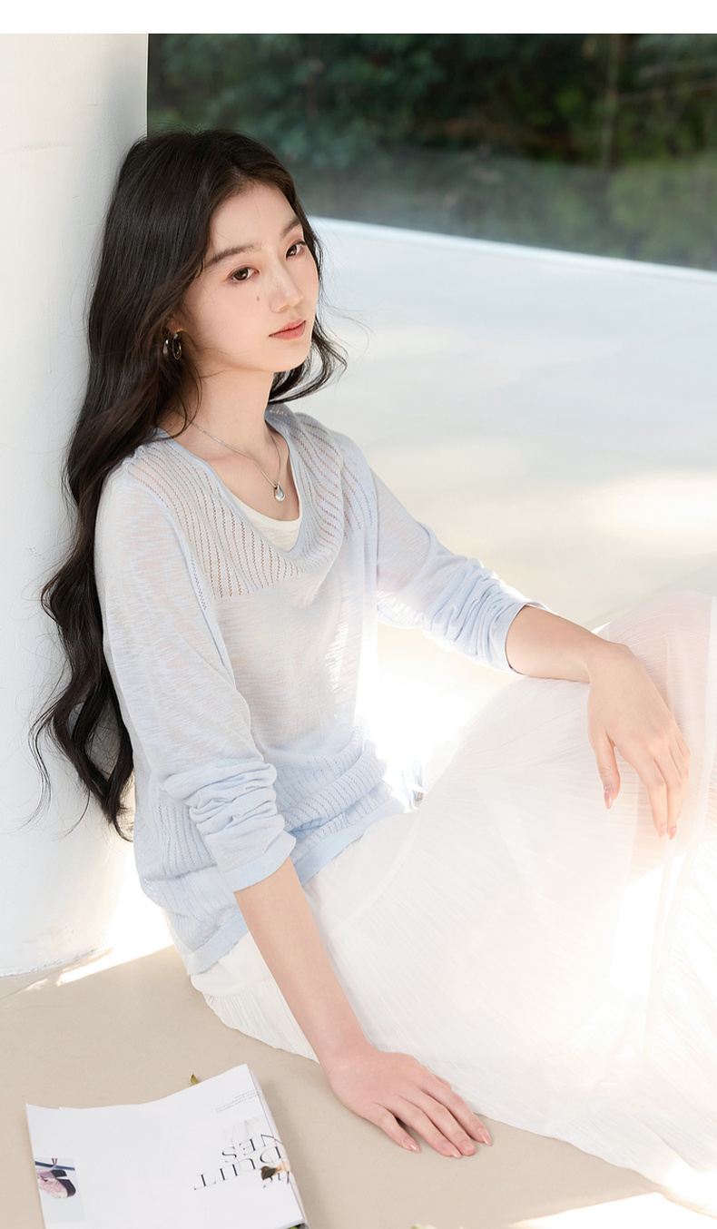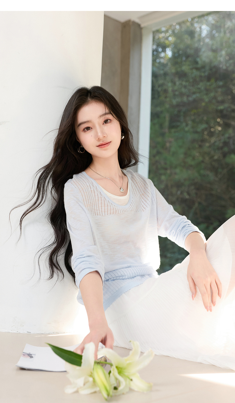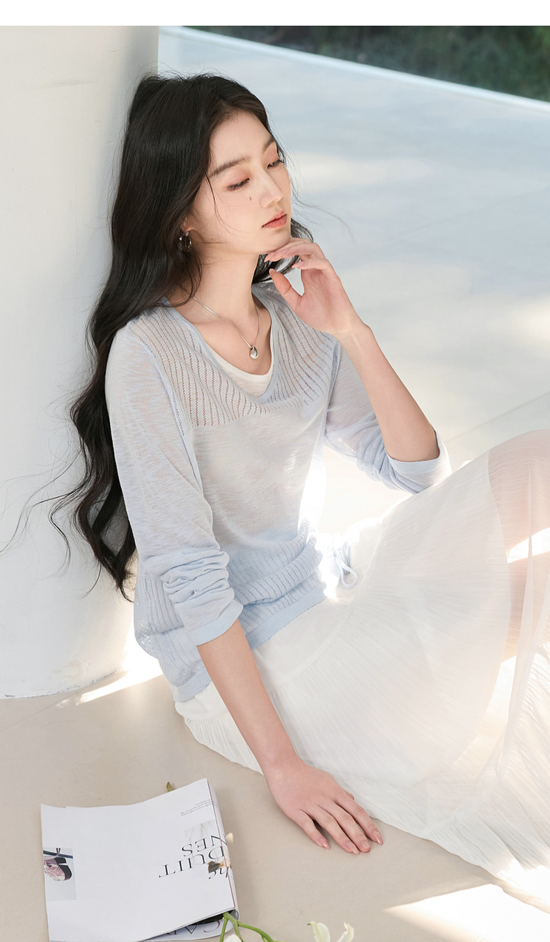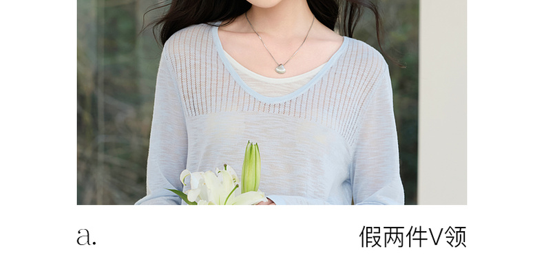 【莱赛尔】三彩2026春季新款假两件V领针织衫毛衫套头宽松休闲S