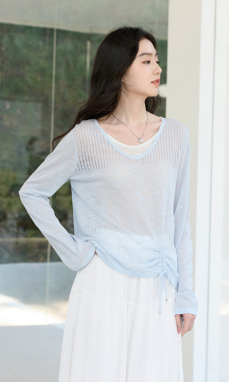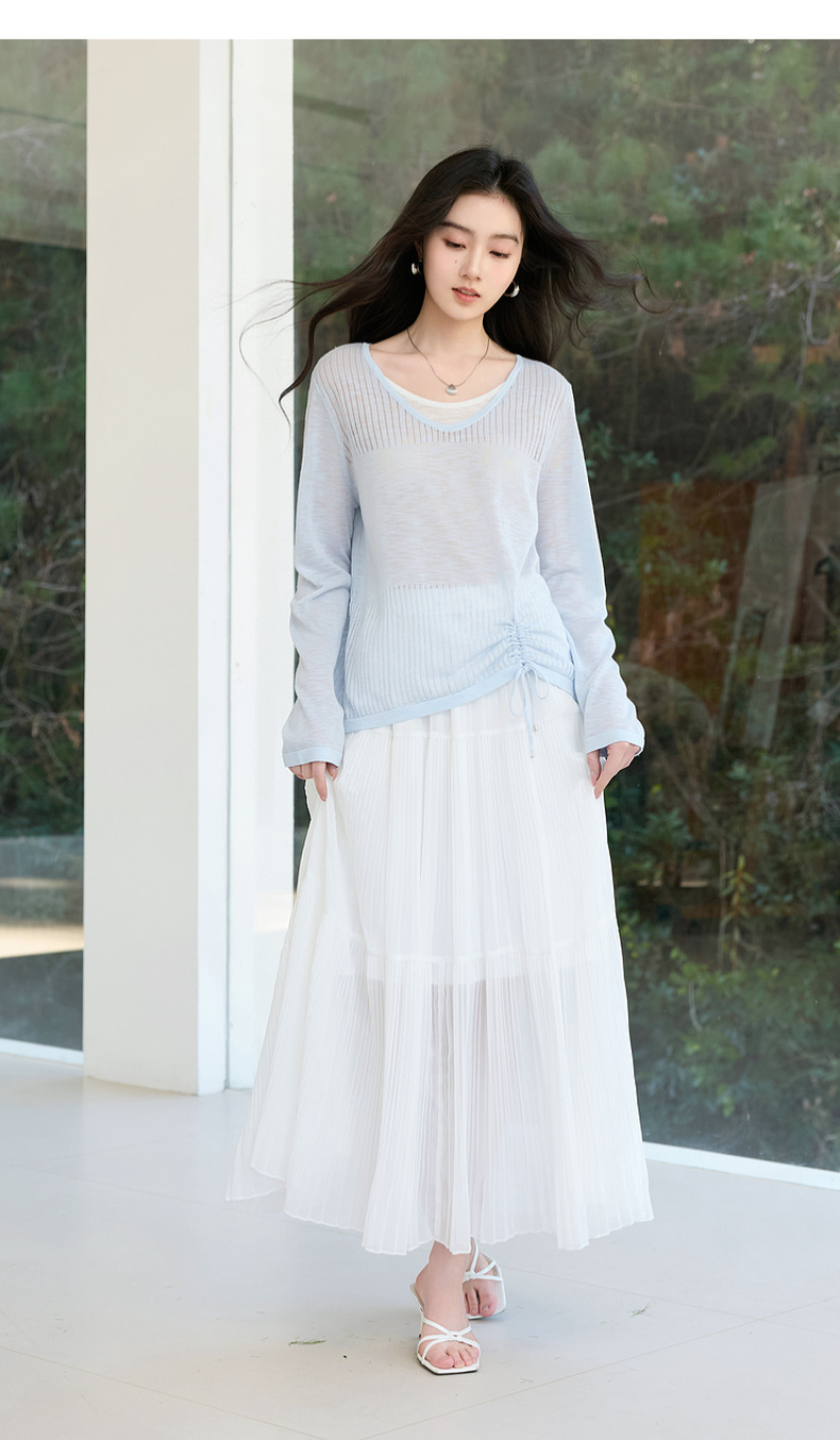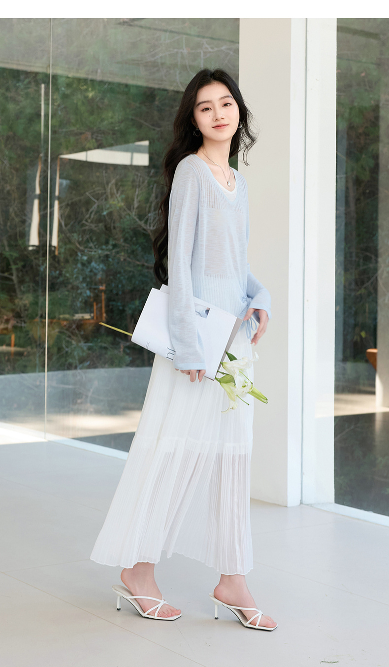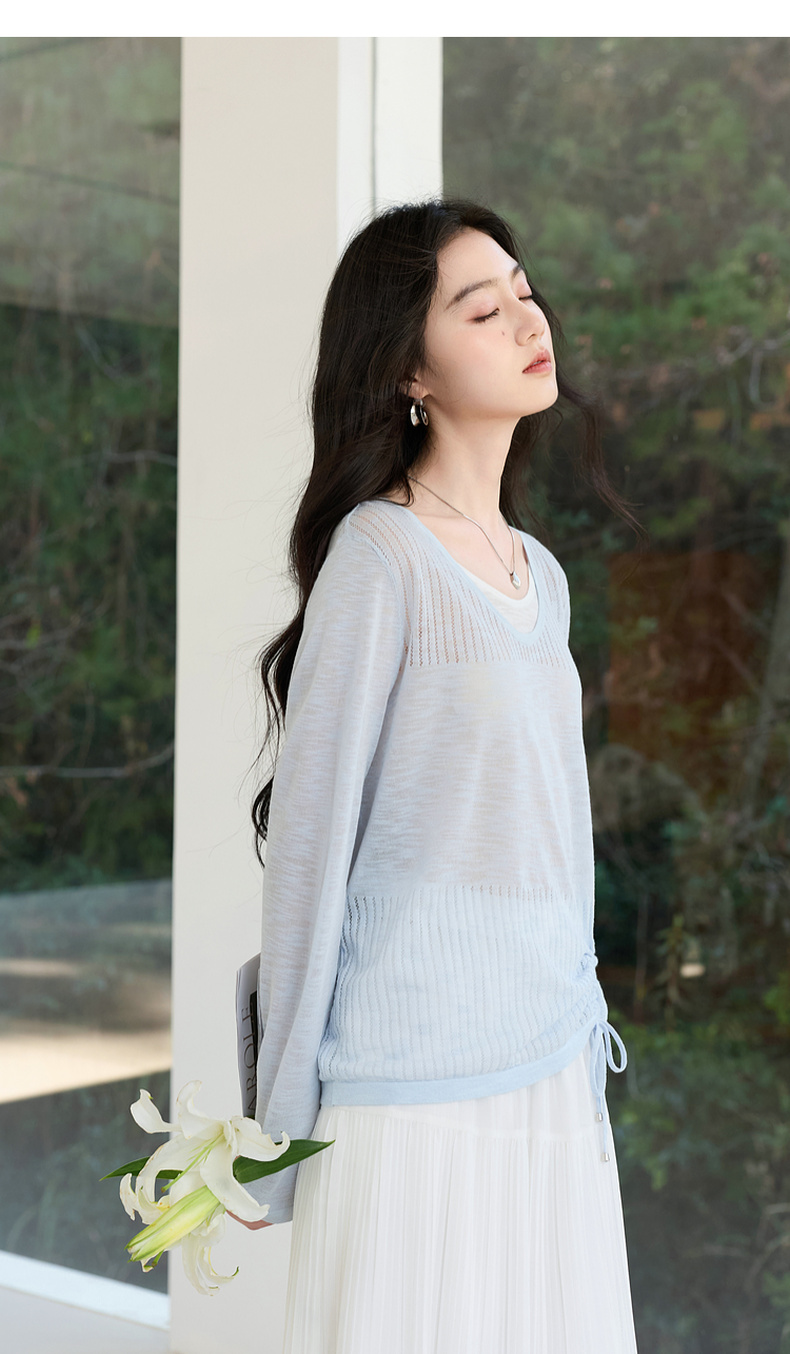 【莱赛尔】三彩2026春季新款假两件V领针织衫毛衫套头宽松休闲S