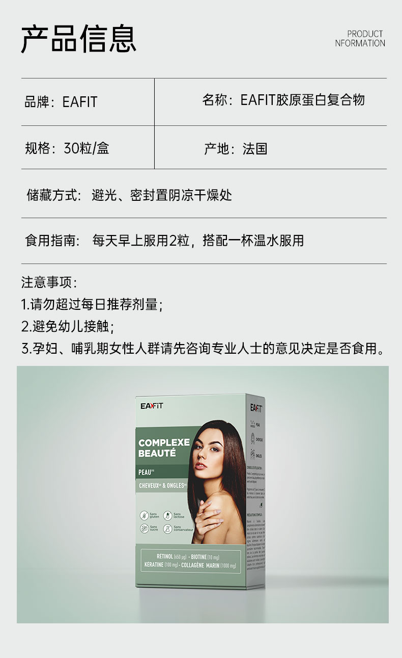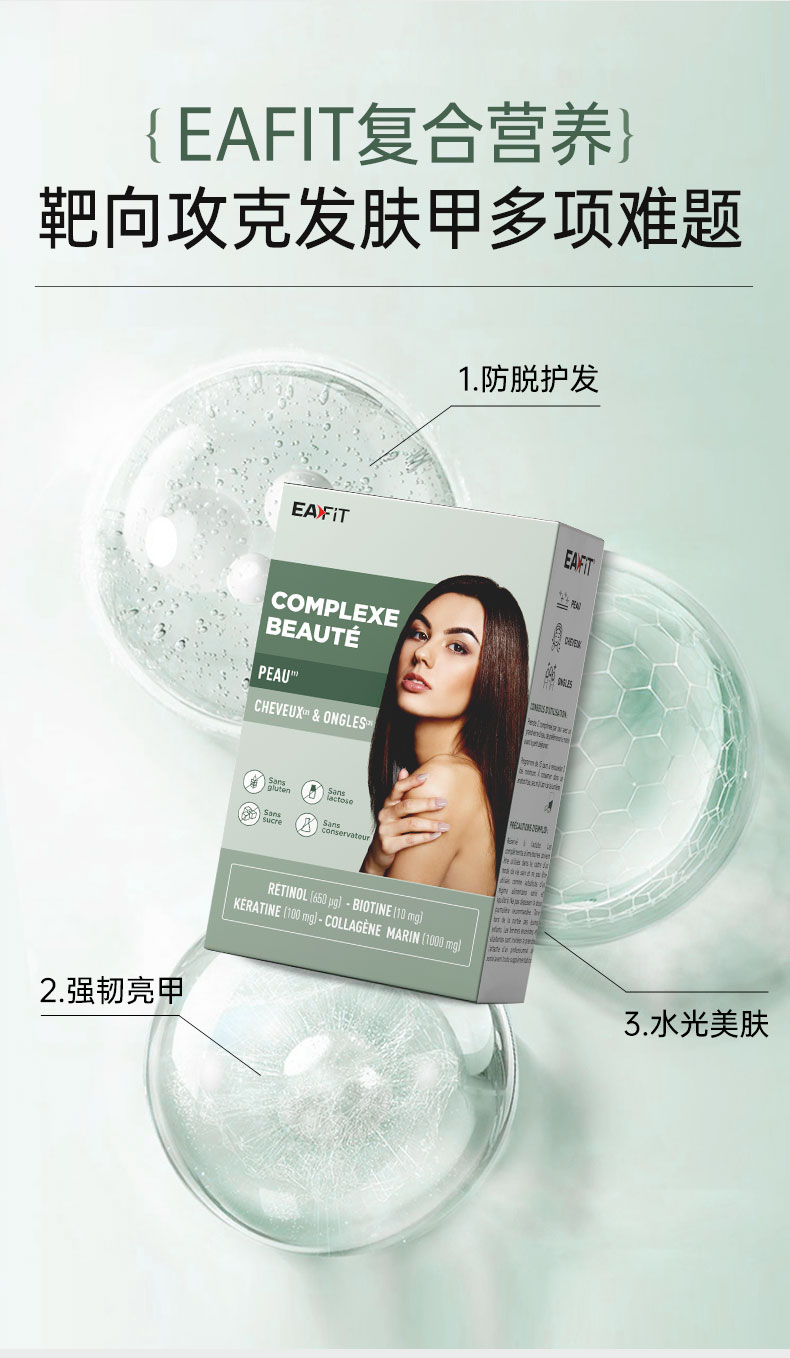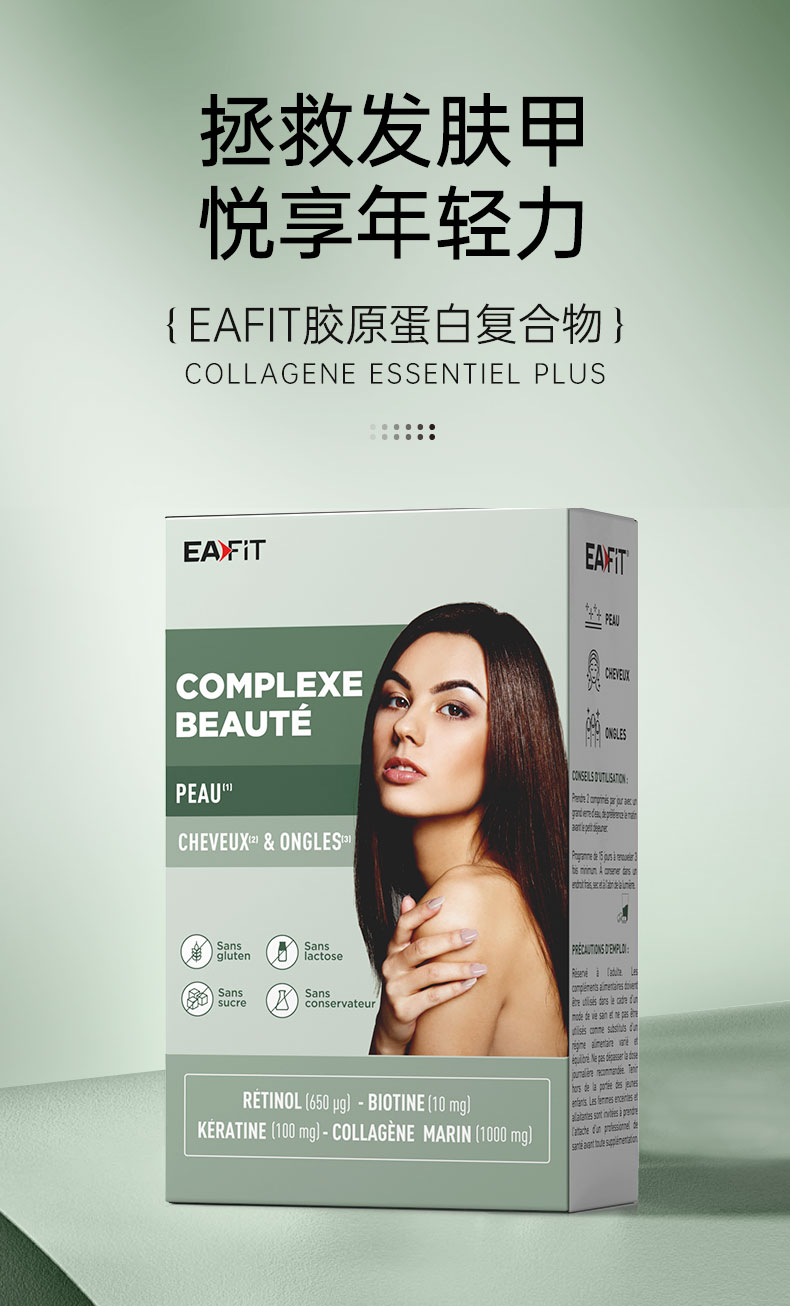 【限时特惠】法国进口EAFIT胶原蛋白美容复合物多纬营养固发亮甲美肤