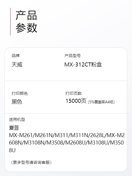 天威 MX-312CT粉盒 适用SHARP夏普MX-2608N碳粉M3508N/U M3108N/U墨盒2628L M261N M311N复印机墨粉 粉筒