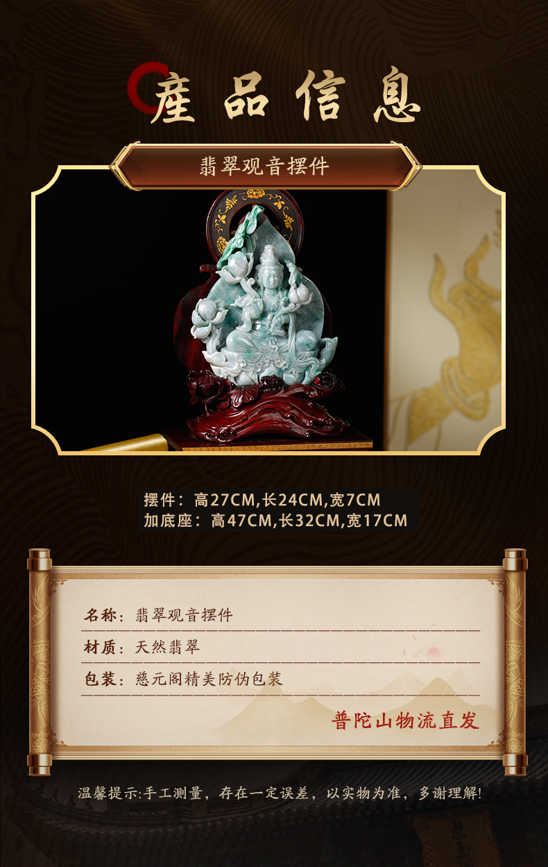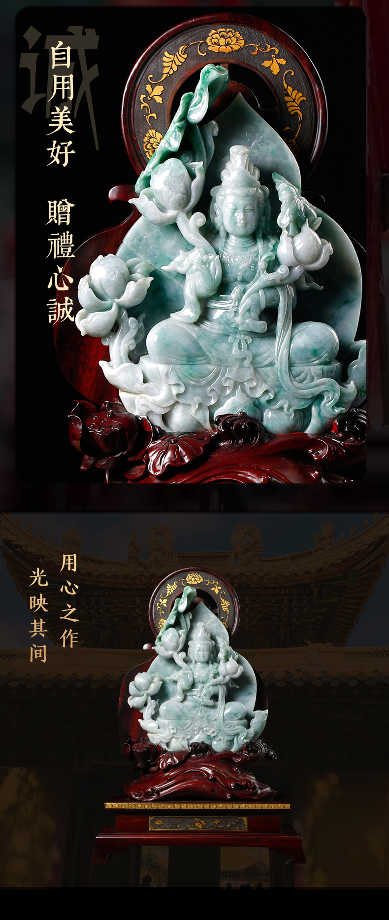 慈元阁定制清净生莲翡翠观音摆件家居办公室门店天然玉石摆设