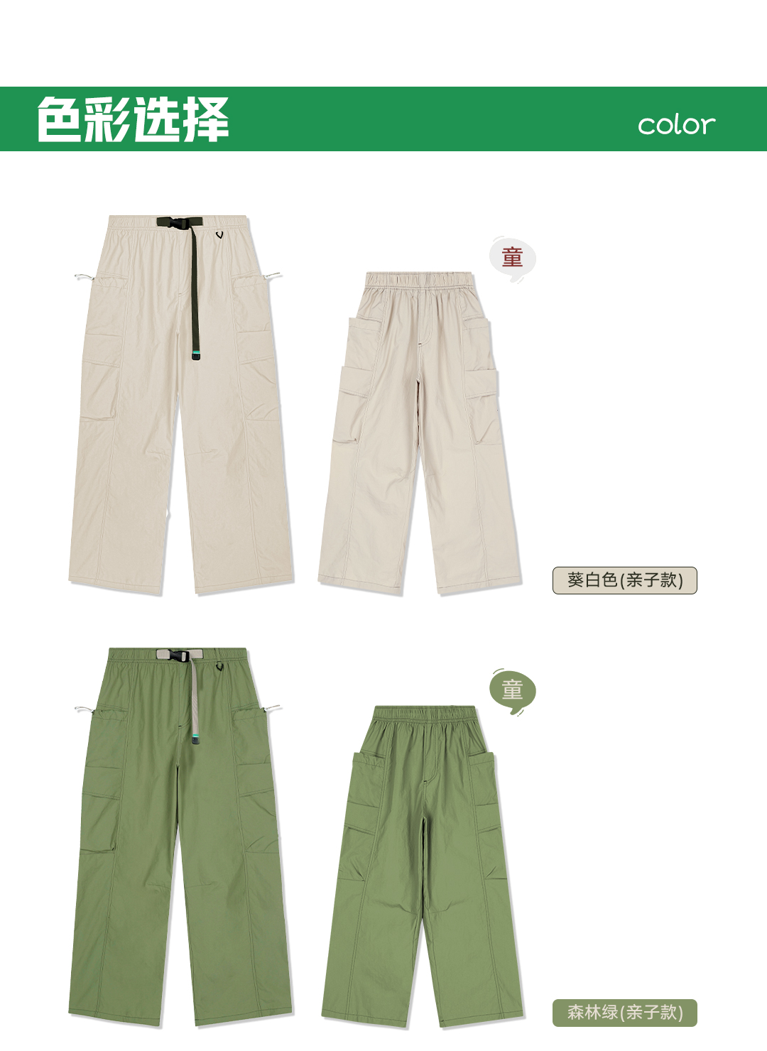 【降价福利】ACMEITEM 爱棵米 春户外亲子防泼水直筒工装裤休闲宽松长裤子男女 GAG3020815A GAG3020868A
