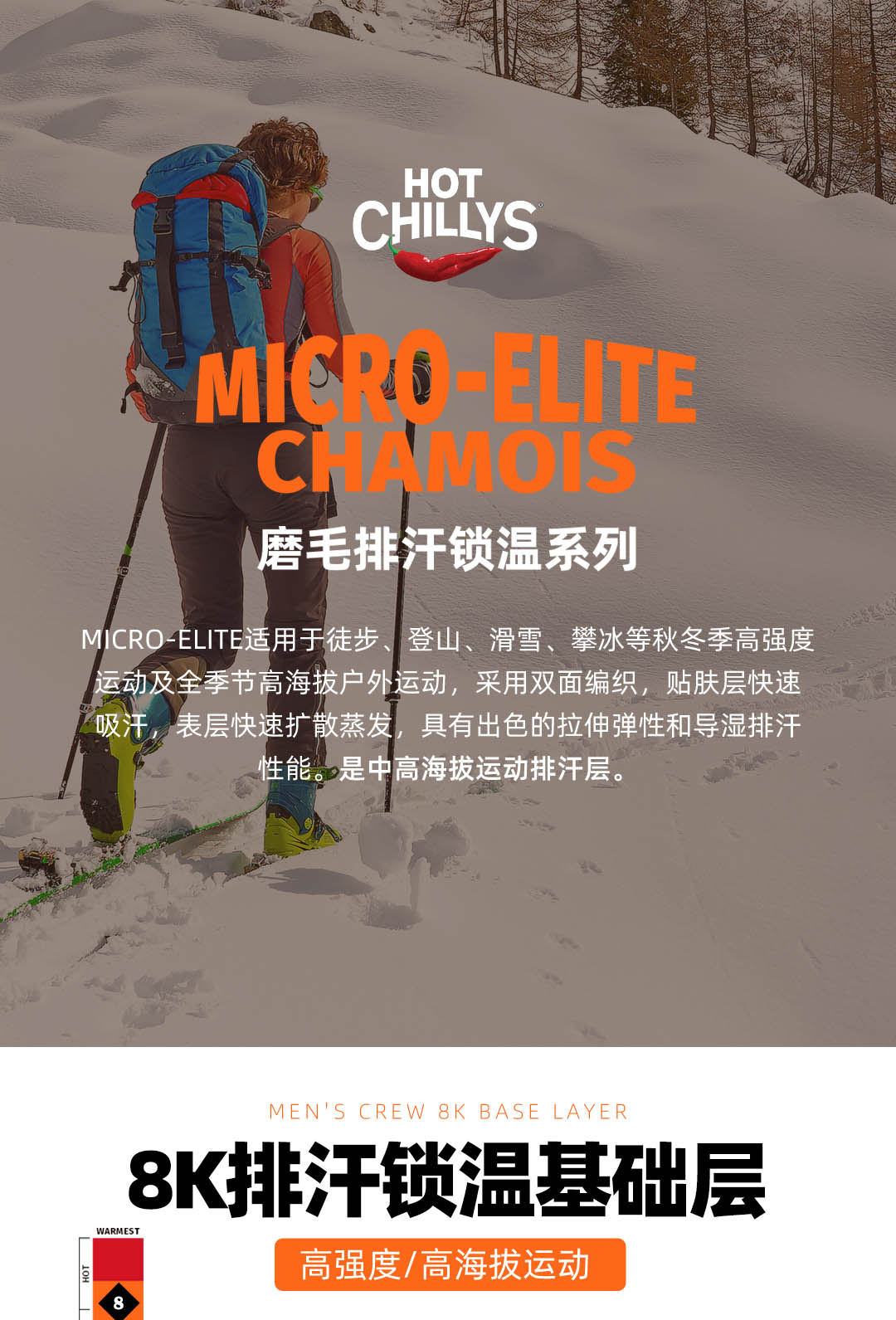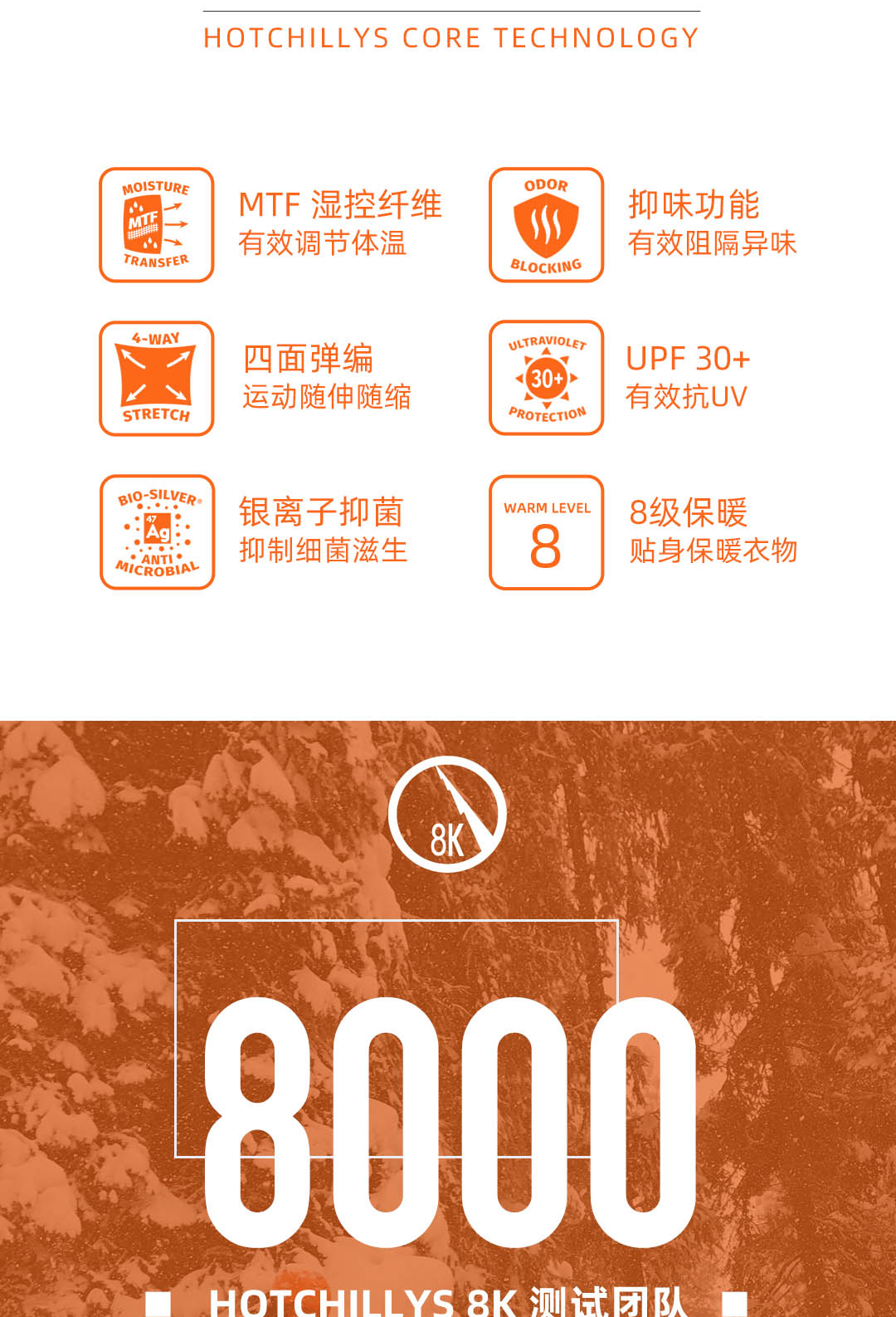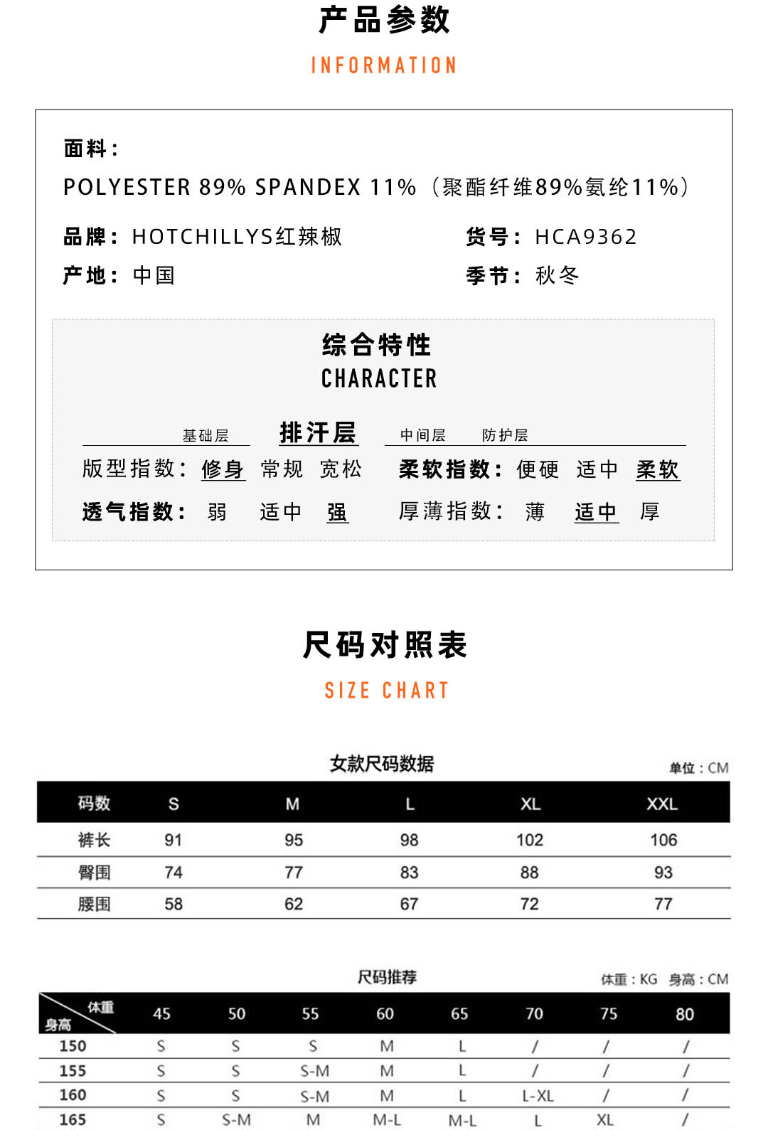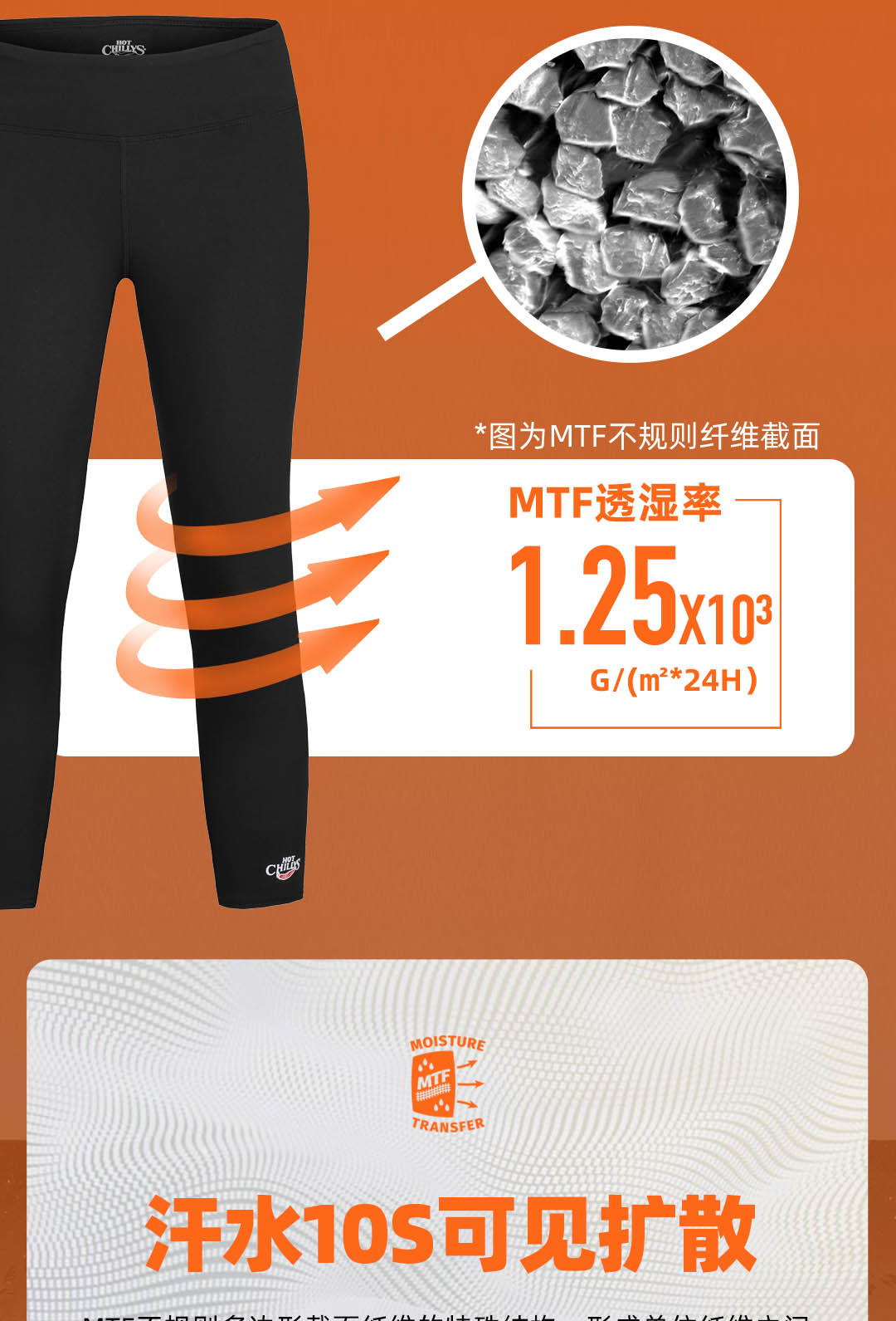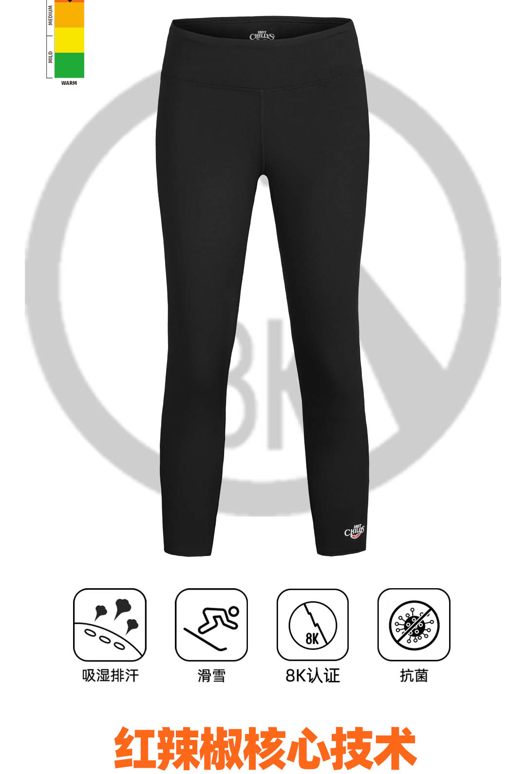 HOTCHILLYS热椒8K磨毛运动排汗七分裤女滑雪速干紧身裤HCA9632