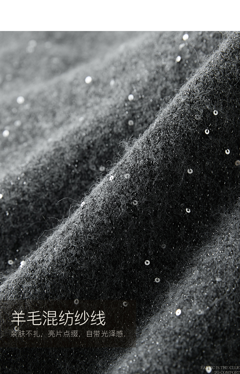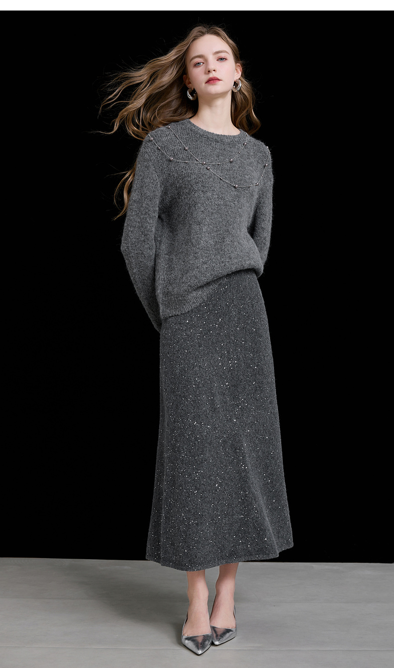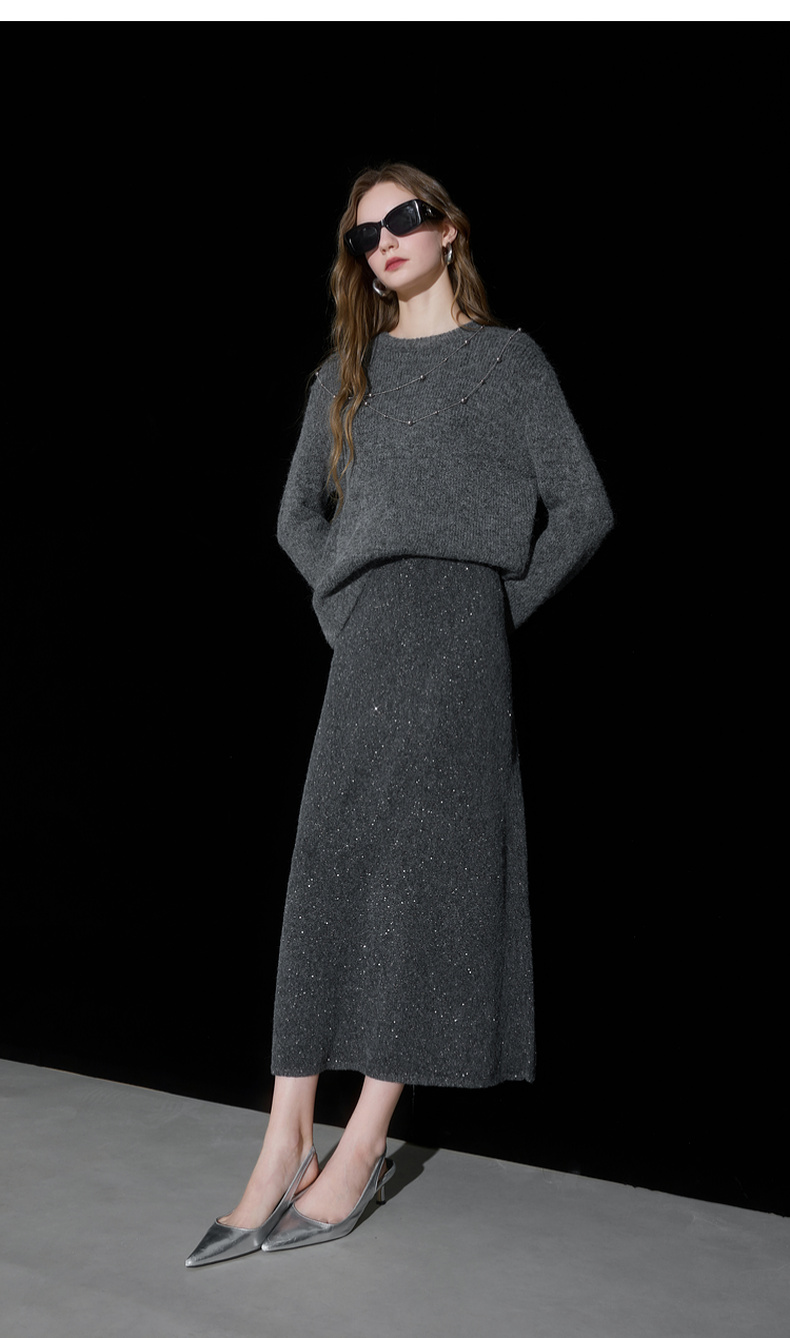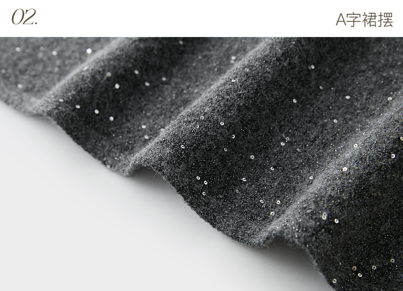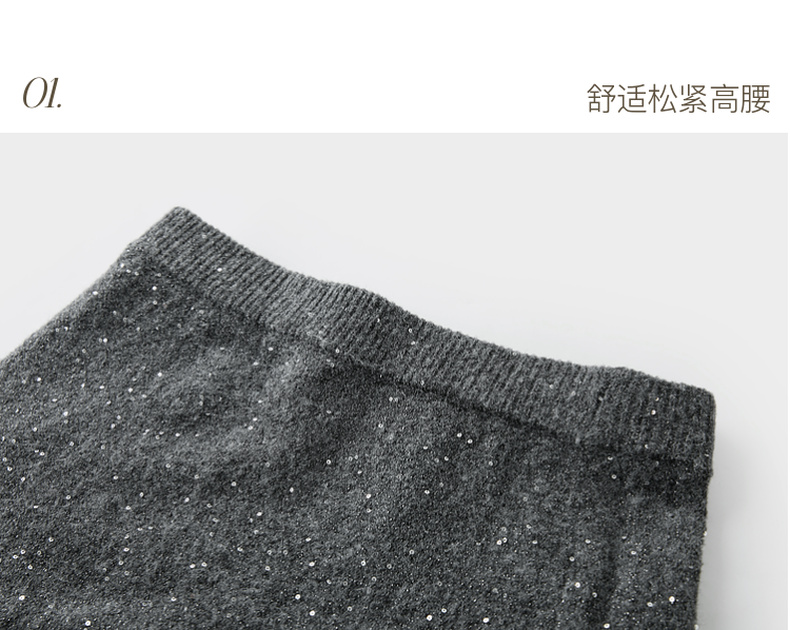 三彩2025冬季新款亮片针织裙高腰松紧半身裙A字裙长裙气质M