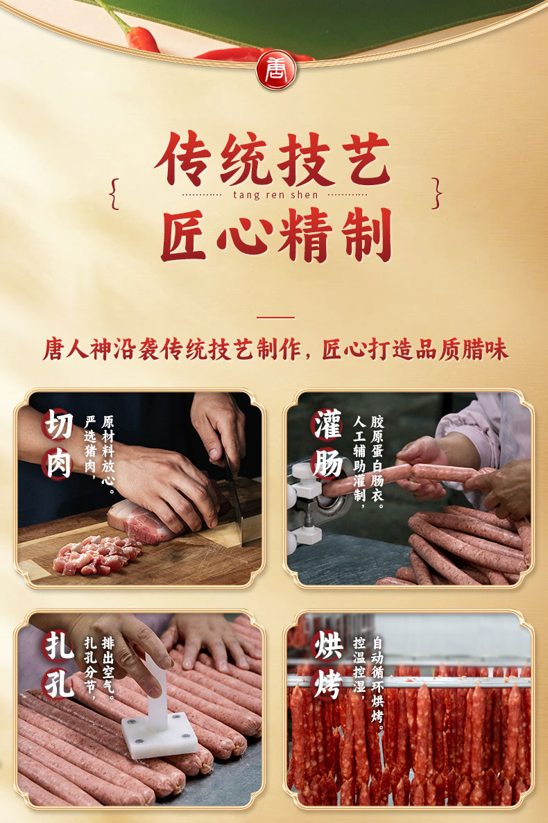 唐人神 茶花香肠腊肠500g湖南特产微咸香肠腊肠