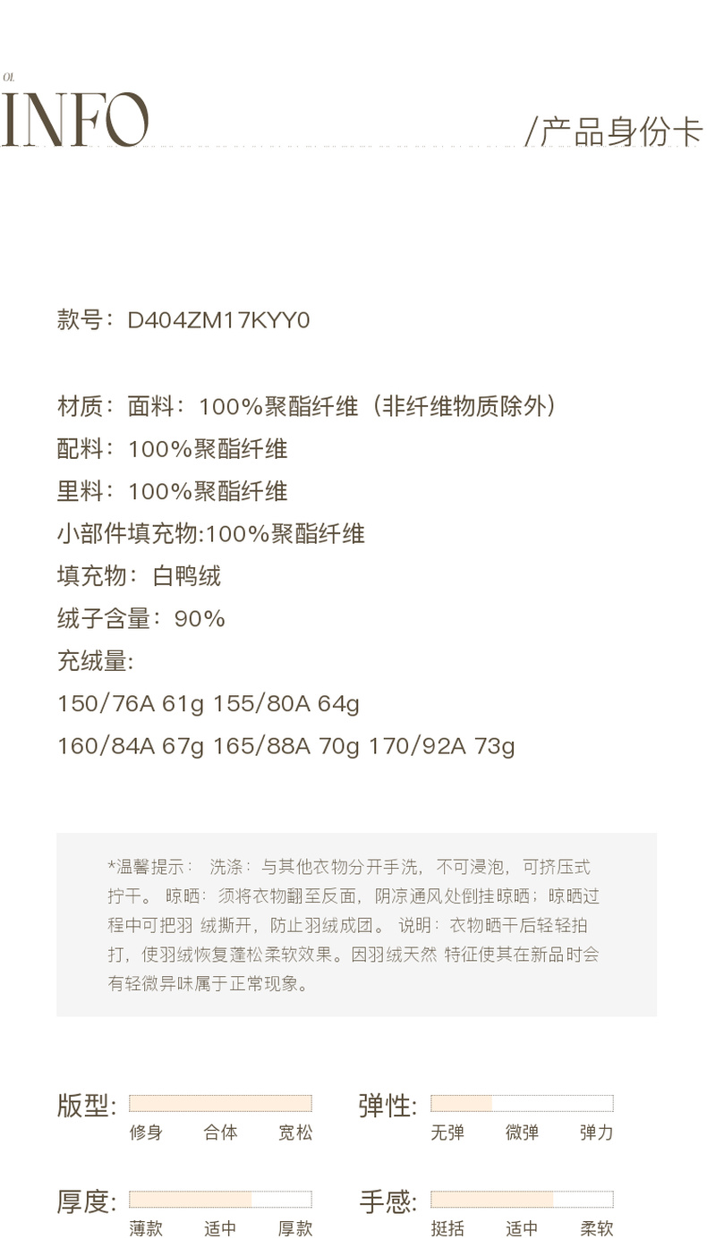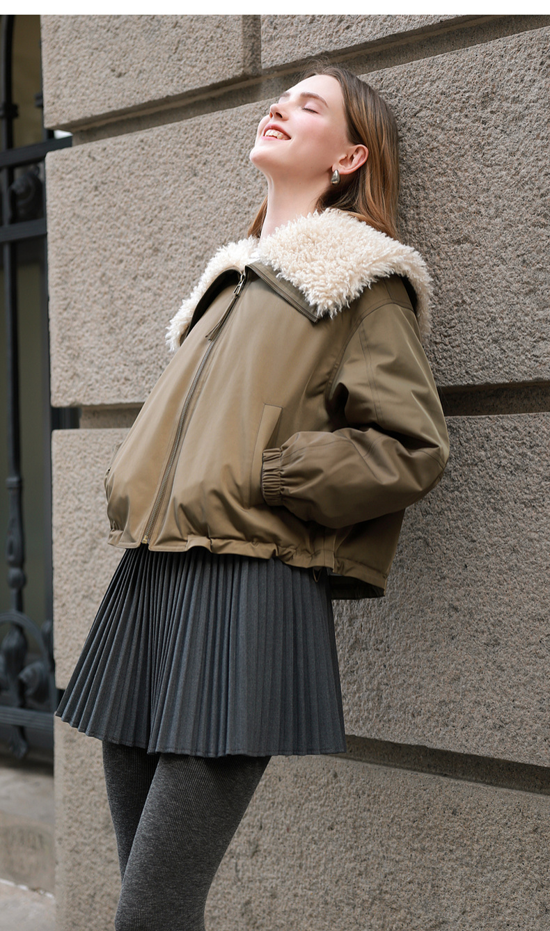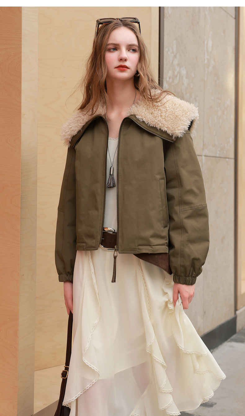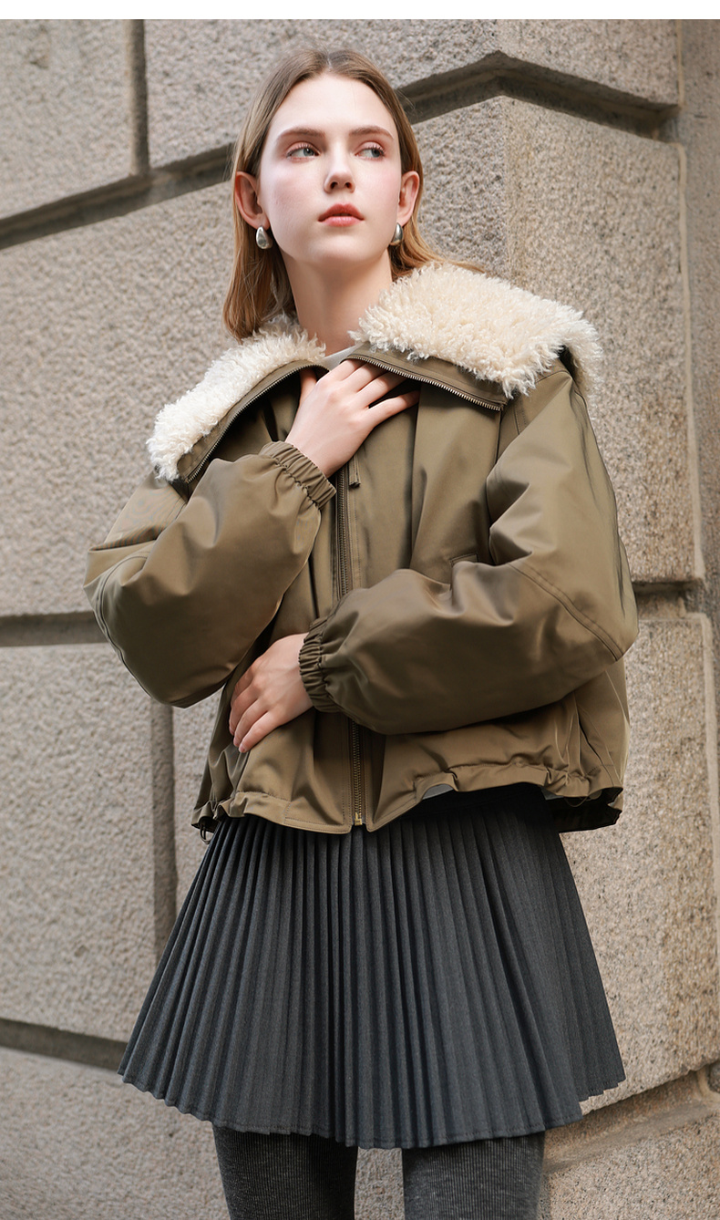 三彩2025冬季新款派克羽绒服毛绒翻领90白鸭绒外套短款M