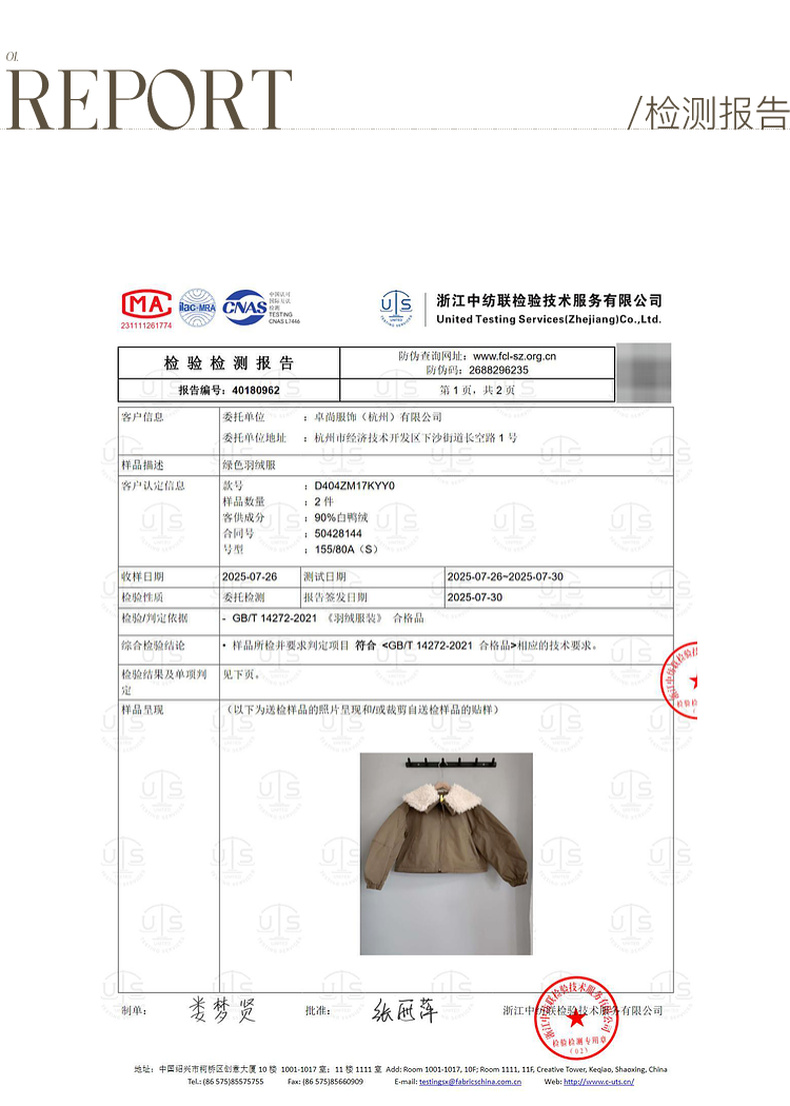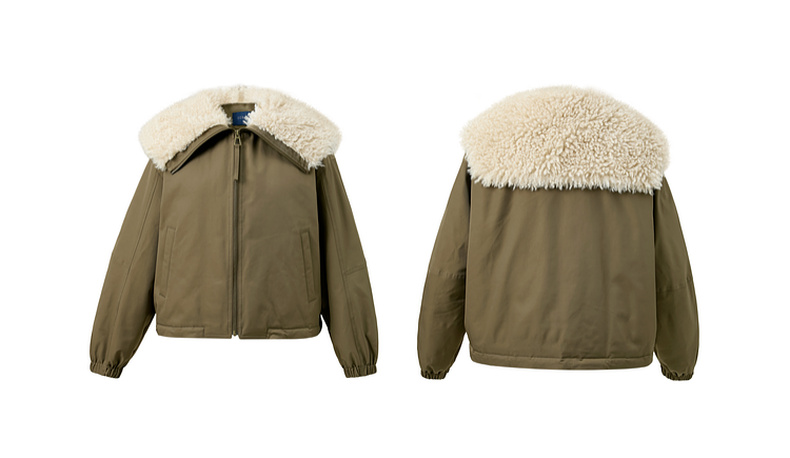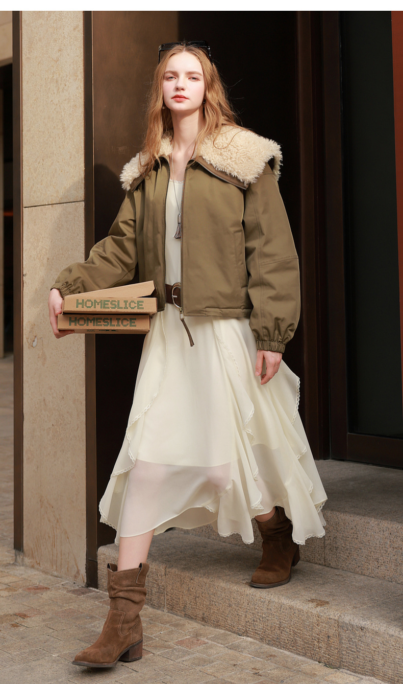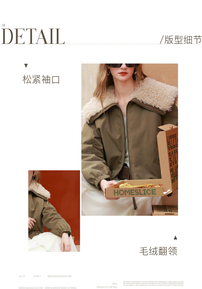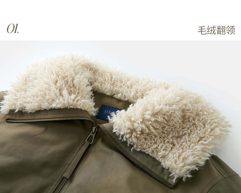 三彩2025冬季新款派克羽绒服毛绒翻领90白鸭绒外套短款M