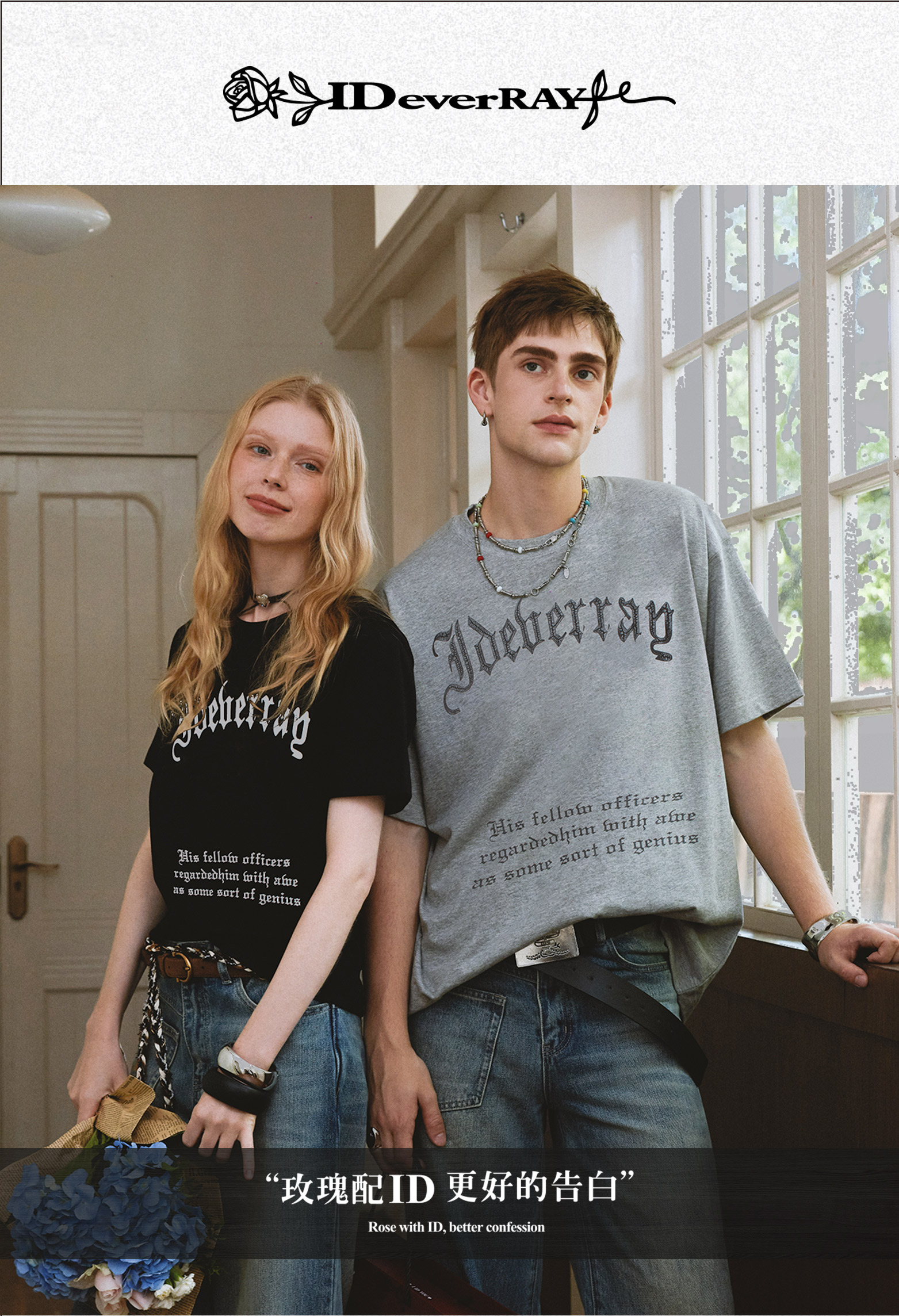 IDEVERRAY夏季美式休闲字母情侣装短袖T恤男装上衣21MSL-TM621