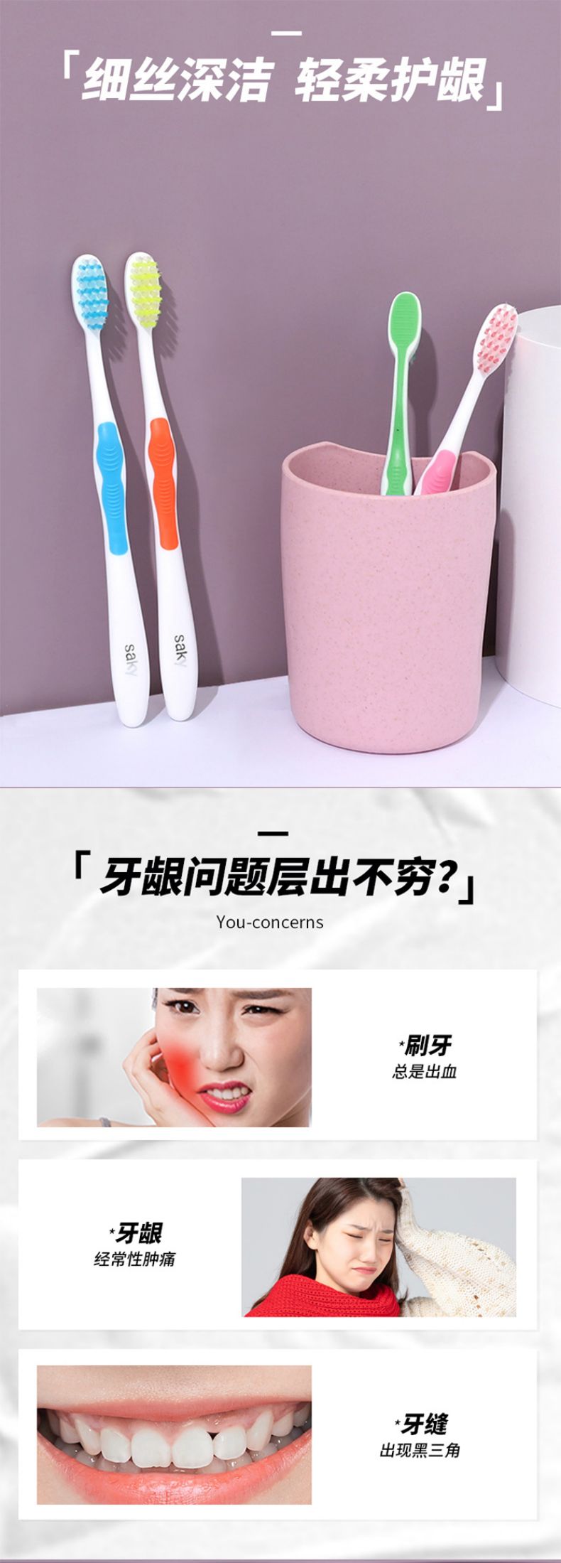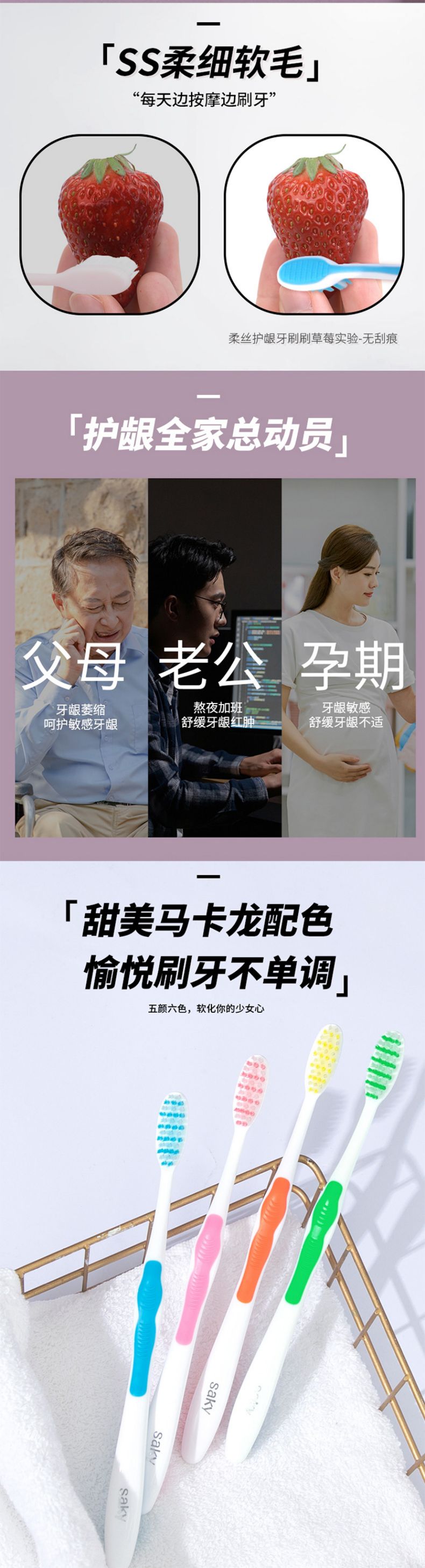 舒客弹力护龈牙刷 3支装