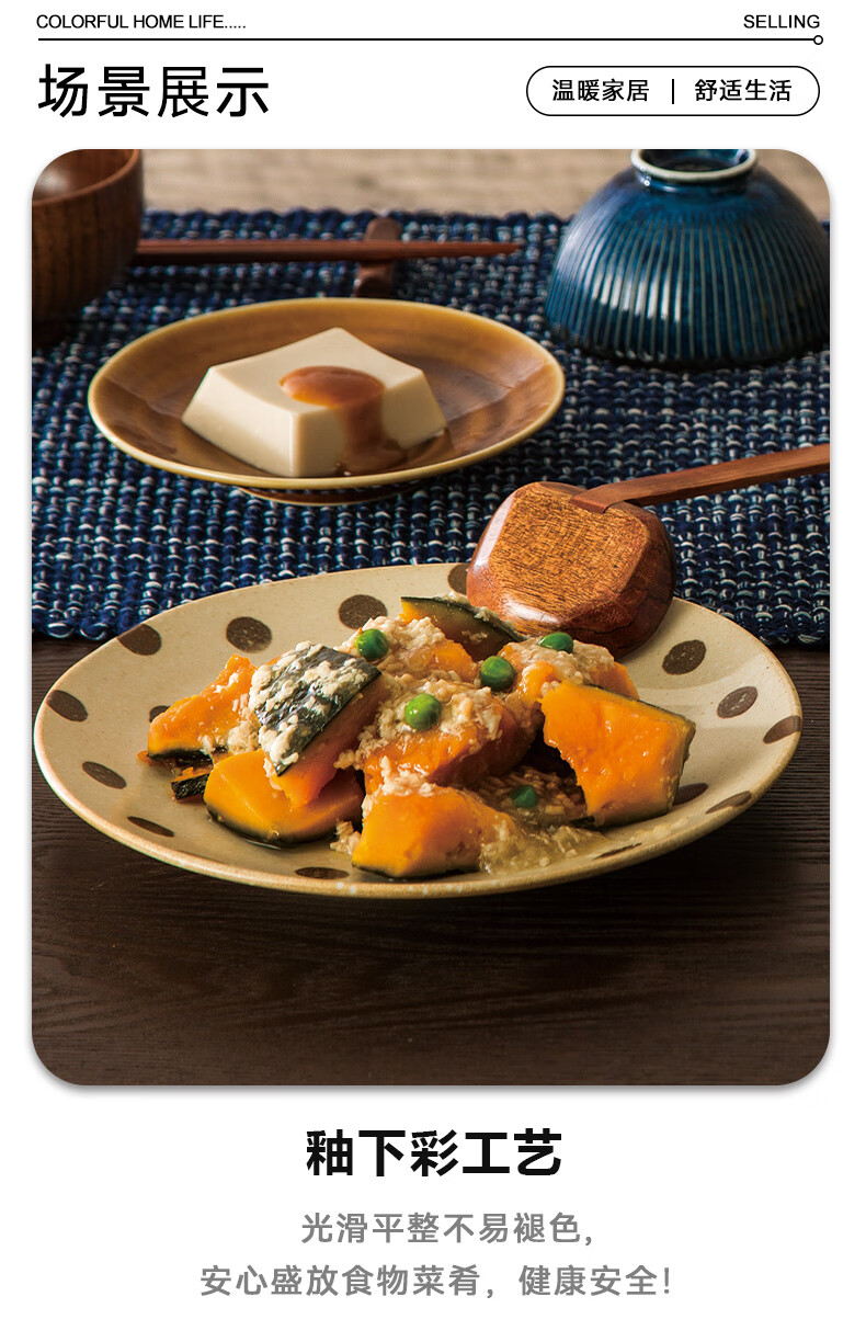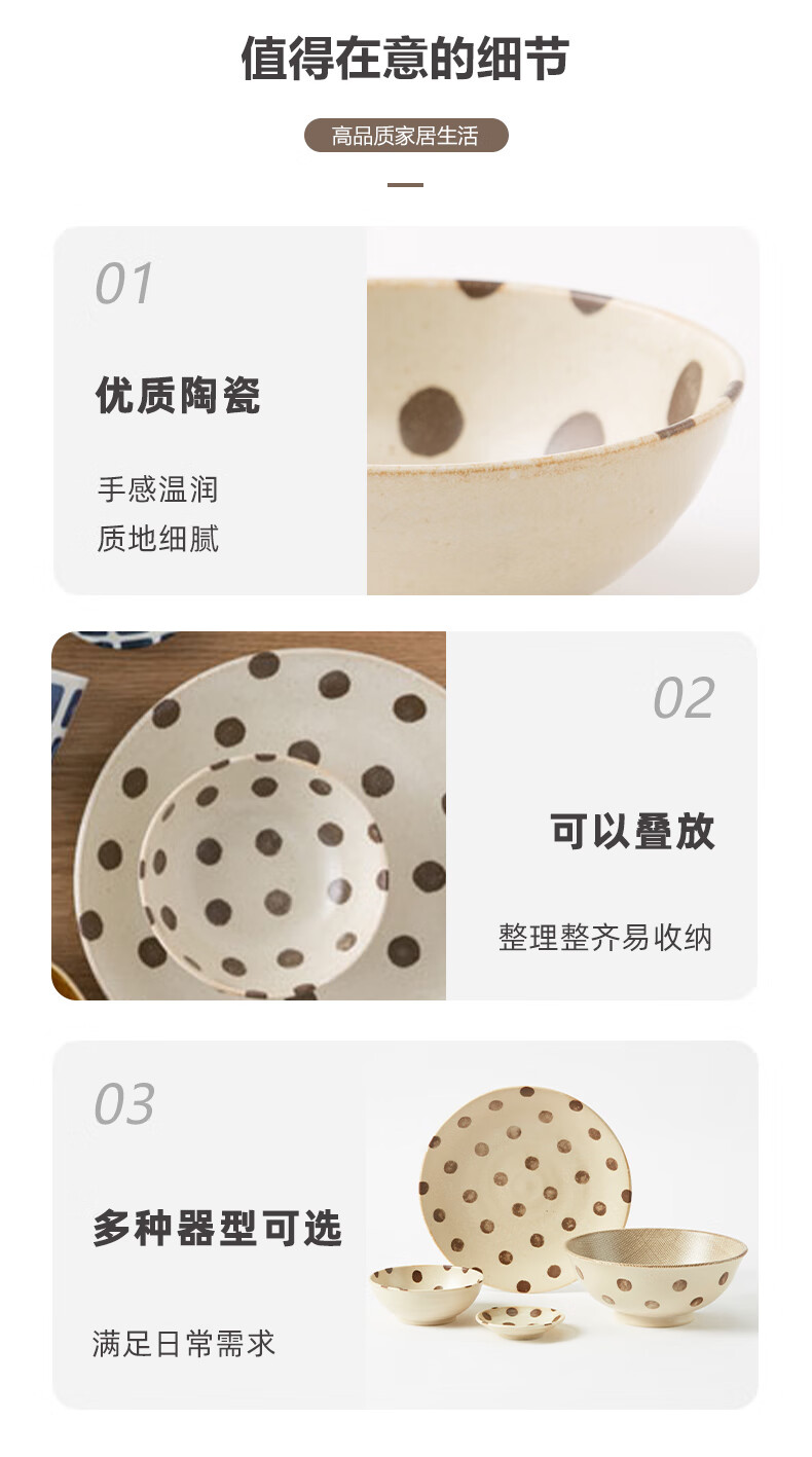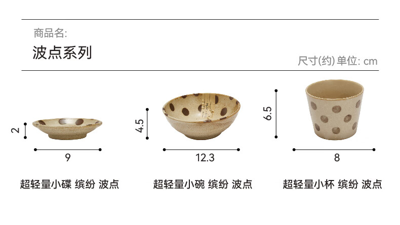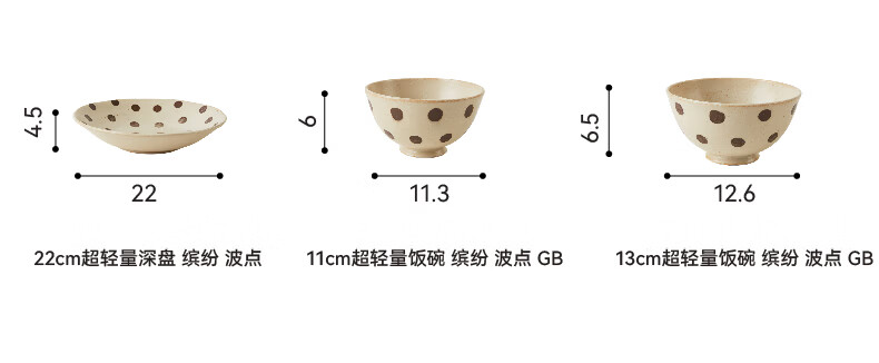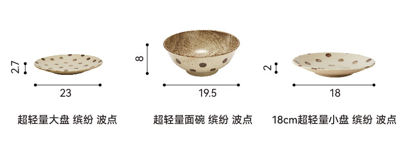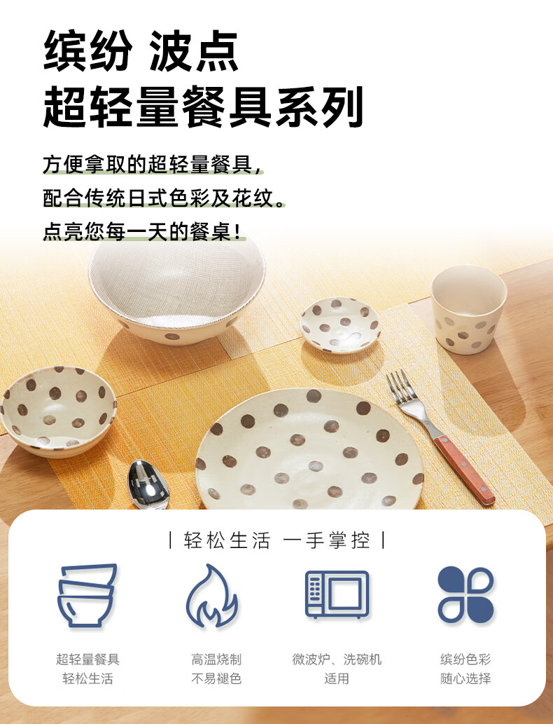 餐厅日式大面碗大盘小碟杯子超轻量餐具 缤纷 波点