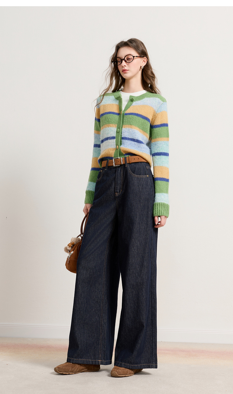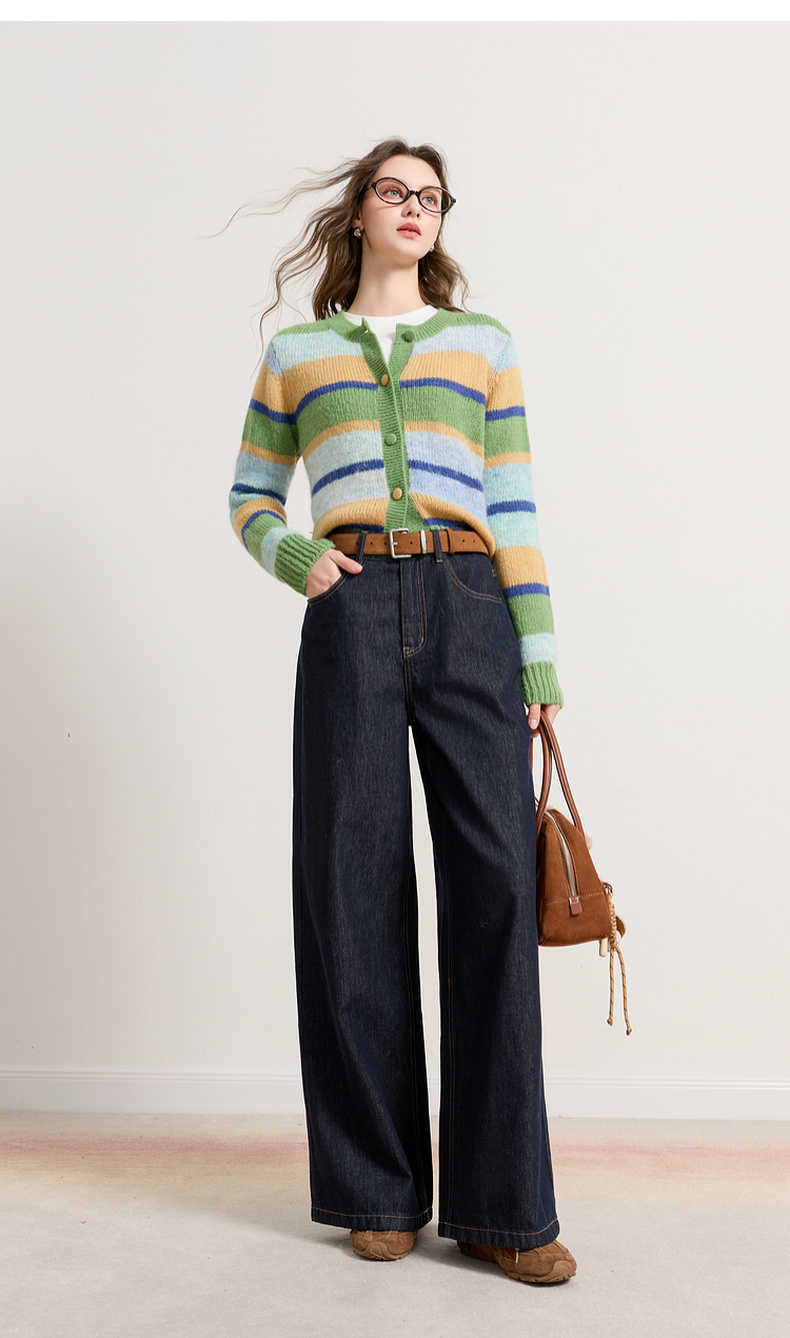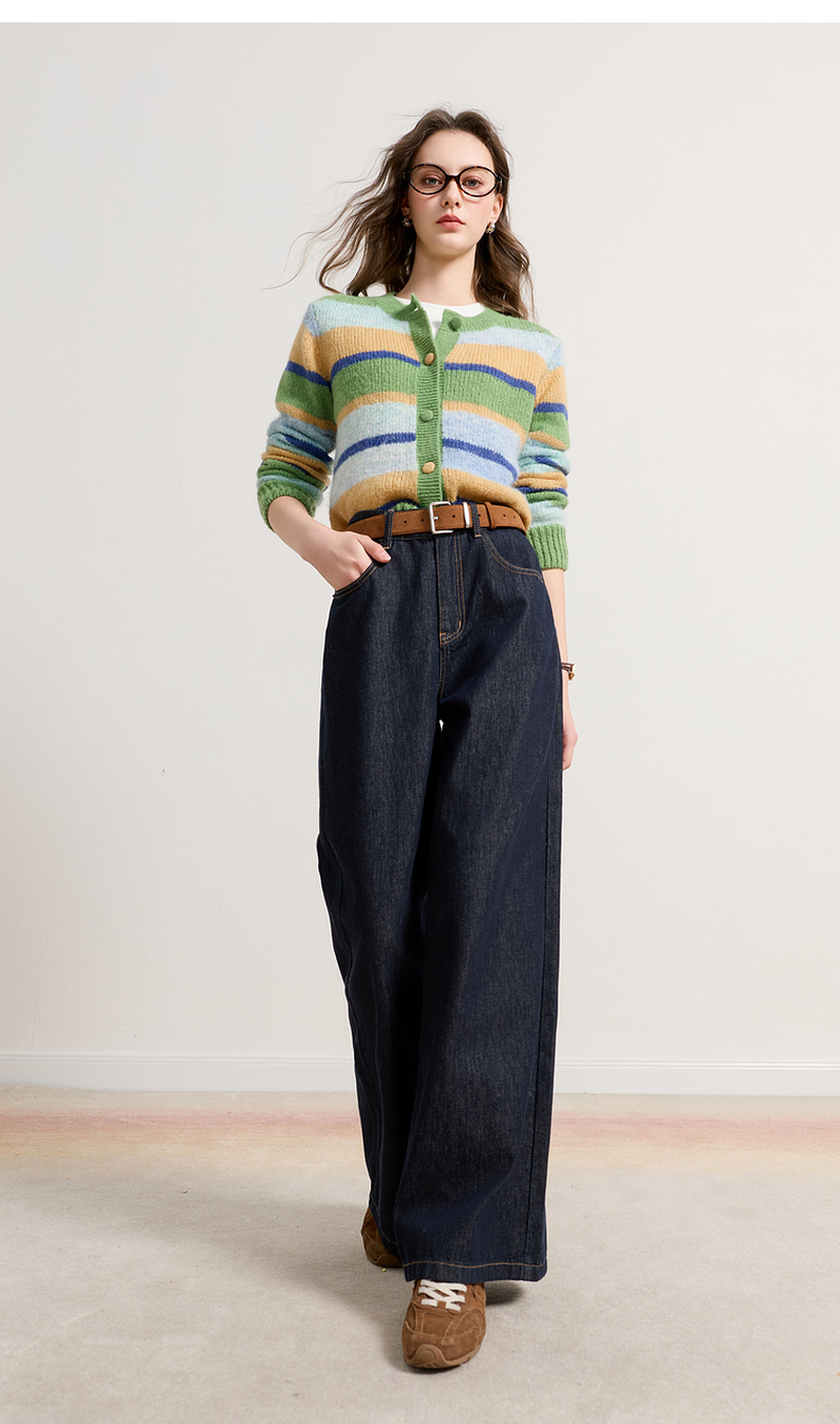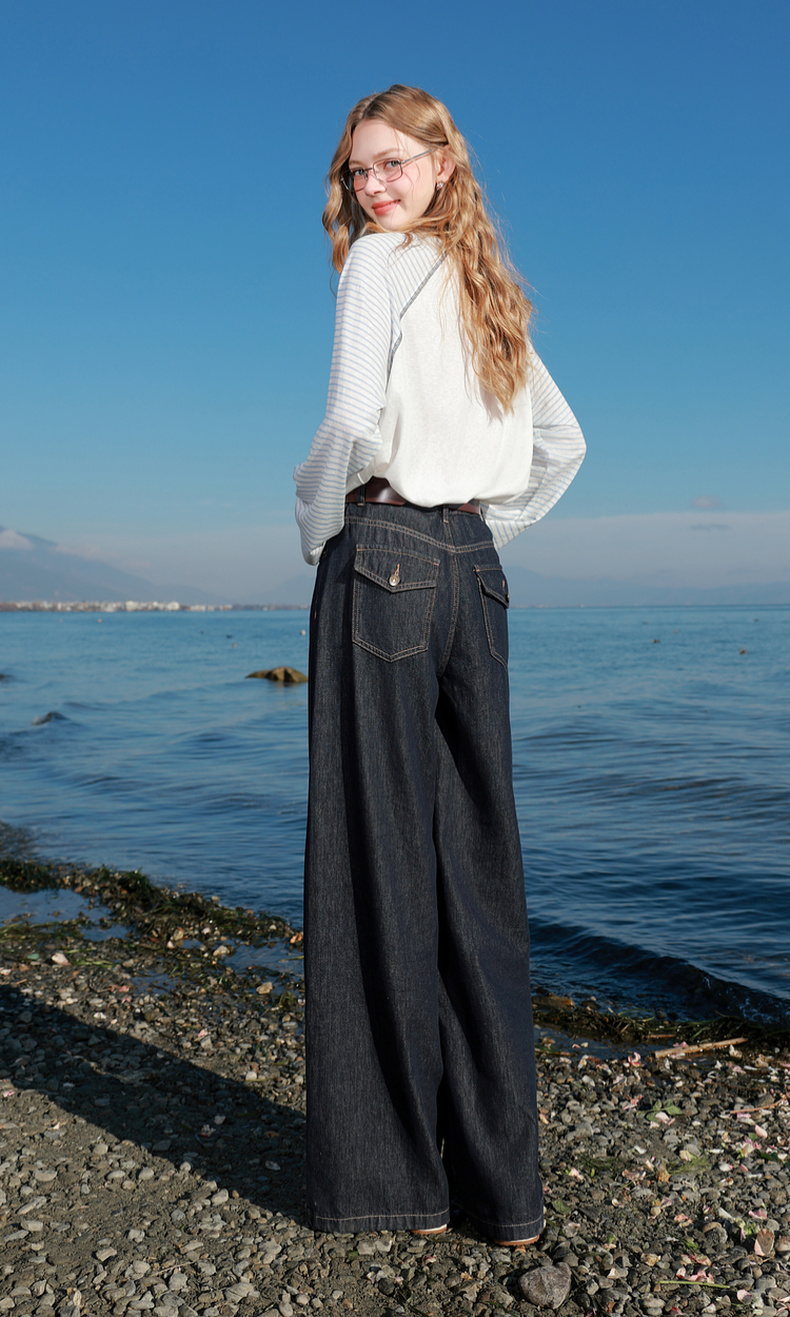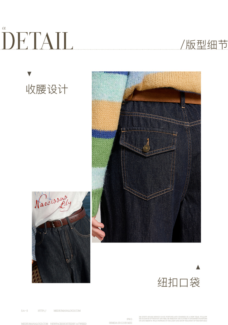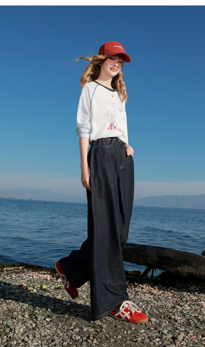 【100棉】三彩2026春季新款纯棉牛仔裤宽松休闲阔腿裤长裤垂感M