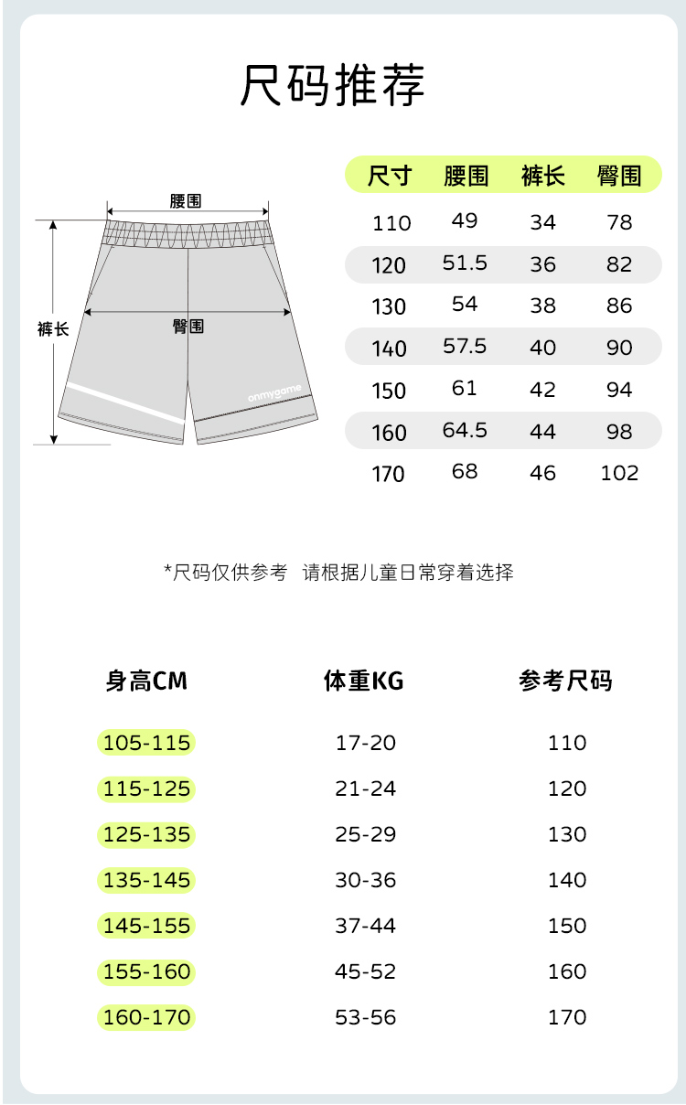 onmygame【超轻爽身裤】男童运动裤短裤