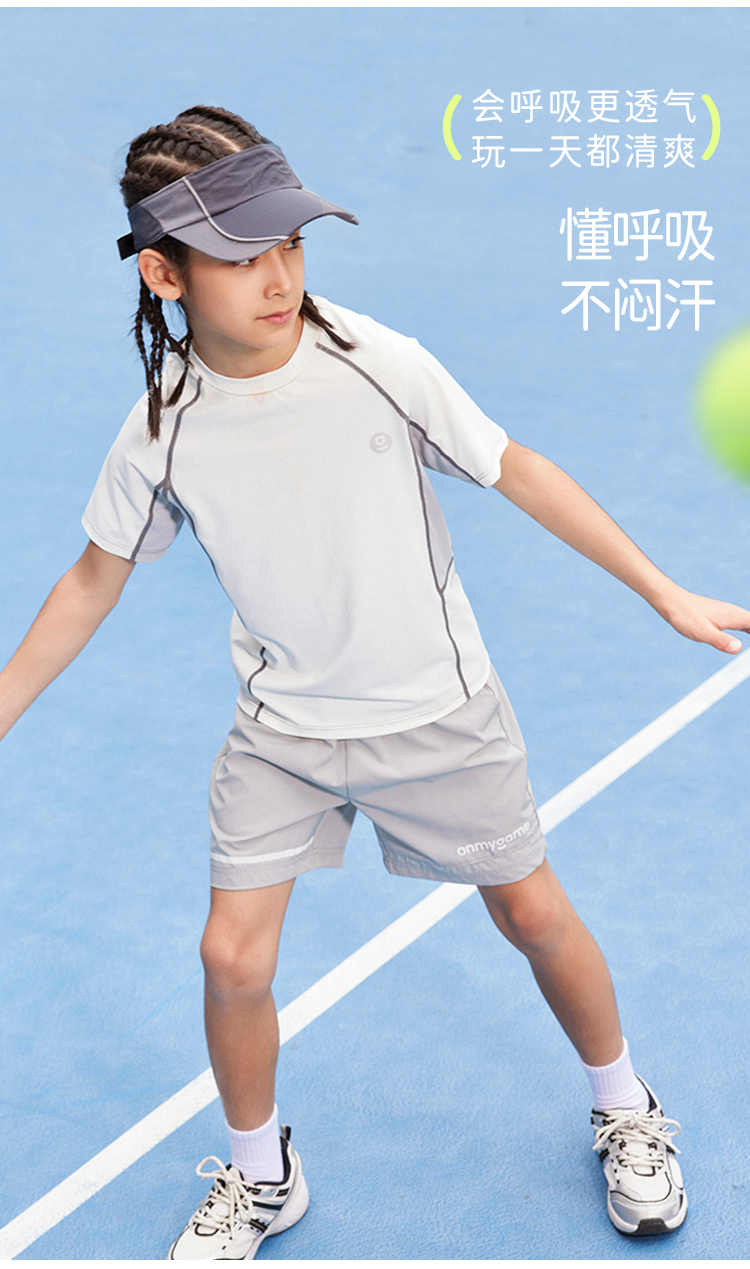 onmygame男童凉感短袖T恤儿童运动衣夏季体能训练运动衣上衣