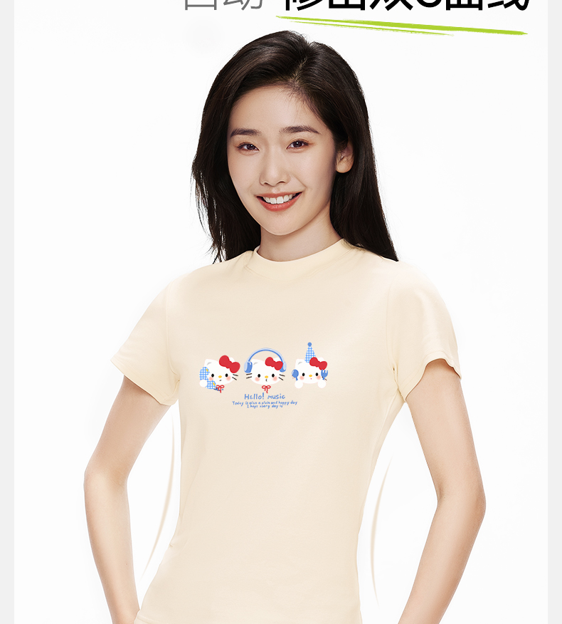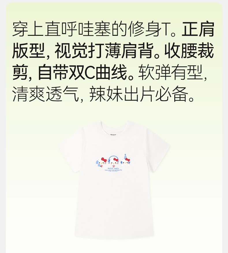 「棉的美学」正肩圆领休闲T恤女甜美蓝格猫印花显瘦百搭小众上衣