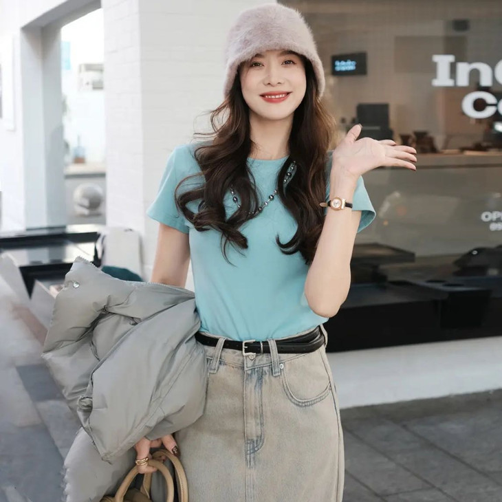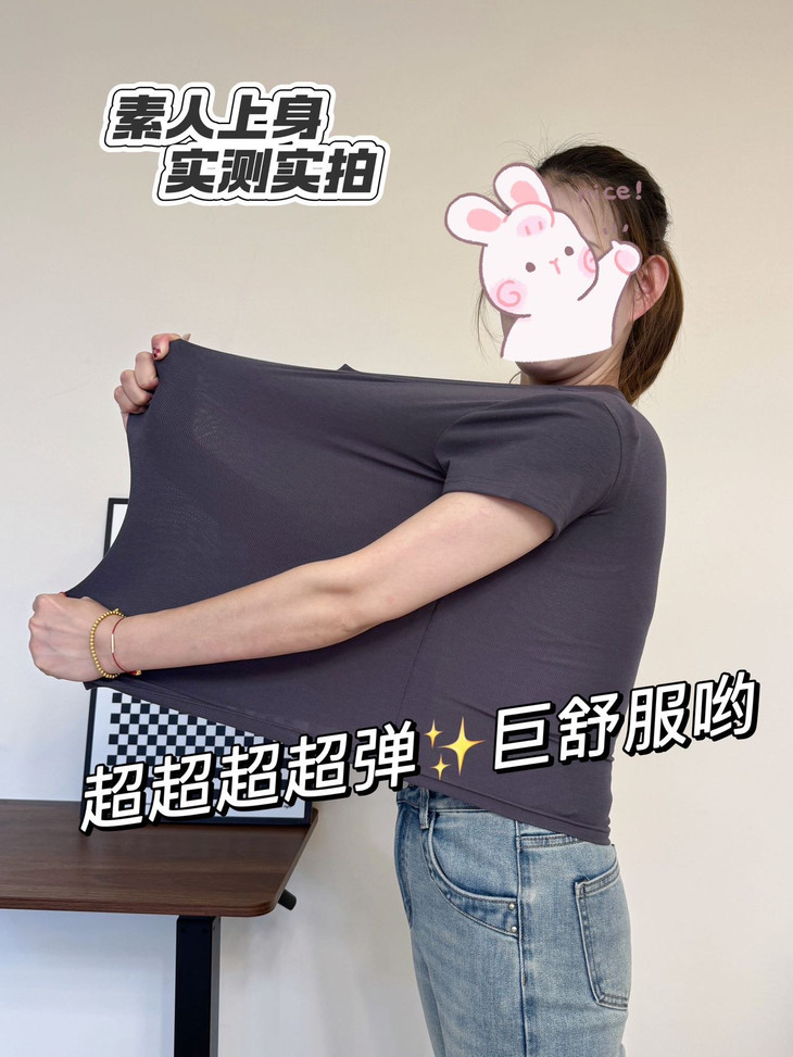 花了重金$的面料 很多显瘦的T恤弹力是做不到这么大的 穿穿洗洗弹力就塌了; 👀我们是别人2倍3倍的弹力👍 穿在身上一点不压身 久洗如新不变形 一秒回弹!