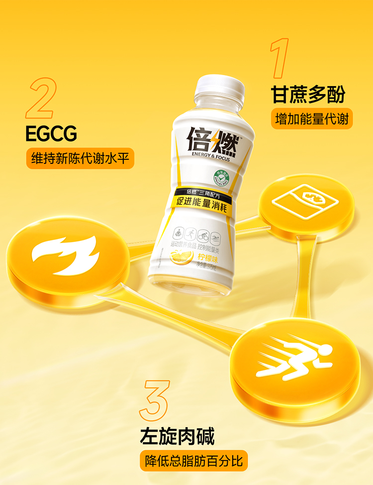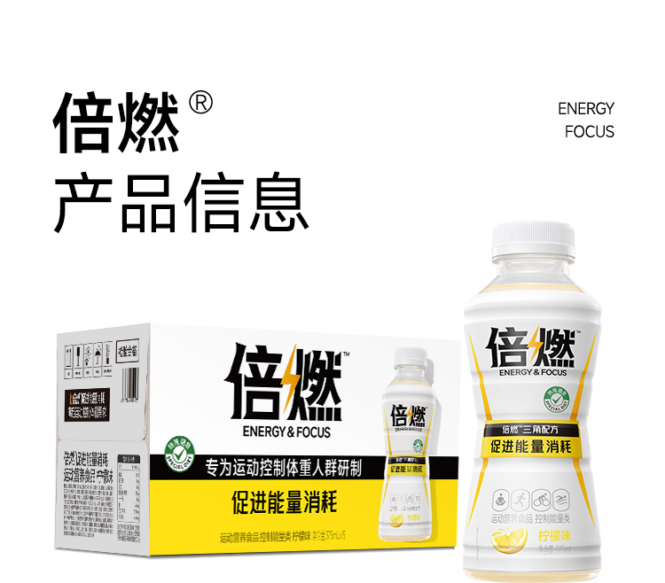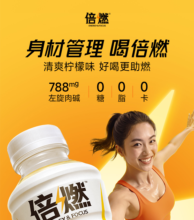 【倍燃】左旋肉碱0糖0脂0卡运动能量饮料375ml*15瓶/箱