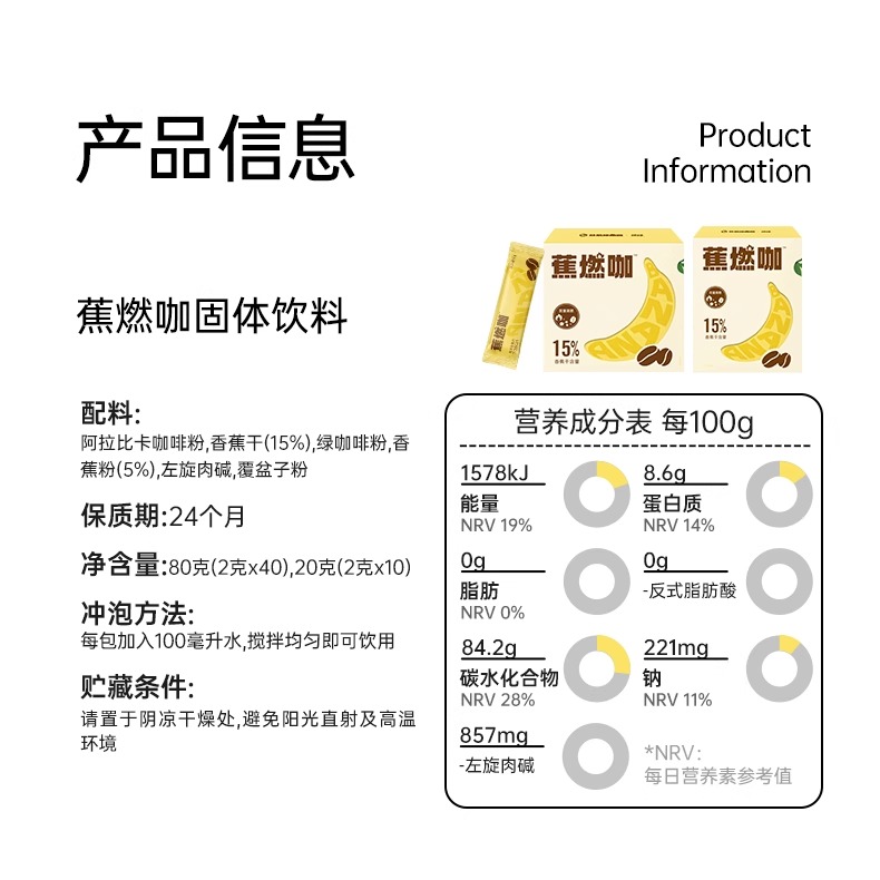 【暴肌独角兽】蕉燃左旋肉碱绿咖啡速溶粉10条/盒
