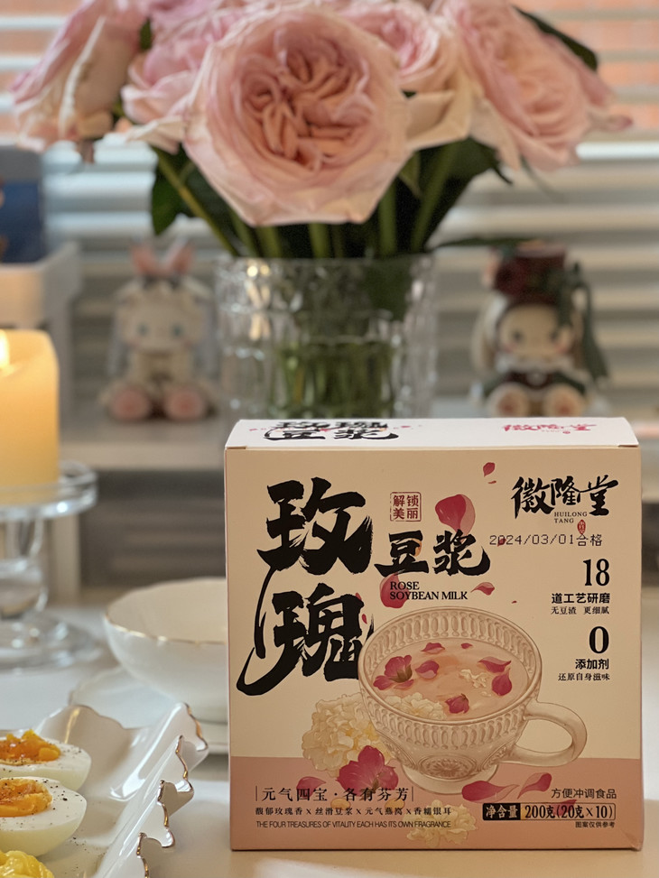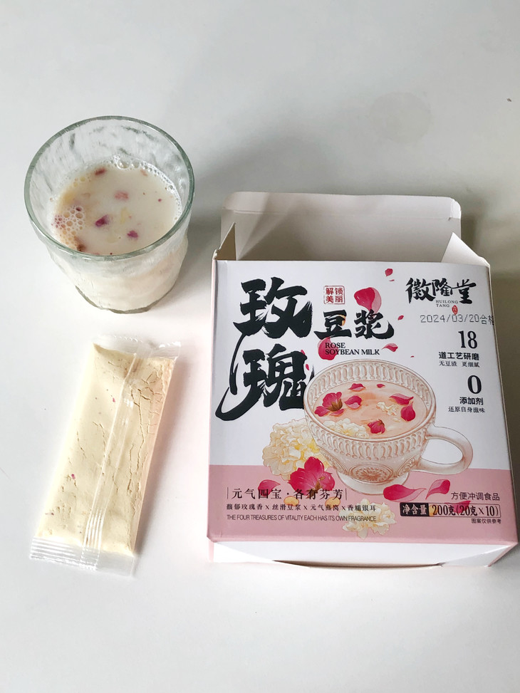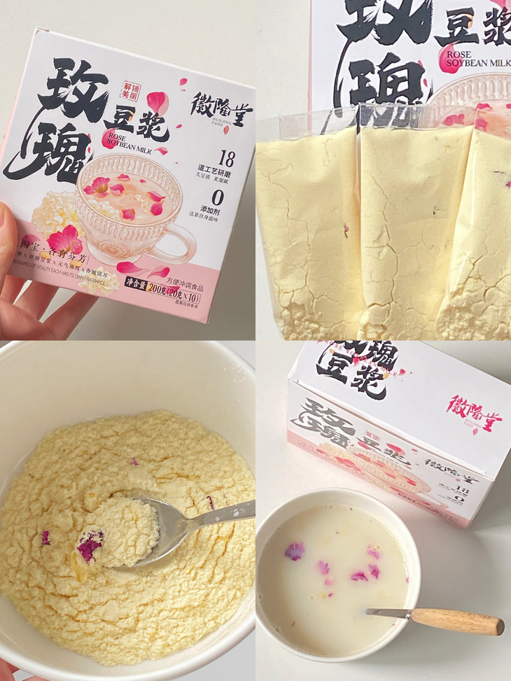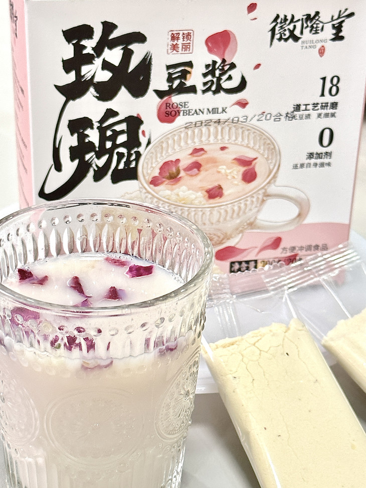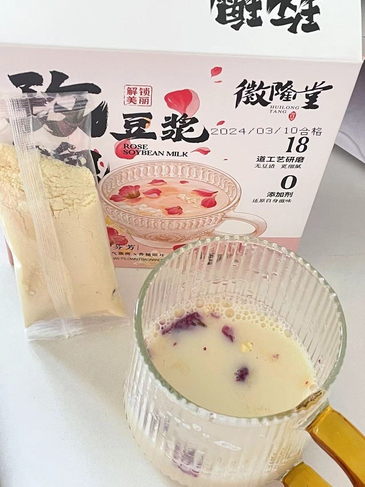 【徽隆堂玫瑰豆浆】当玫瑰花香遇上浓郁豆香👏喝一口满嘴都是玫瑰香😋上班早八来不及吃早餐快试试它!!限时+0.1💰多送1盒10条❗ 🌷一口惊艳到我了!