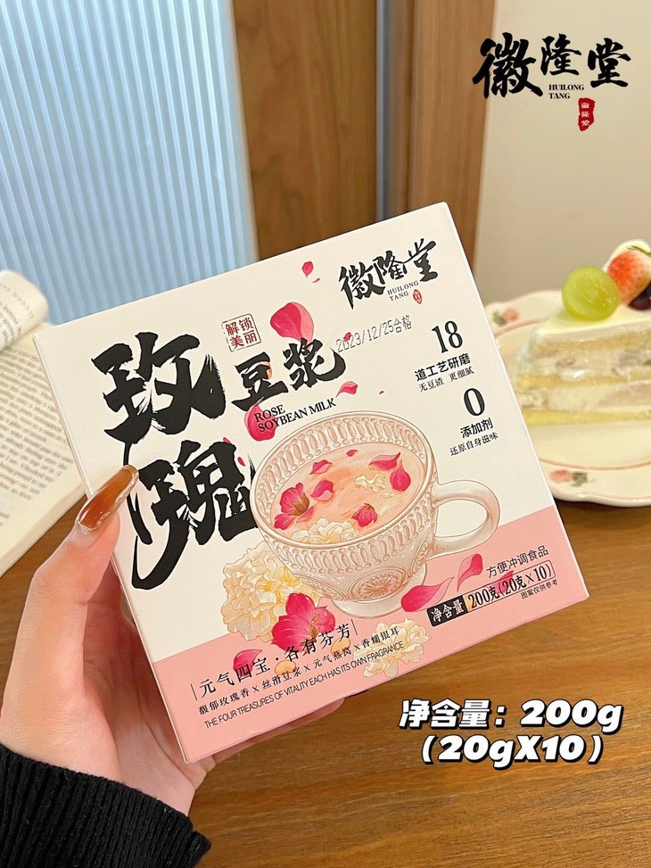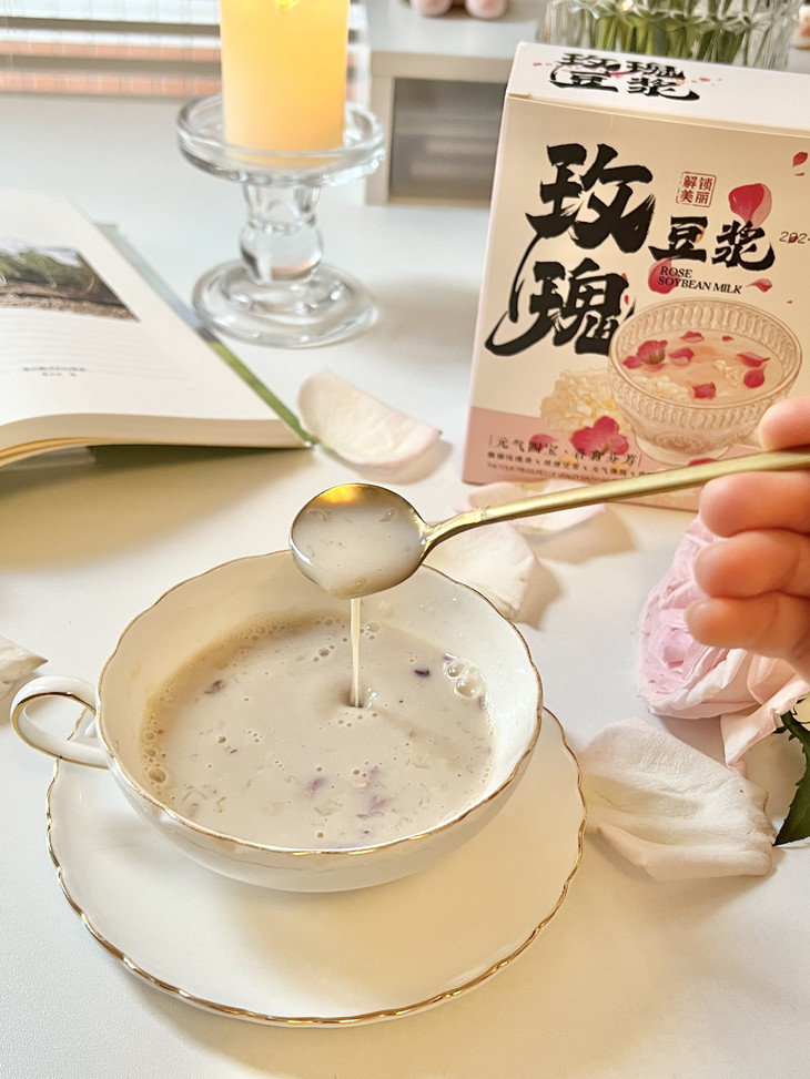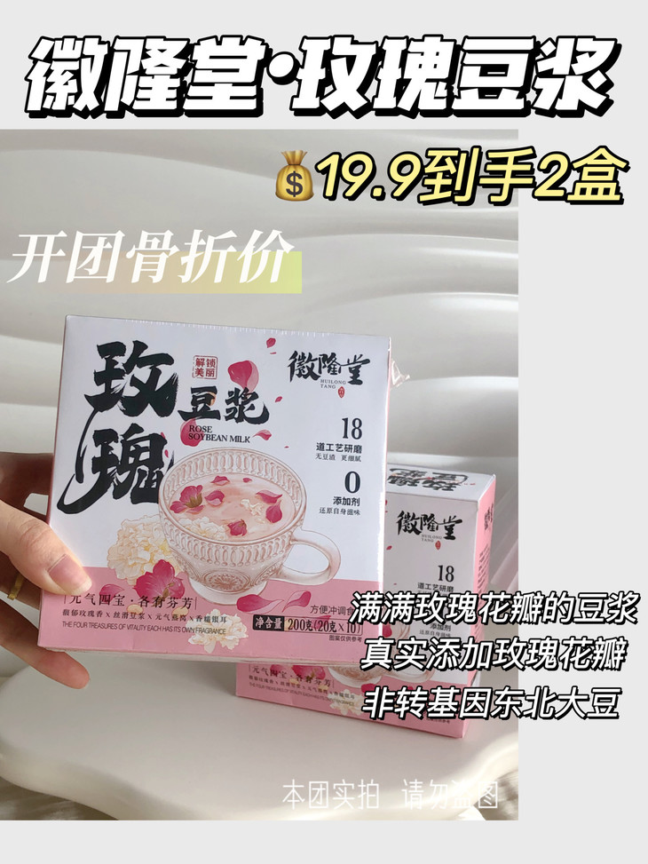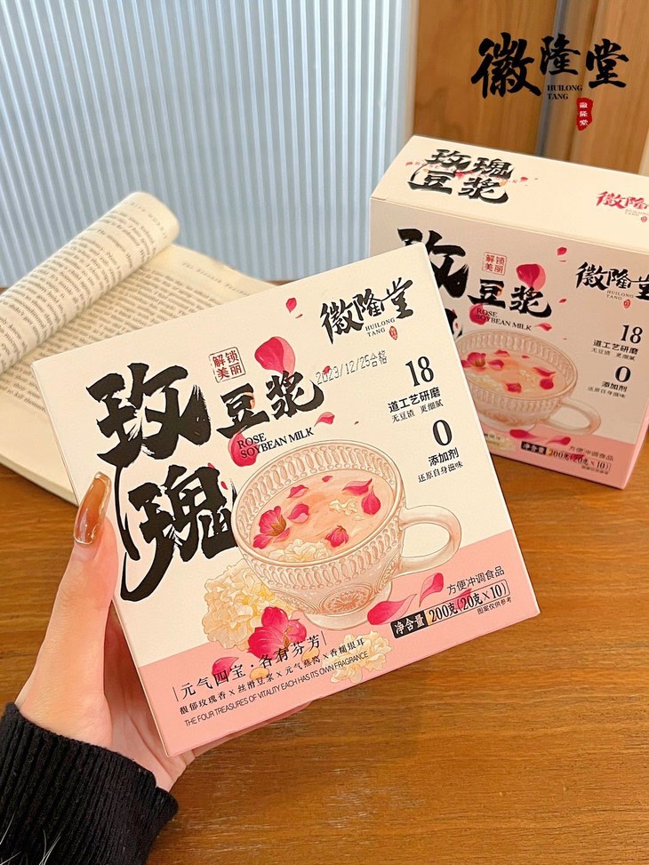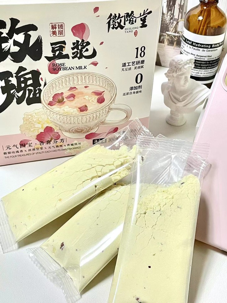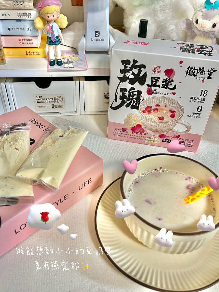 【徽隆堂玫瑰豆浆】当玫瑰花香遇上浓郁豆香👏喝一口满嘴都是玫瑰香😋上班早八来不及吃早餐快试试它!!限时+0.1💰多送1盒10条❗ 🌷一口惊艳到我了!