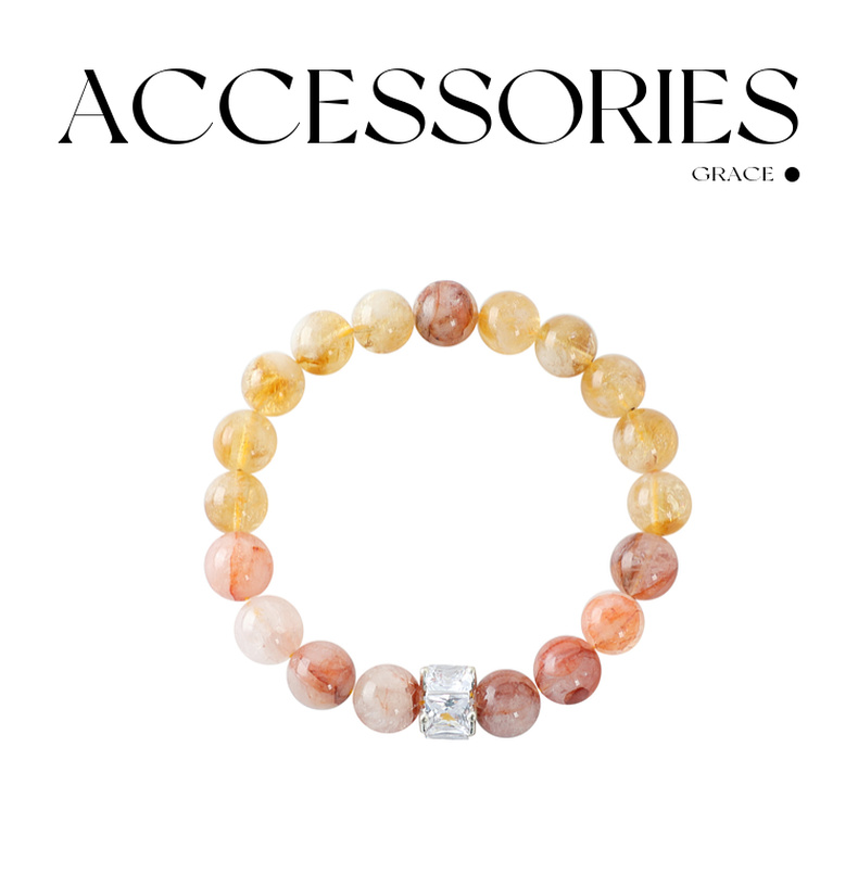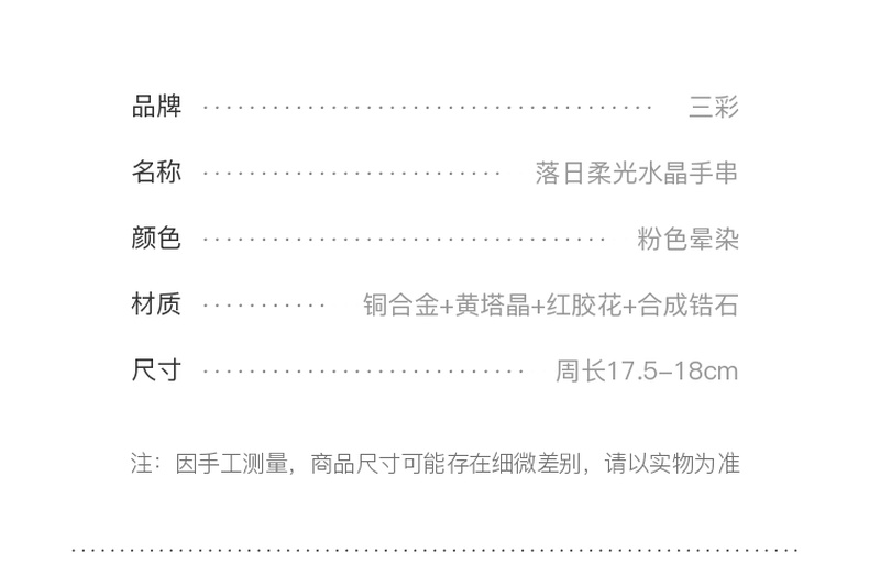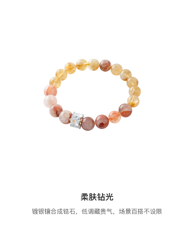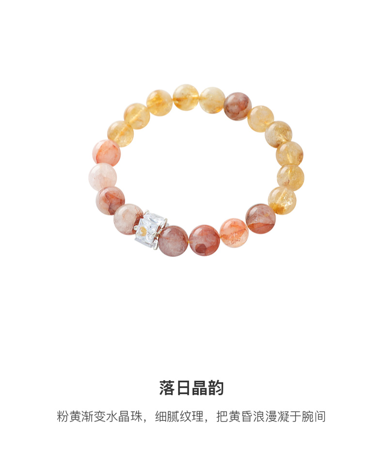三彩2025新款【落日柔光】黄粉水晶手串手链轻奢锆石通勤约会送礼