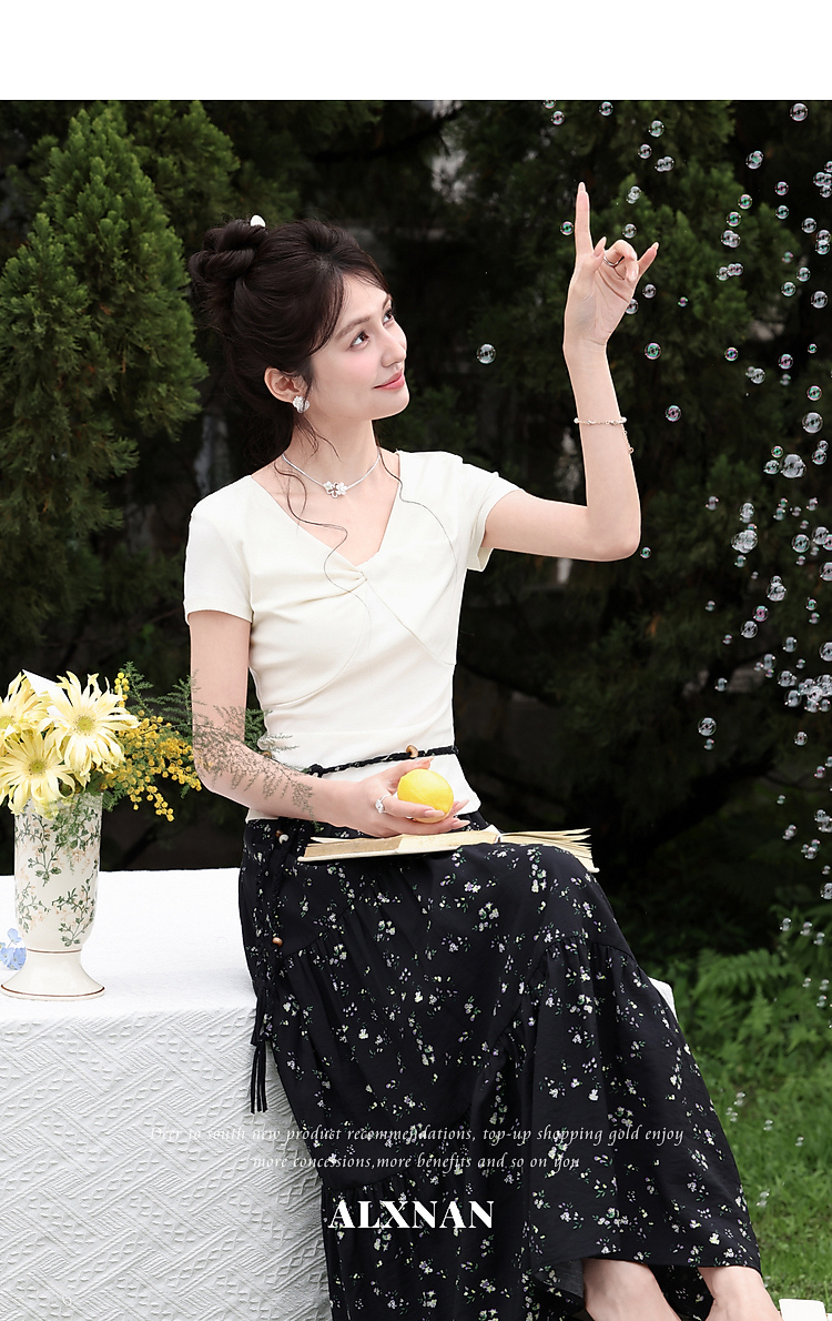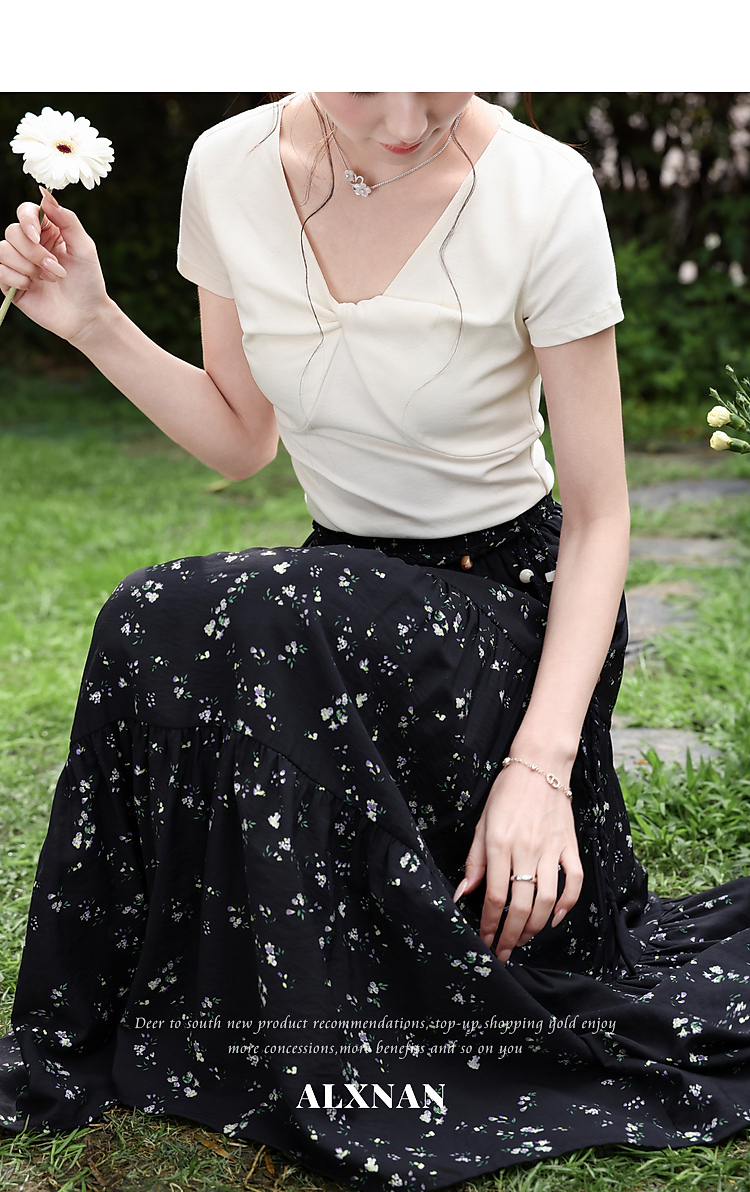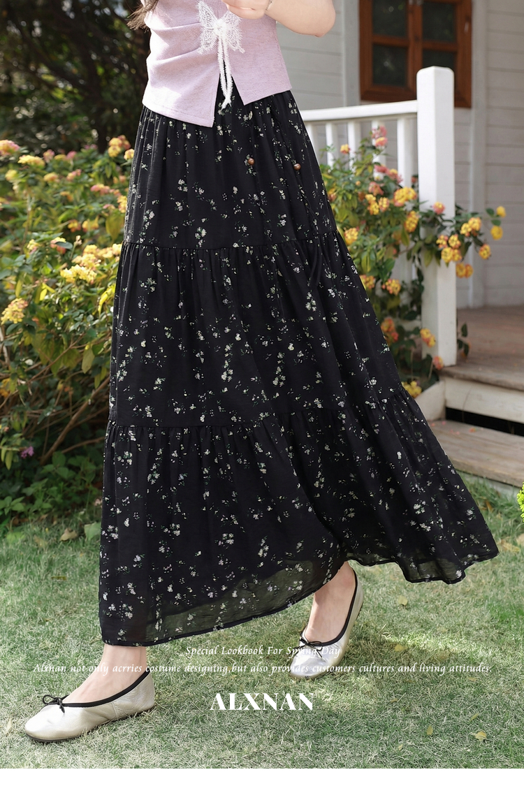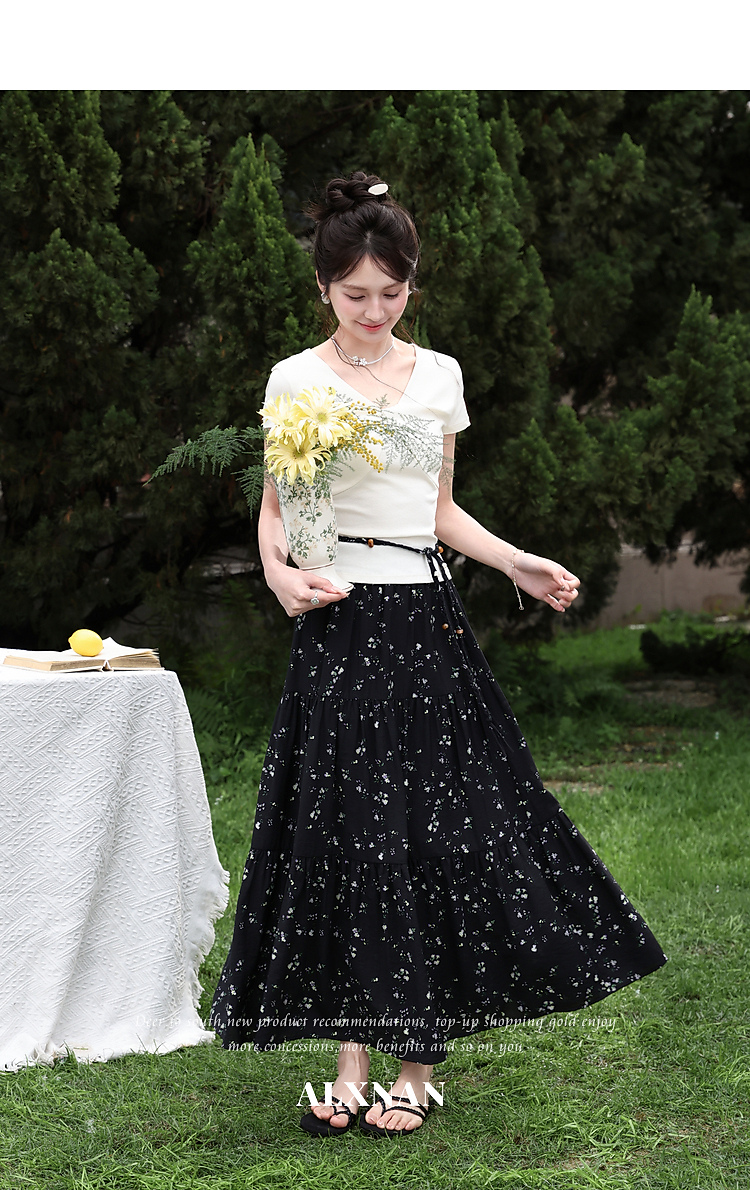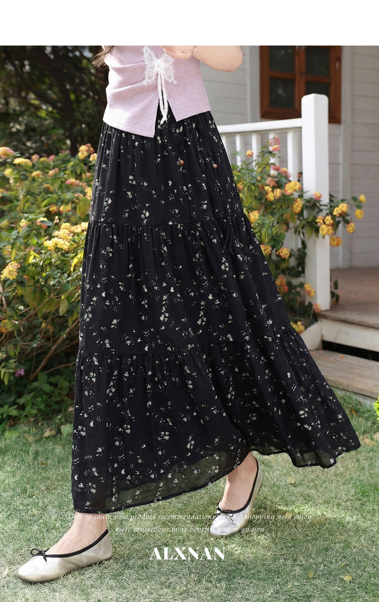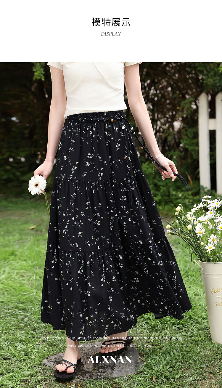 鹿向南【0328/20:00新品前一小时7折】黑色碎花半身裙