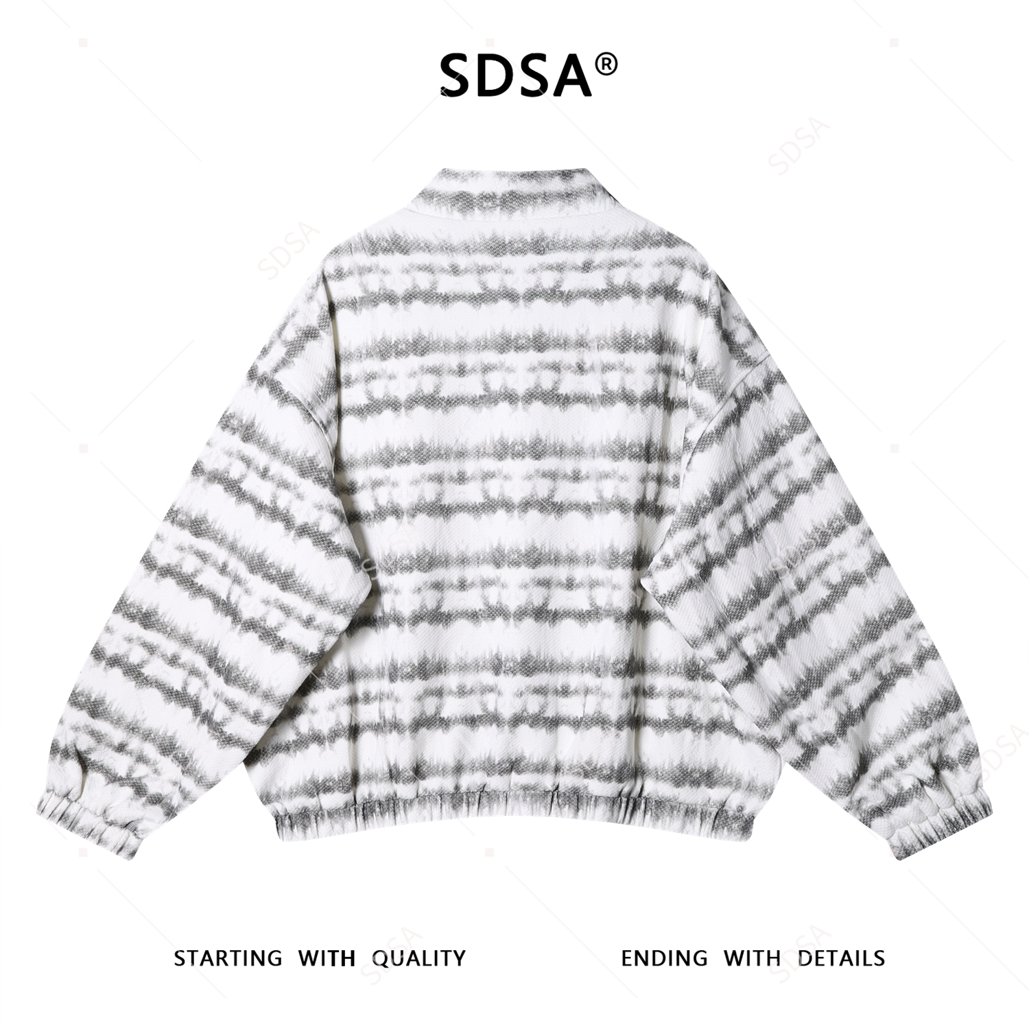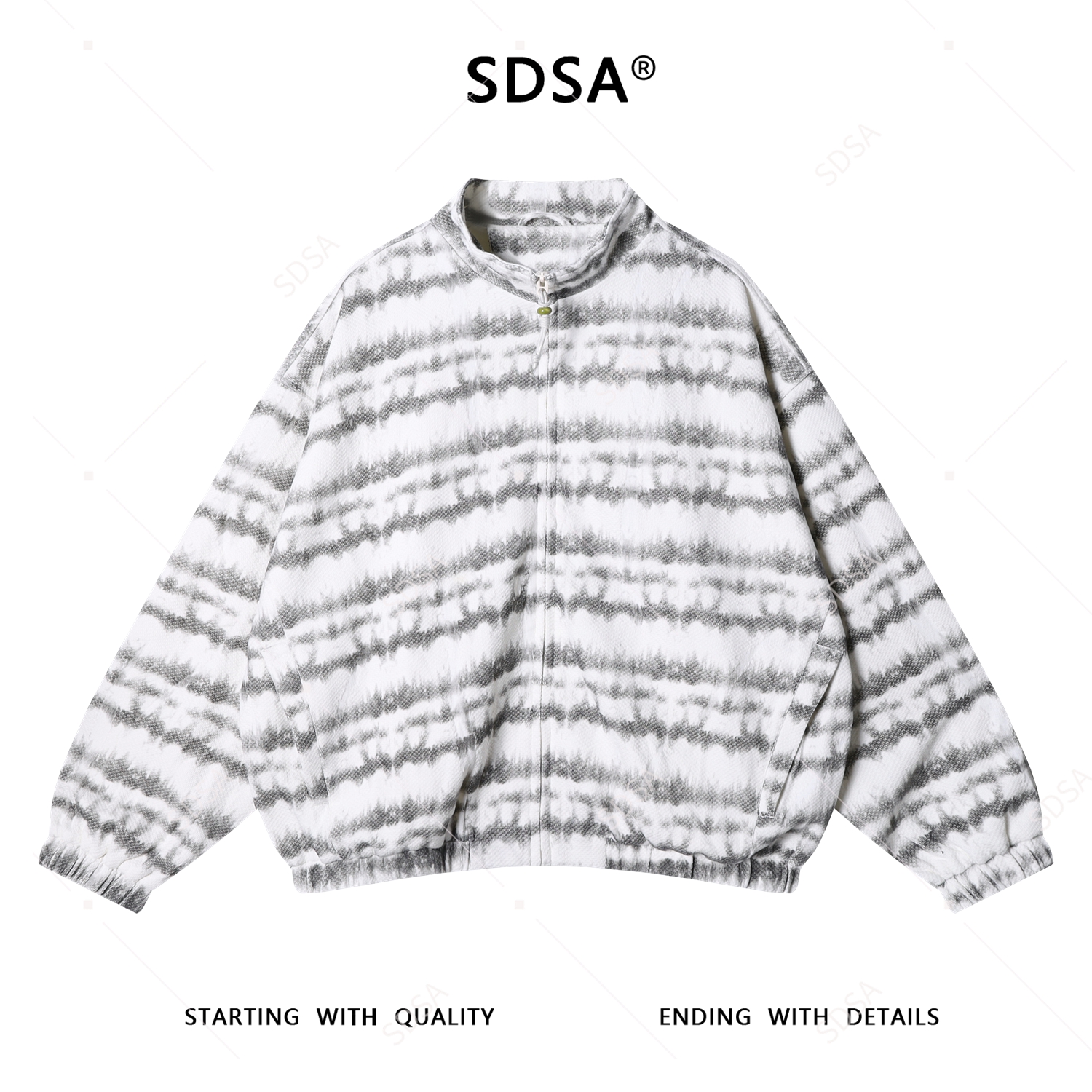 T6C37715SDSA男士秋冬新款痞帅男装宽松撞色肌理条纹拉链立领夹克百搭外套