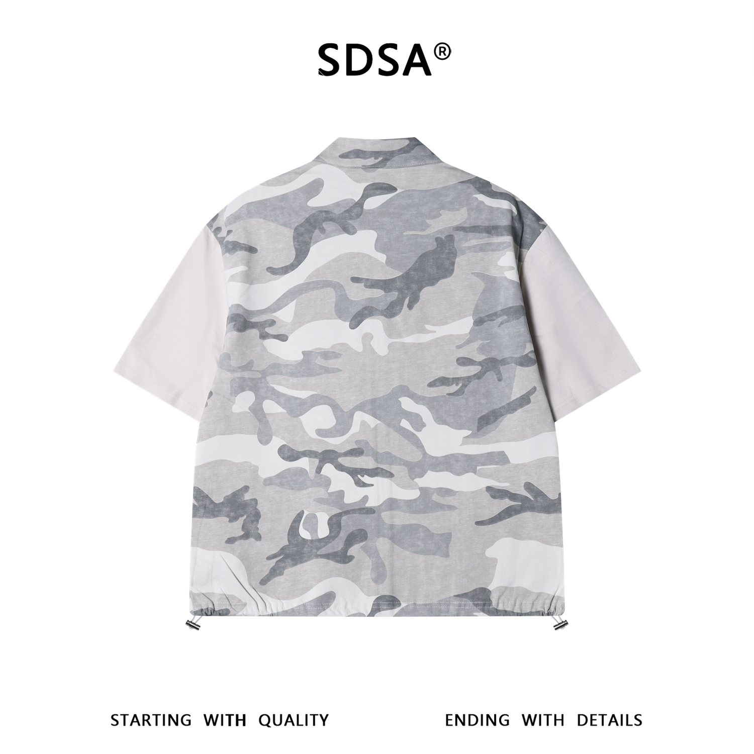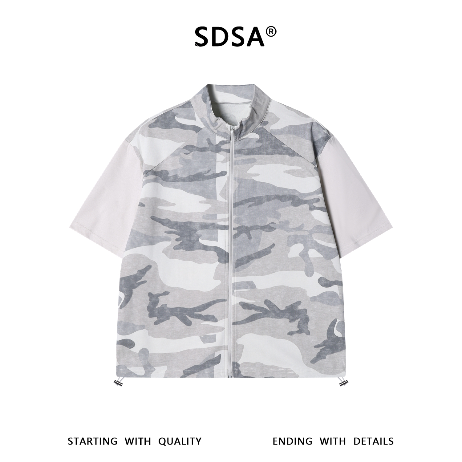 26015SDSA男装2026新款高贵轻奢美式拼接迷彩拉链立领短袖T恤百搭时尚