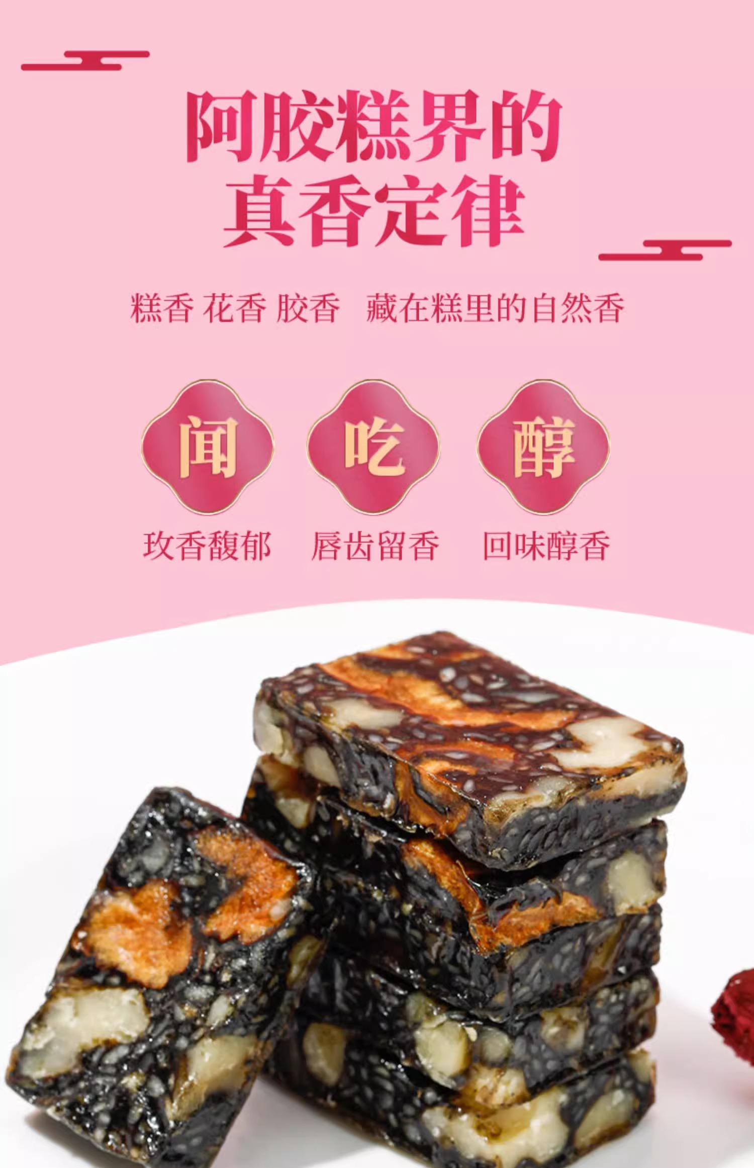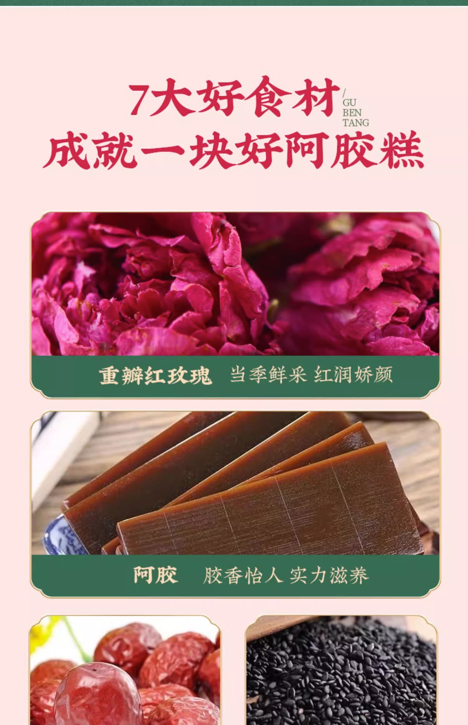 【固本堂】玫瑰阿胶糕200g 即食阿胶糕女滋补品平阴玫瑰血送父母妈妈营养品送礼长辈实用礼物