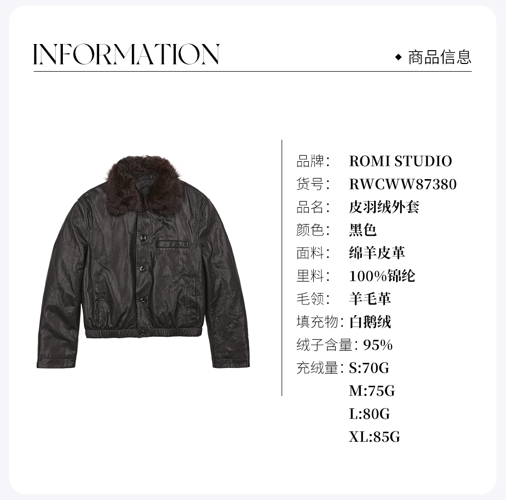 ROMI STUDIO西班牙进口绵羊皮植鞣蜡感皮衣鹅绒服 RWCWW87380