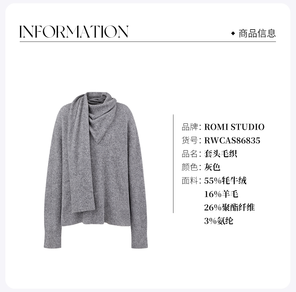 ROMI STUDIO“”康宝莱牦牛绒””飘片领奢柔哑光套头毛织 RWCAS86835
