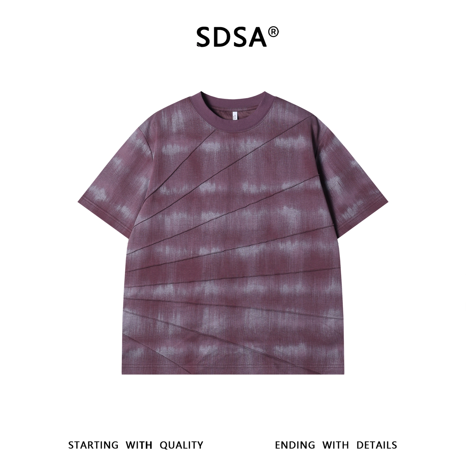 SDSA男装2026新款高贵轻奢美式扎染斜纹分割圆领短袖T恤百搭时尚