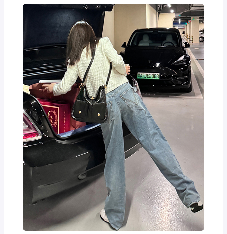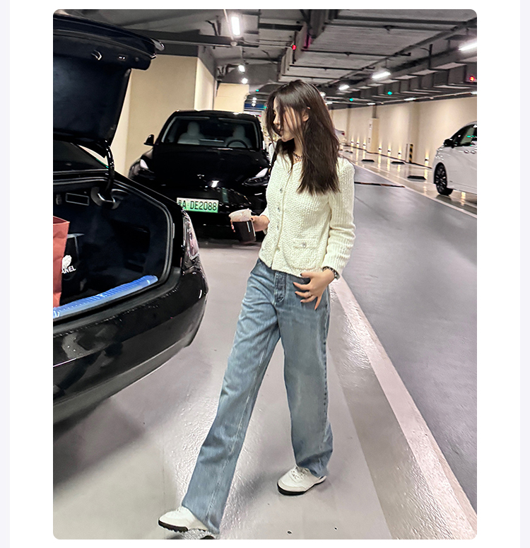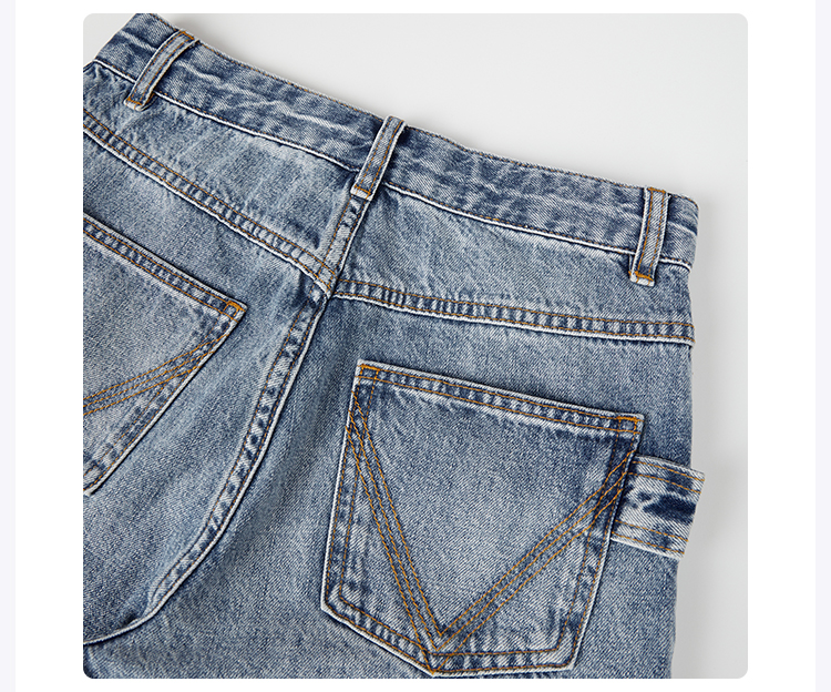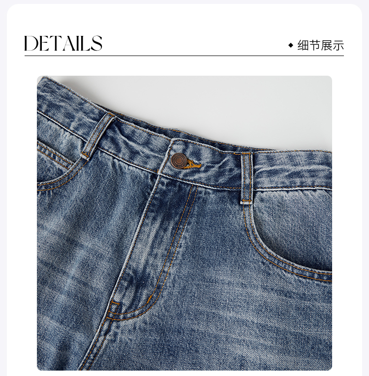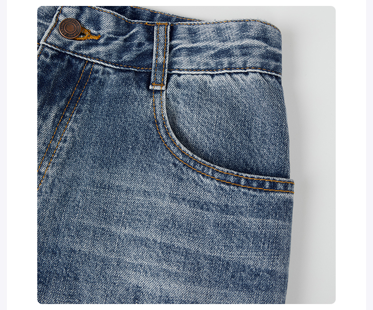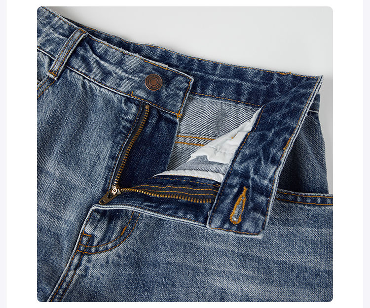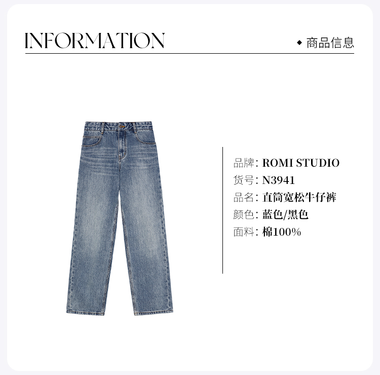 ROMI STUDIO“复古百搭”早秋100%棉休闲高腰直筒耳朵牛仔裤N3941