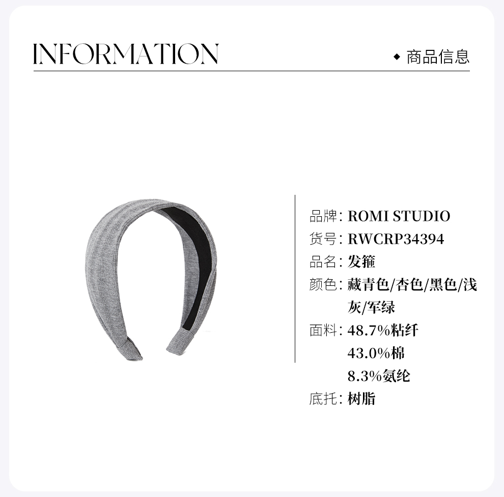 ROMI STUDIO 高颅顶不卡头居家外戴宽边坑条针织发箍 RWCRP34394