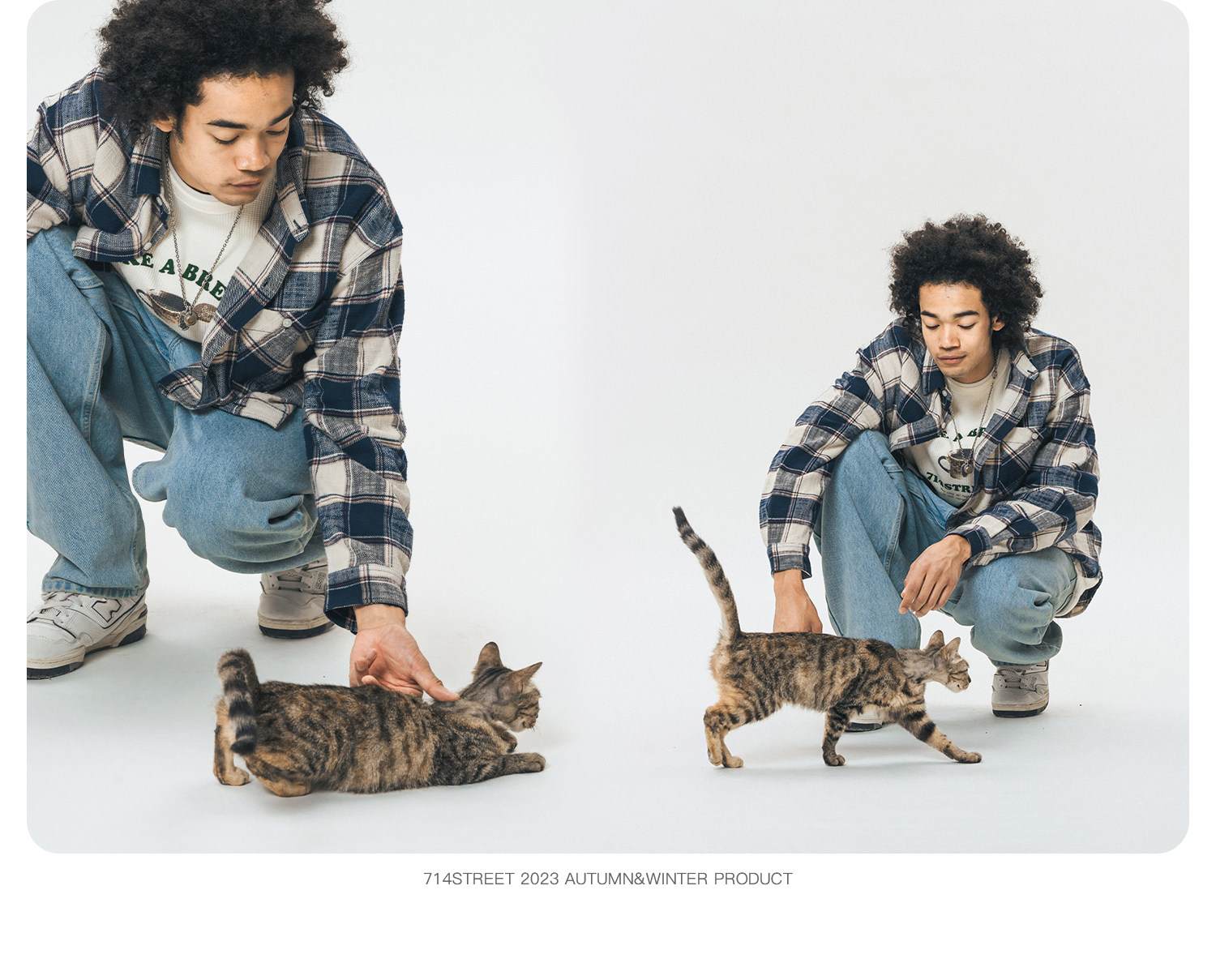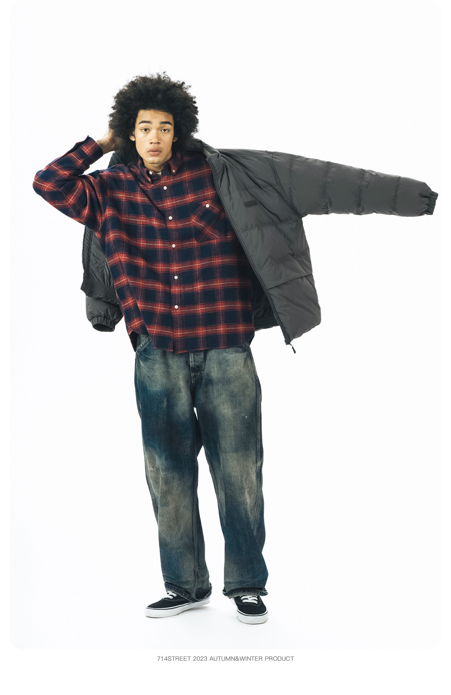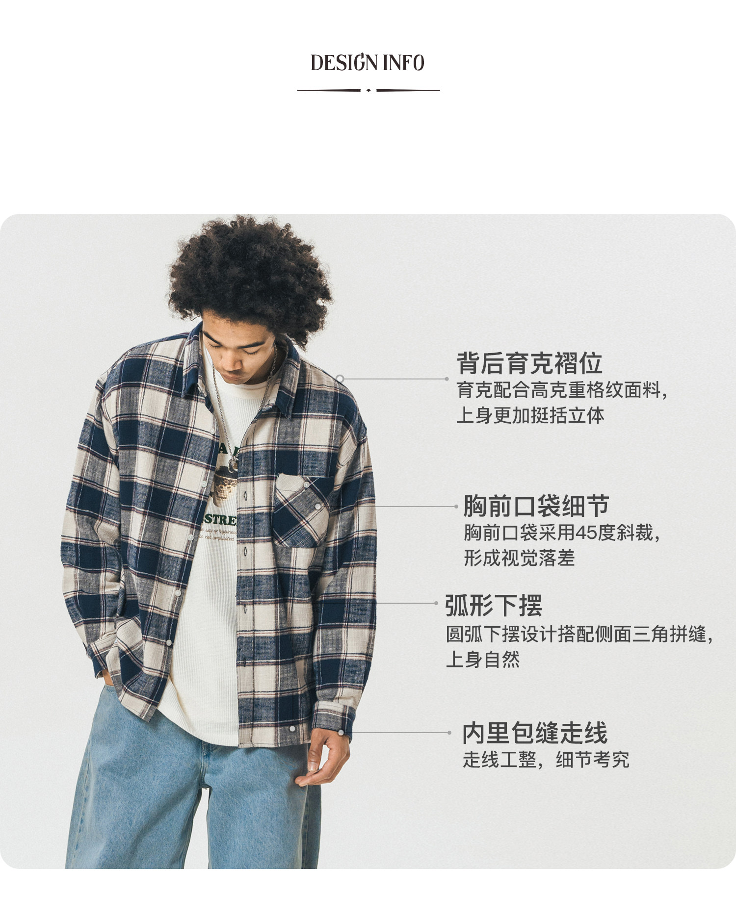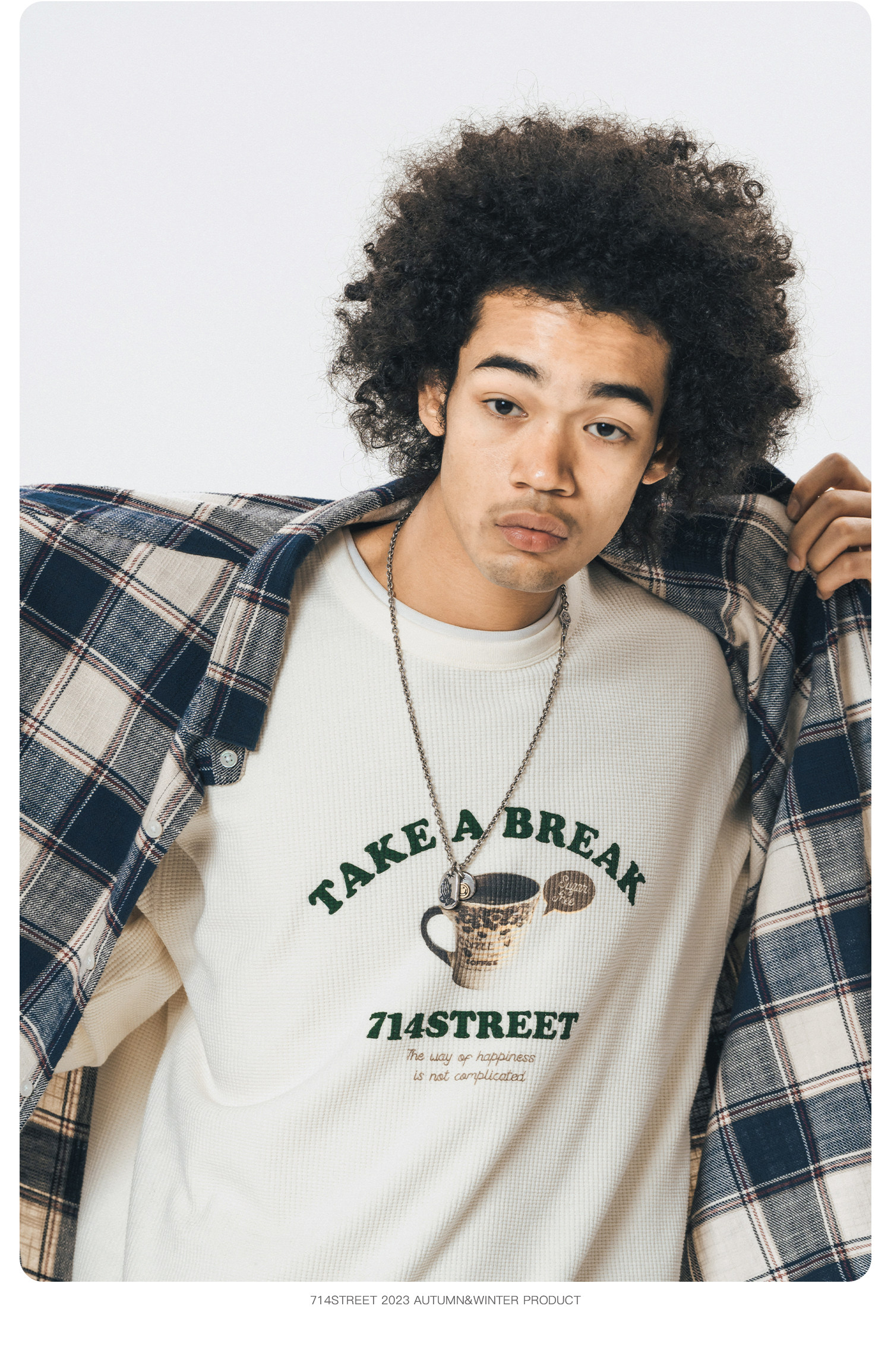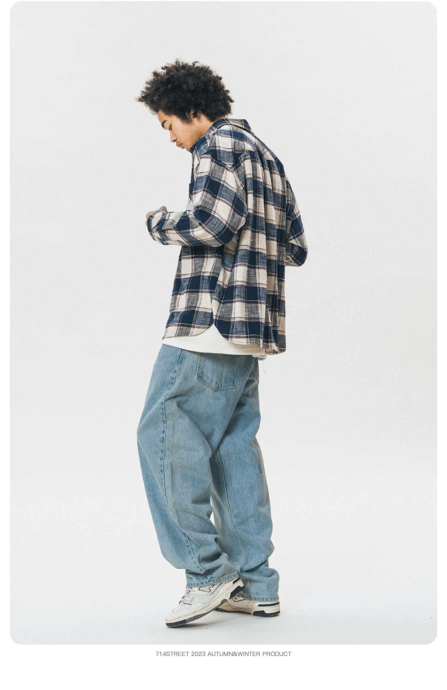 714street格子长袖衬衫男日系复古衬衣潮牌宽松上衣春季休闲外套