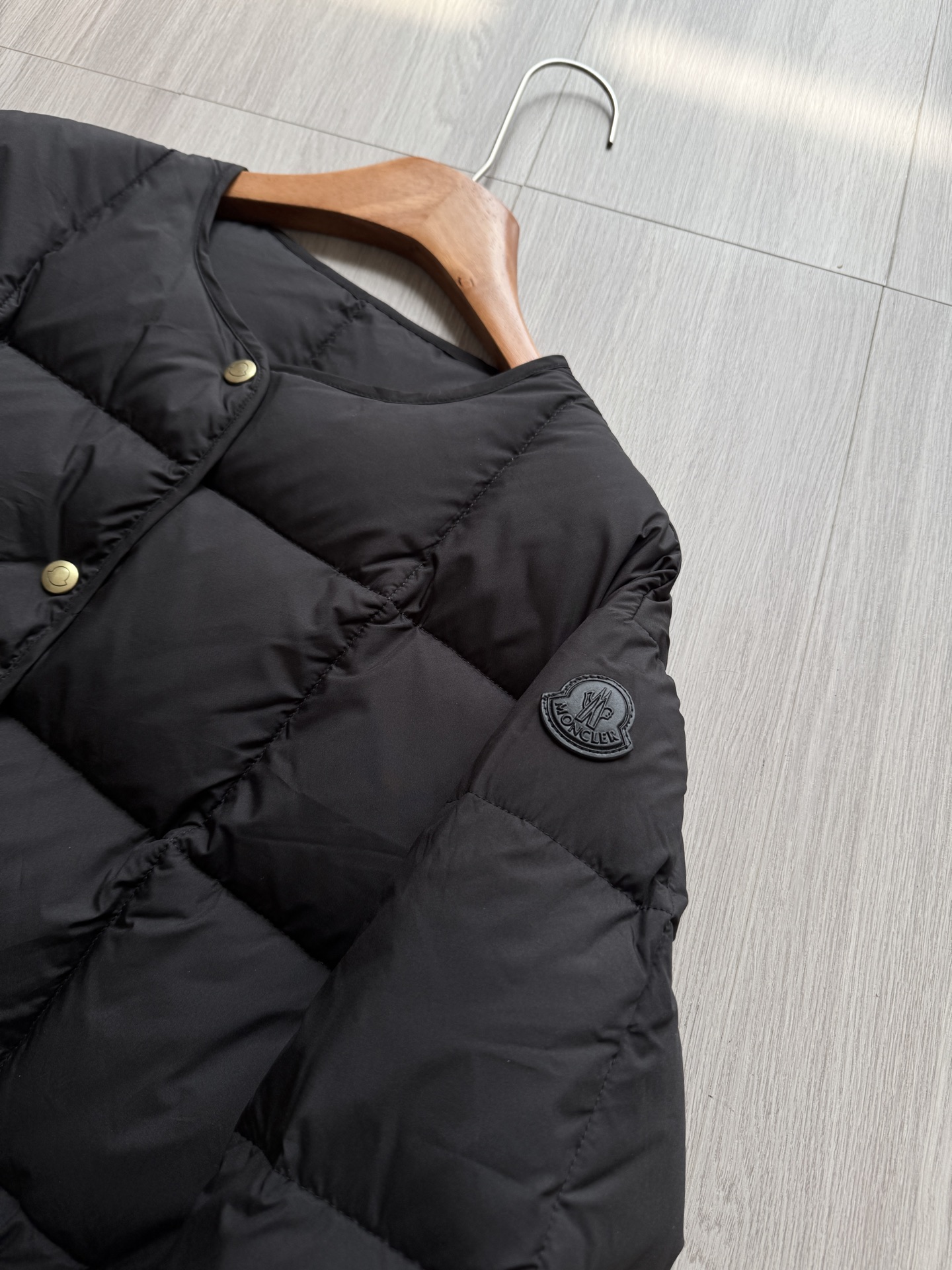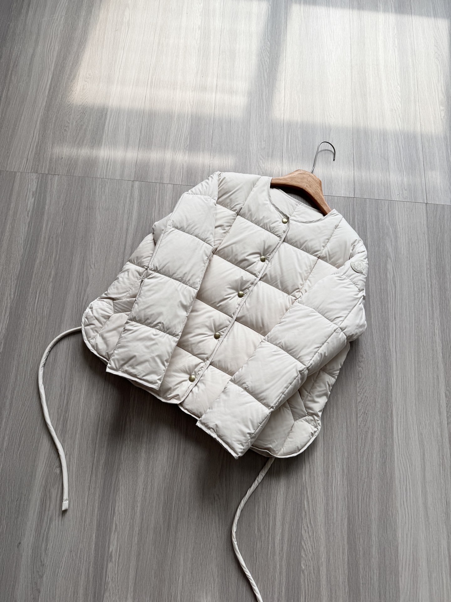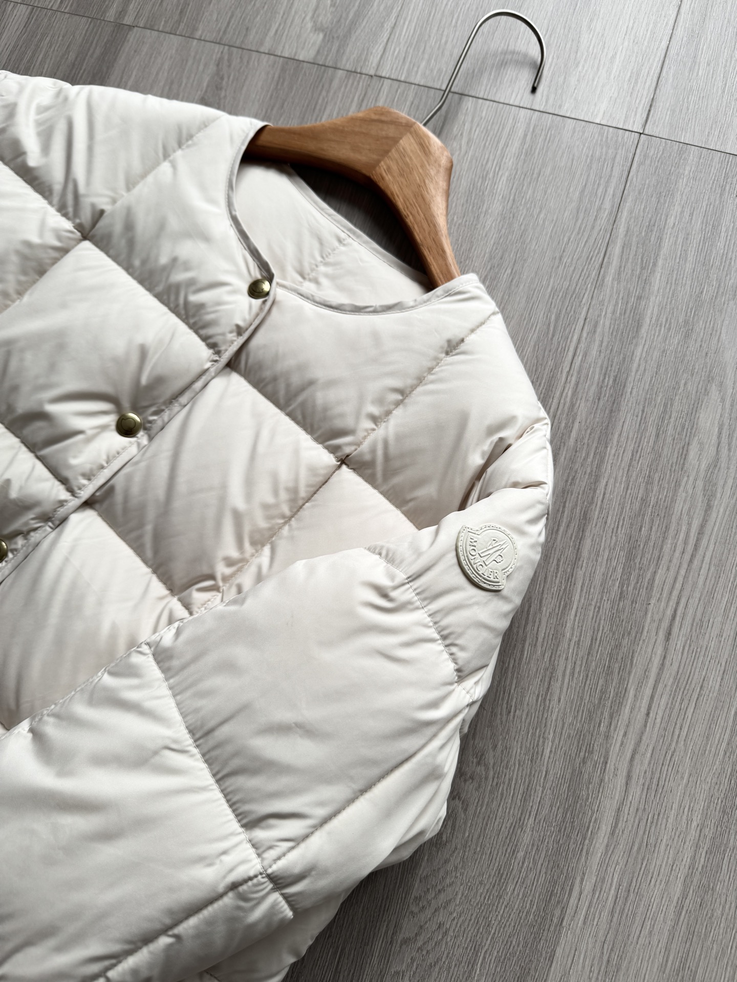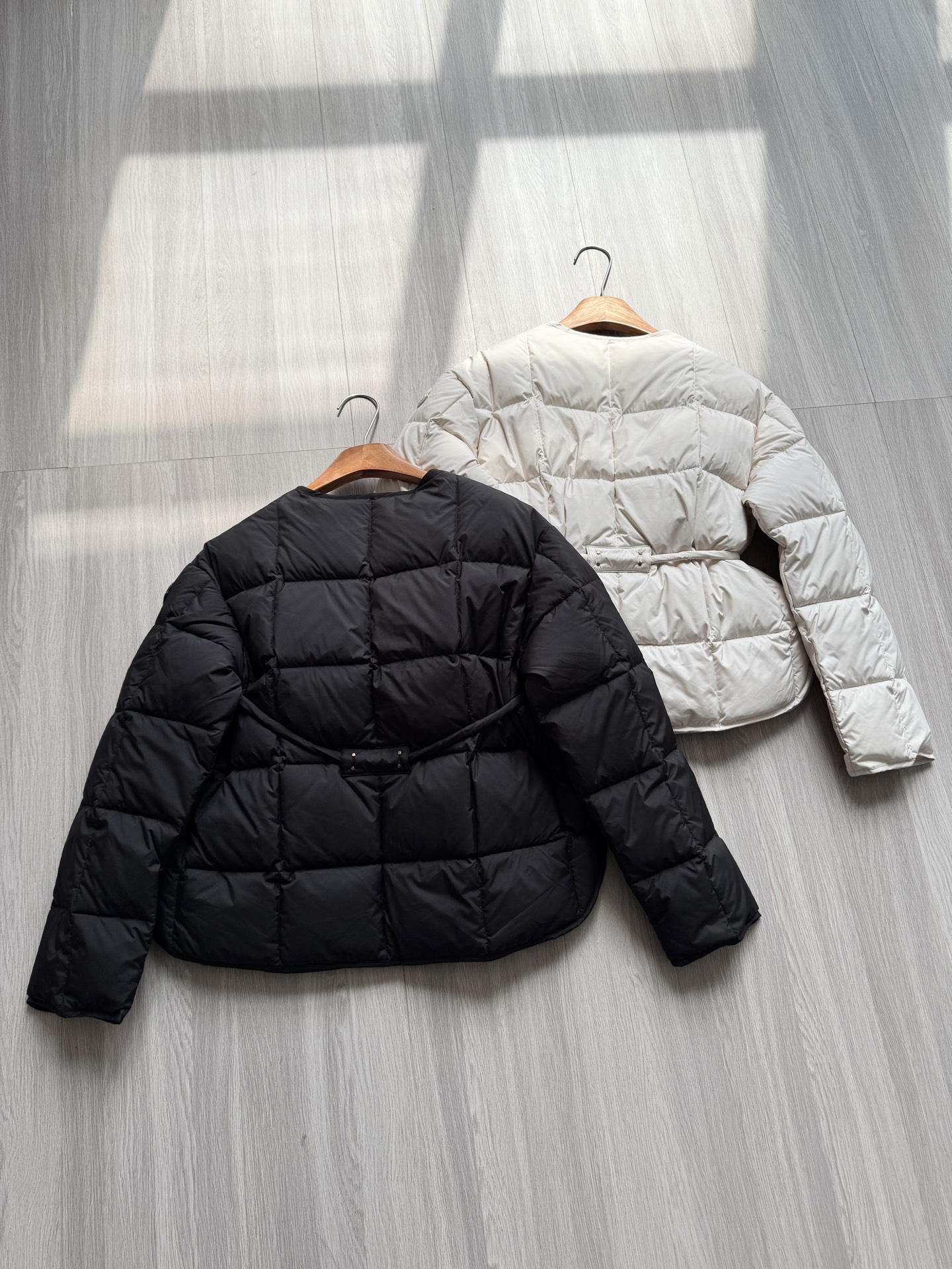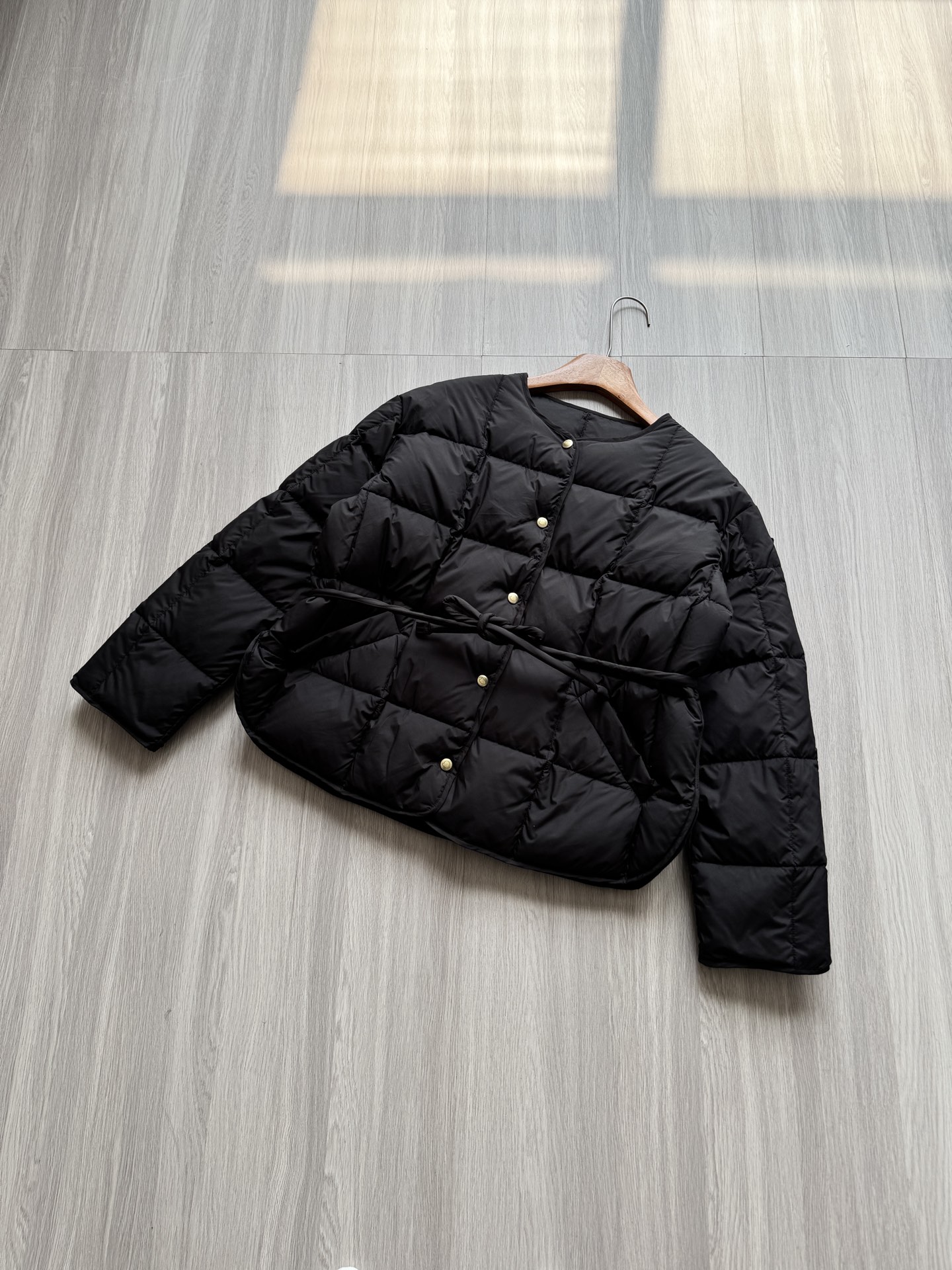 Moncler 盟可睐Caramagne 收腰羽绒服夹克外套 聚酯纤维面料制成,探索柔软廓形和材质,面料经过拉绒处理,增添纹理质感,呈现光滑外观!收腰腰带和无领设计,勾勒柔美造型,宽松版型,在寒冷天气中可轻松叠穿⚠️填充90白鹅绒羽绒 按扣开合 可拆卸腰带