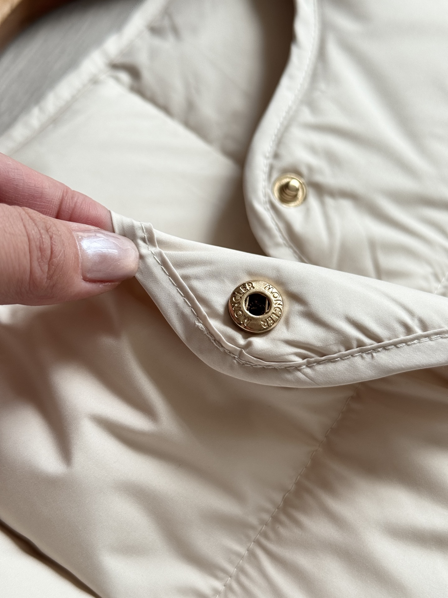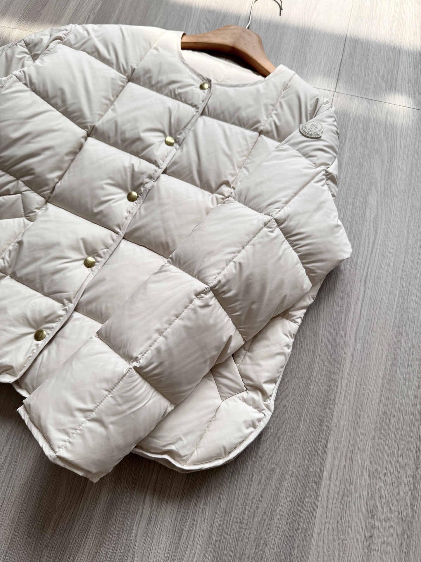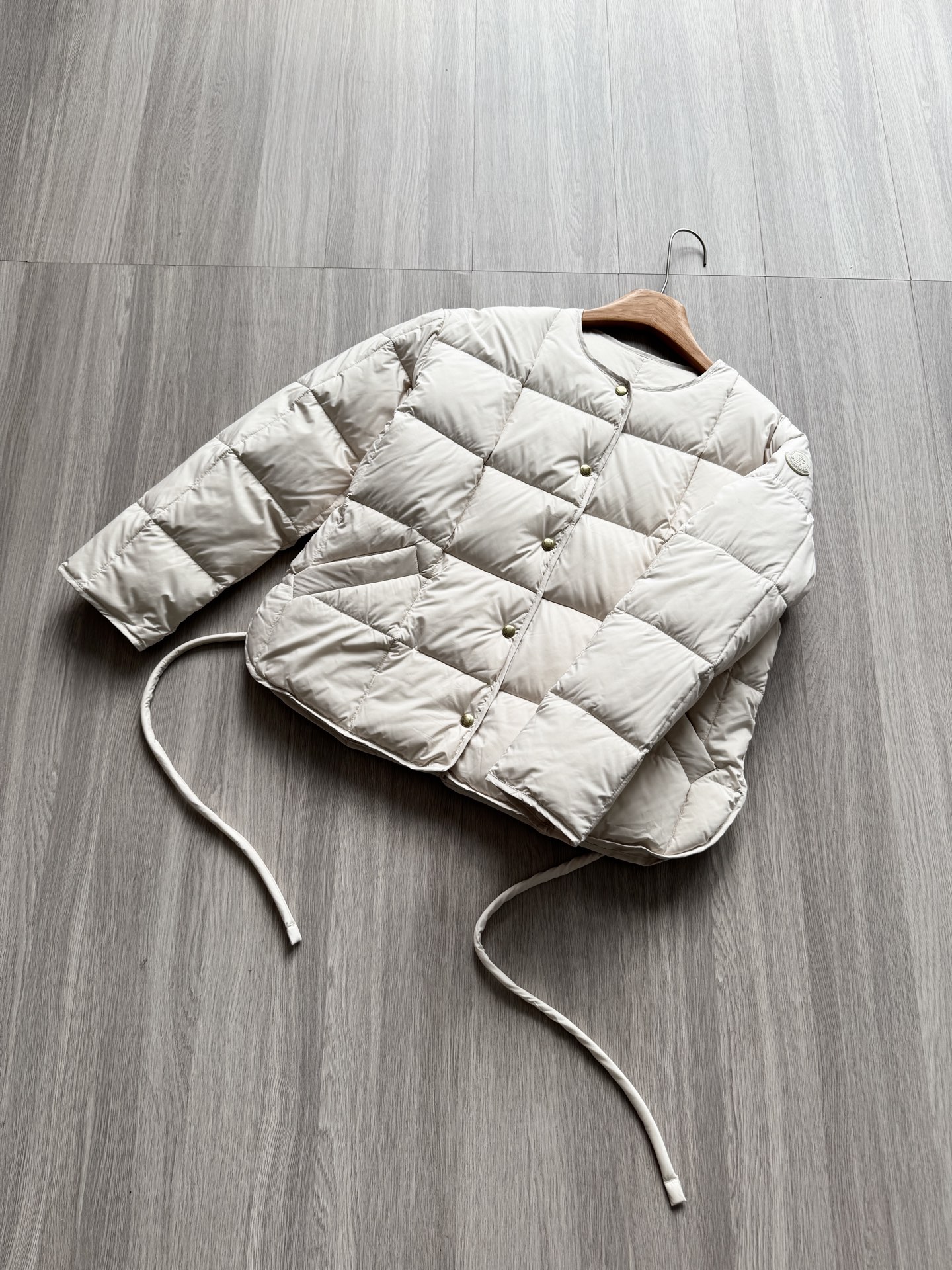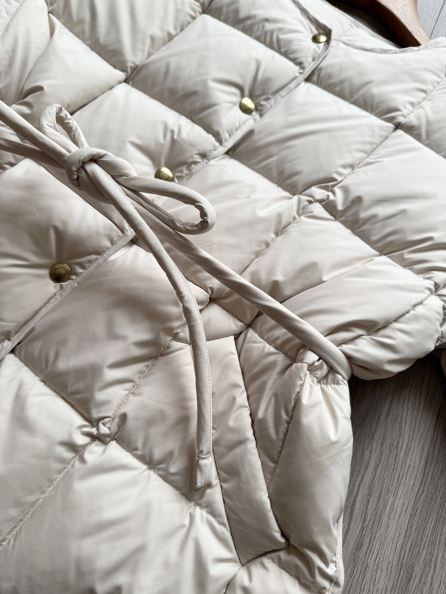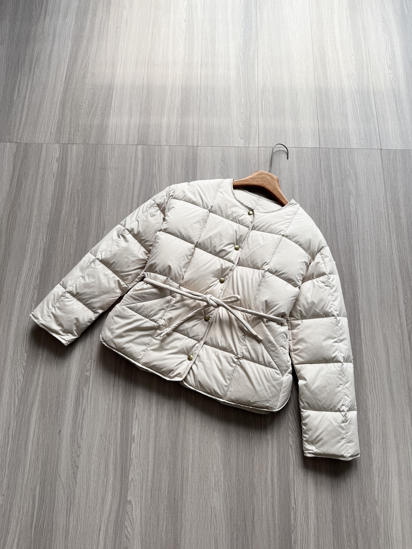 Moncler 盟可睐Caramagne 收腰羽绒服夹克外套 聚酯纤维面料制成,探索柔软廓形和材质,面料经过拉绒处理,增添纹理质感,呈现光滑外观!收腰腰带和无领设计,勾勒柔美造型,宽松版型,在寒冷天气中可轻松叠穿⚠️填充90白鹅绒羽绒 按扣开合 可拆卸腰带