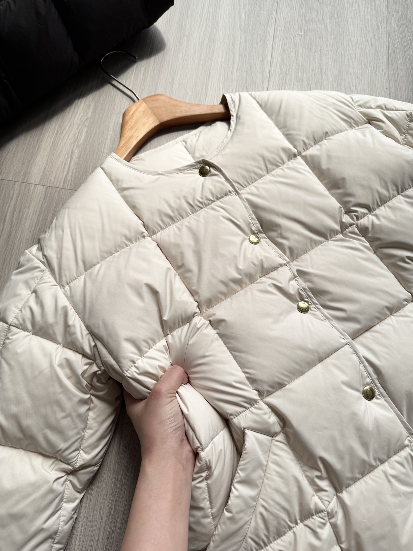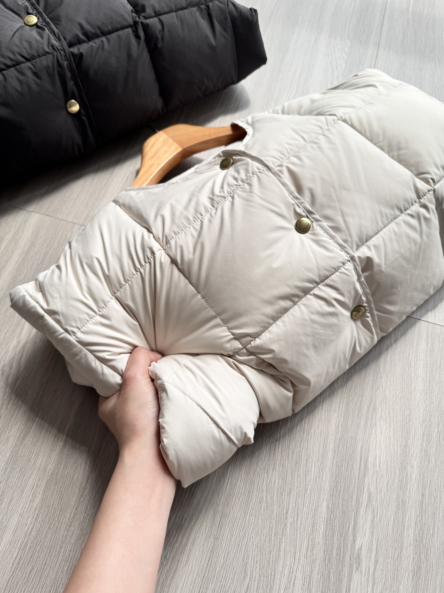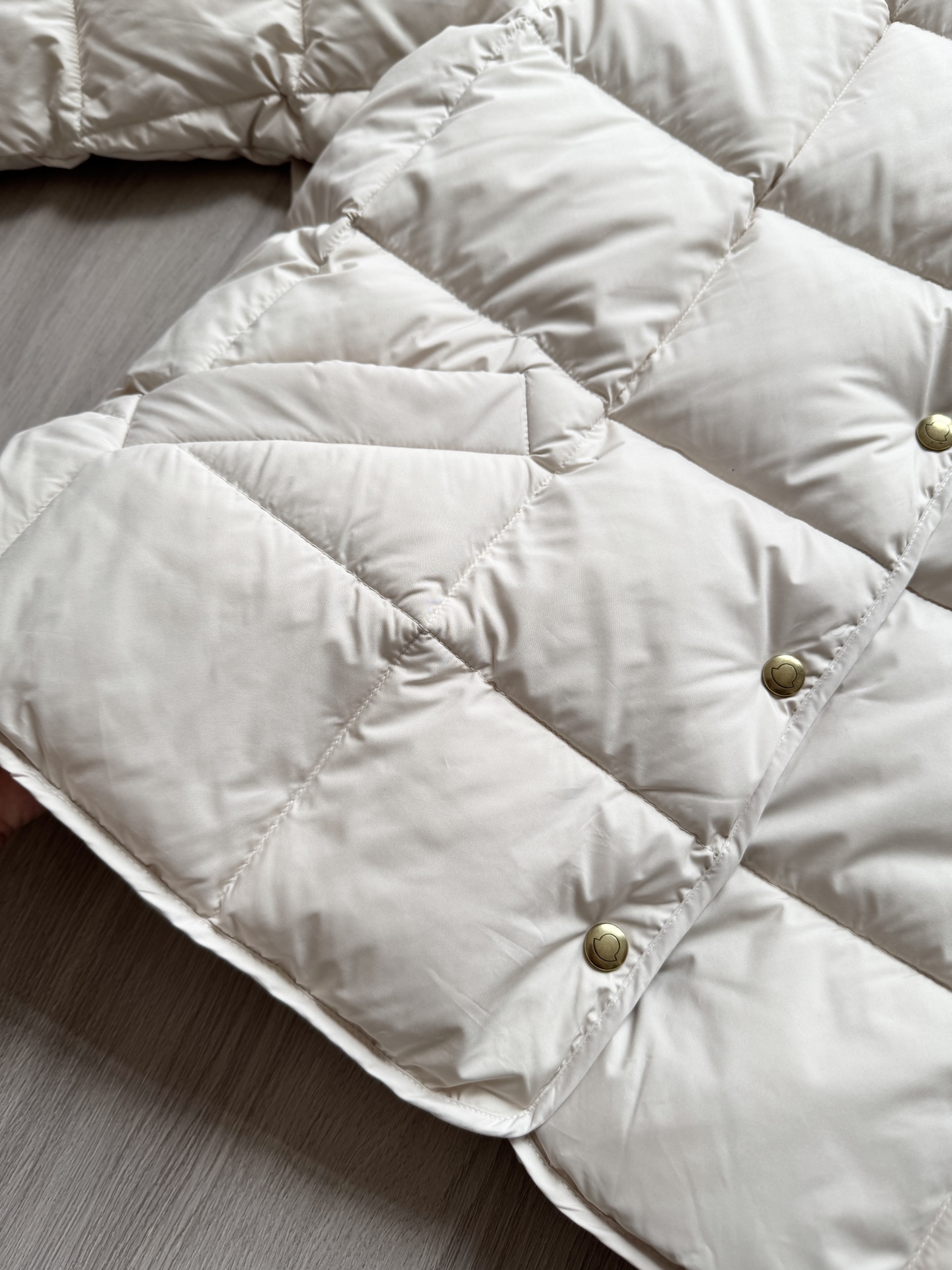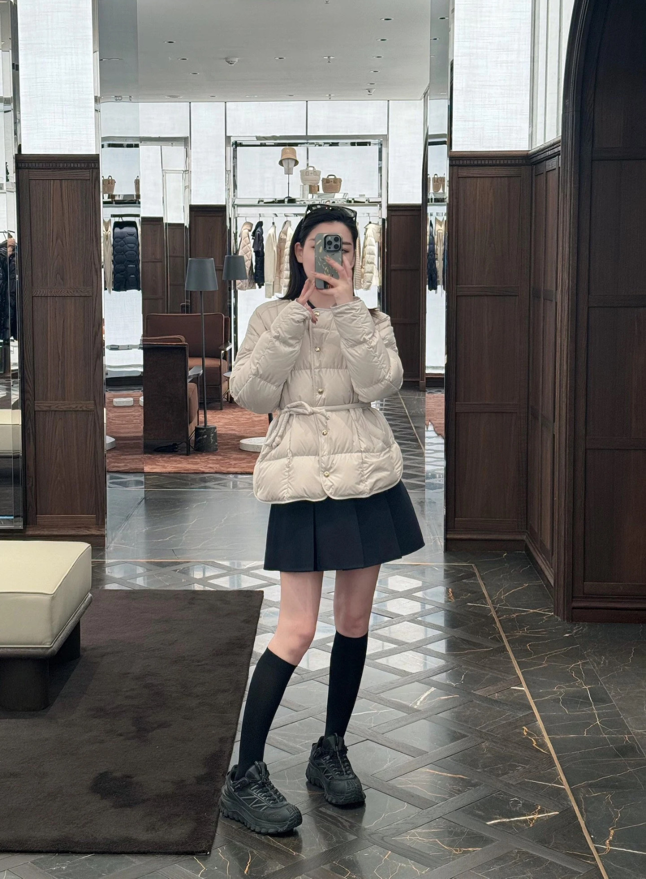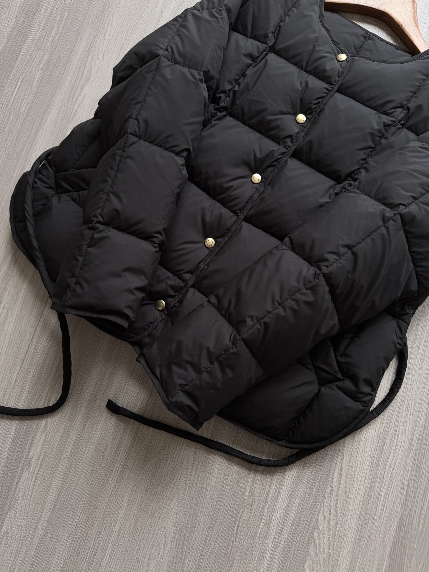 Moncler 盟可睐Caramagne 收腰羽绒服夹克外套 聚酯纤维面料制成,探索柔软廓形和材质,面料经过拉绒处理,增添纹理质感,呈现光滑外观!收腰腰带和无领设计,勾勒柔美造型,宽松版型,在寒冷天气中可轻松叠穿⚠️填充90白鹅绒羽绒 按扣开合 可拆卸腰带