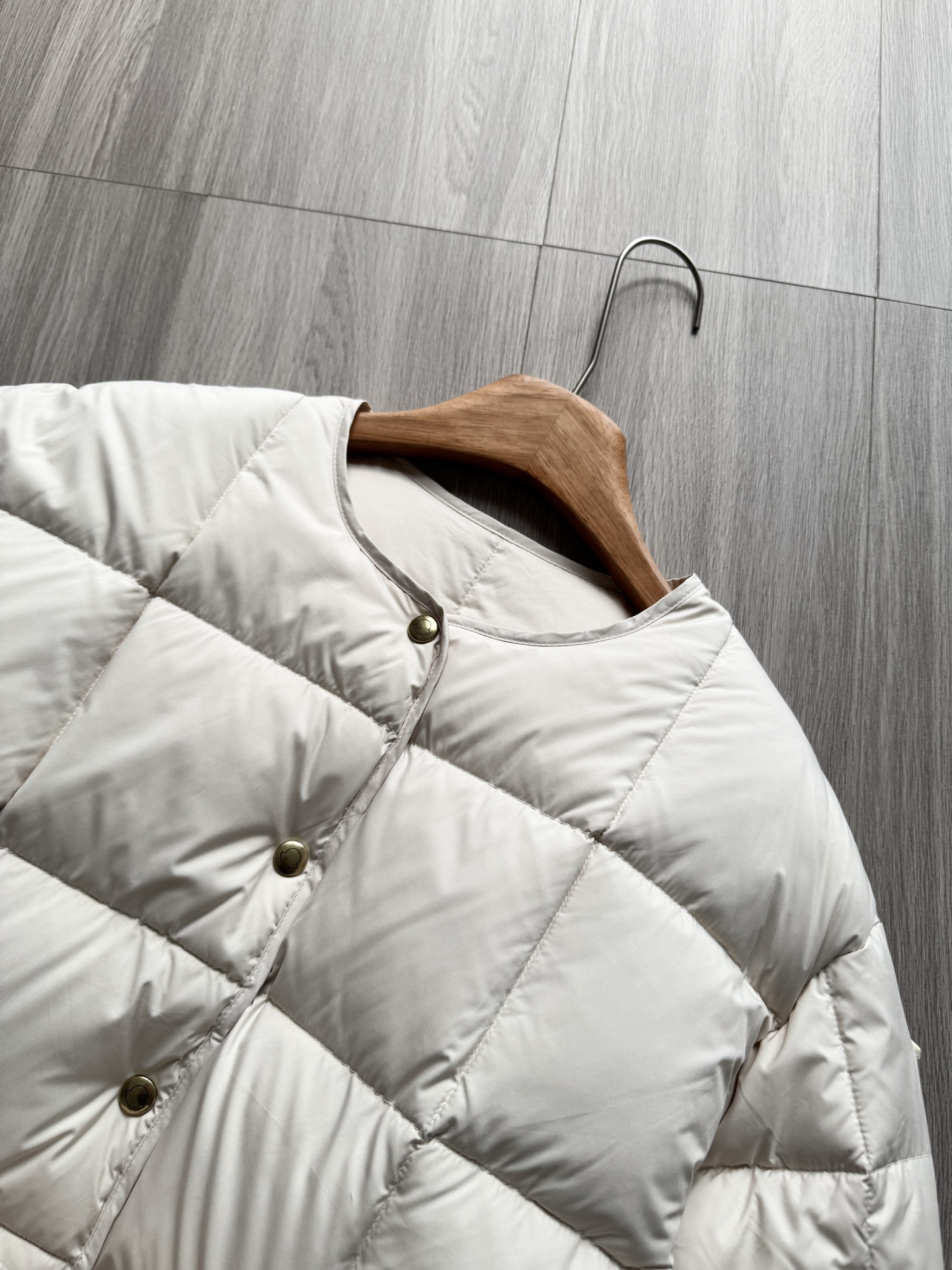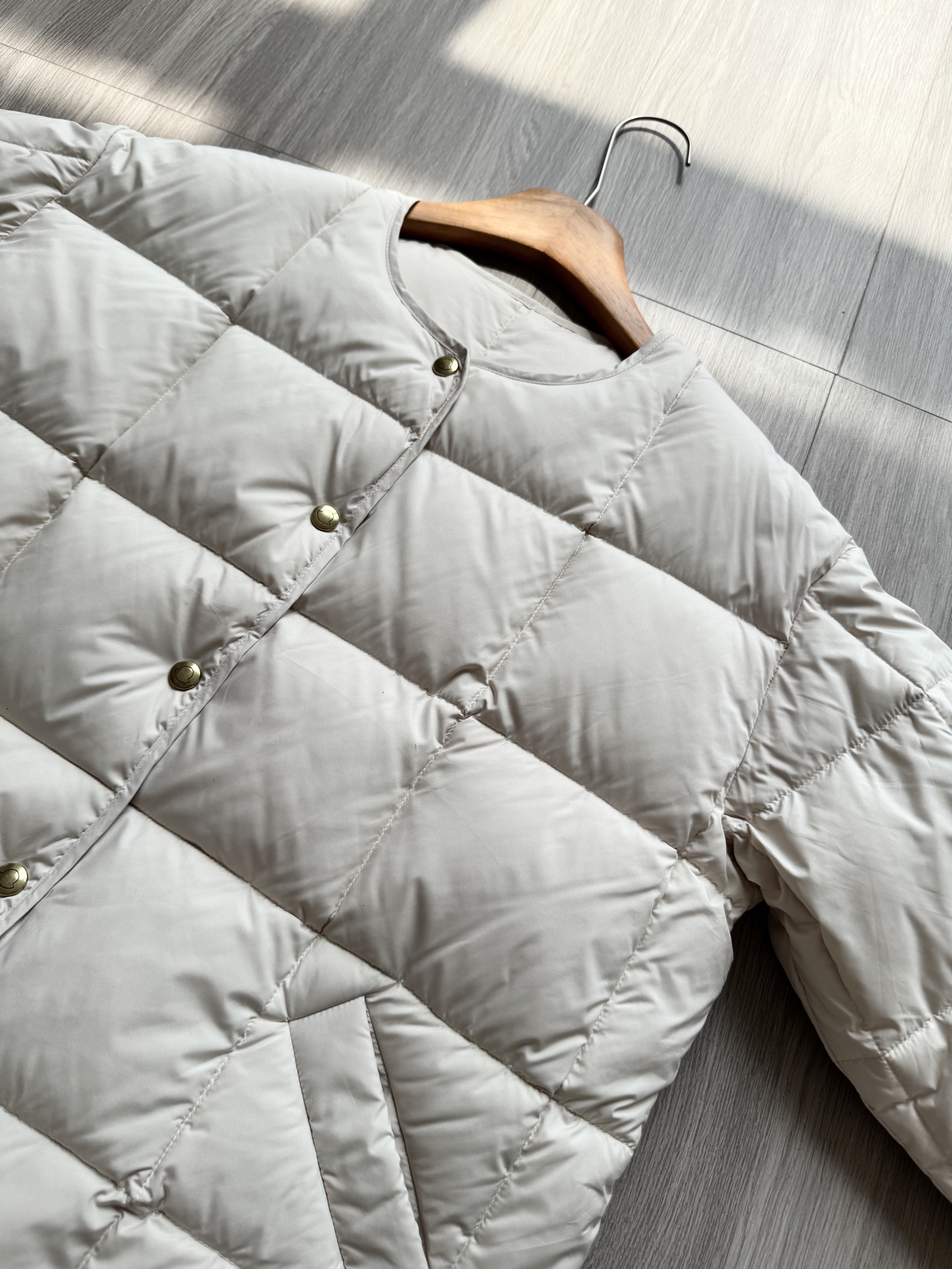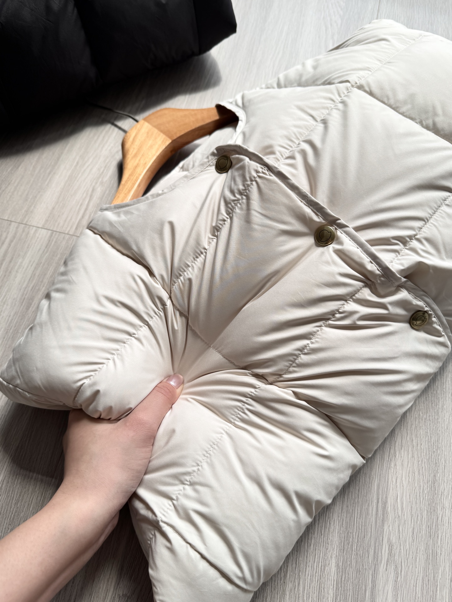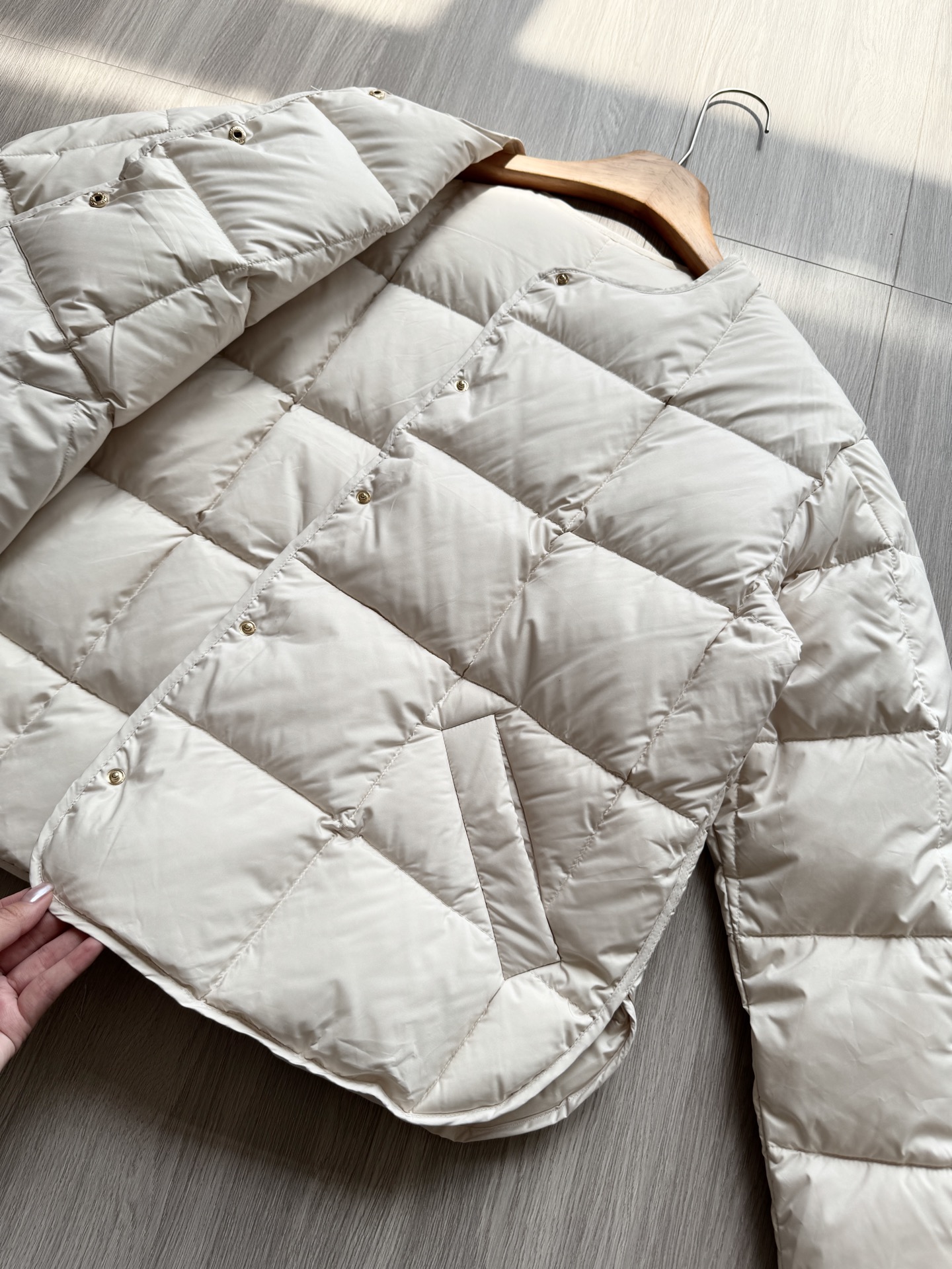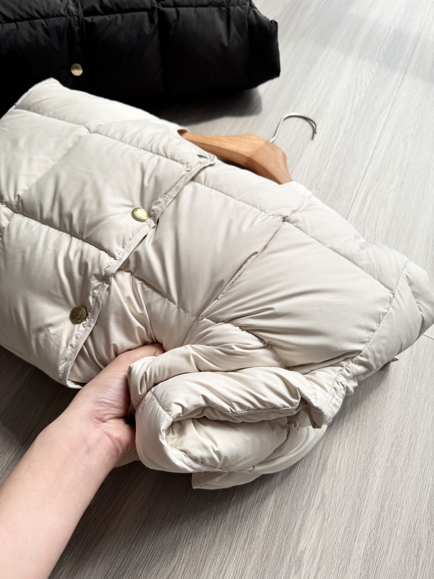 Moncler 盟可睐Caramagne 收腰羽绒服夹克外套 聚酯纤维面料制成,探索柔软廓形和材质,面料经过拉绒处理,增添纹理质感,呈现光滑外观!收腰腰带和无领设计,勾勒柔美造型,宽松版型,在寒冷天气中可轻松叠穿⚠️填充90白鹅绒羽绒 按扣开合 可拆卸腰带