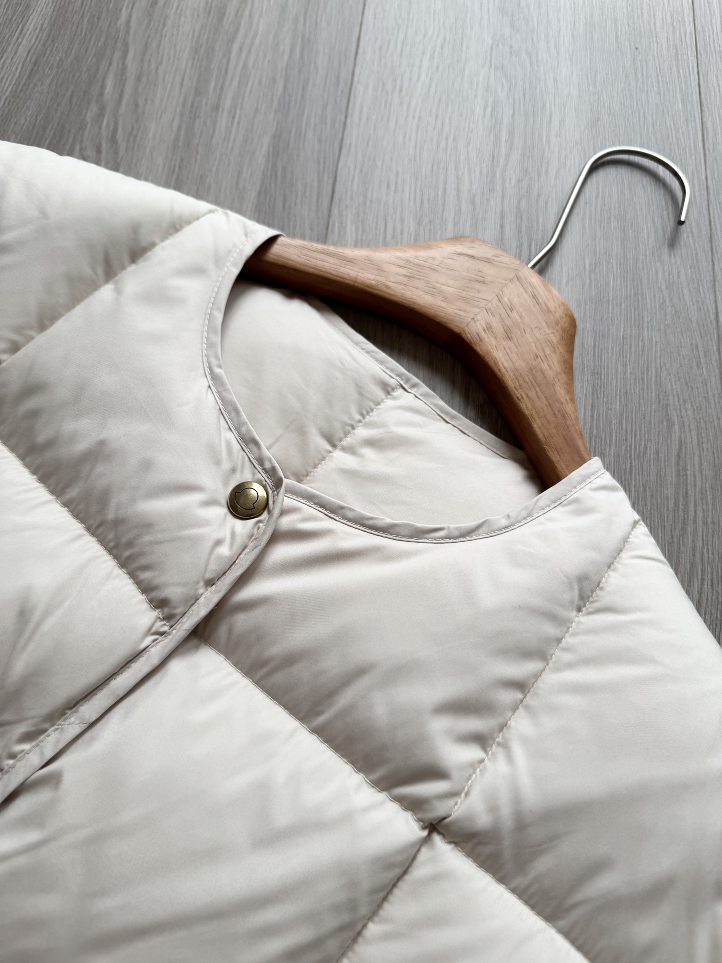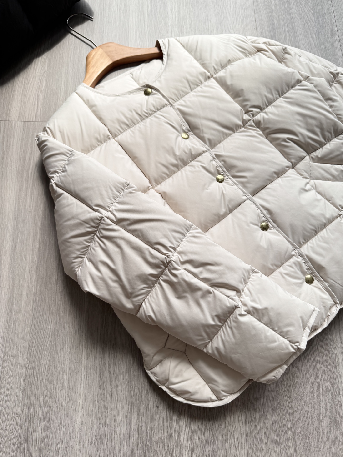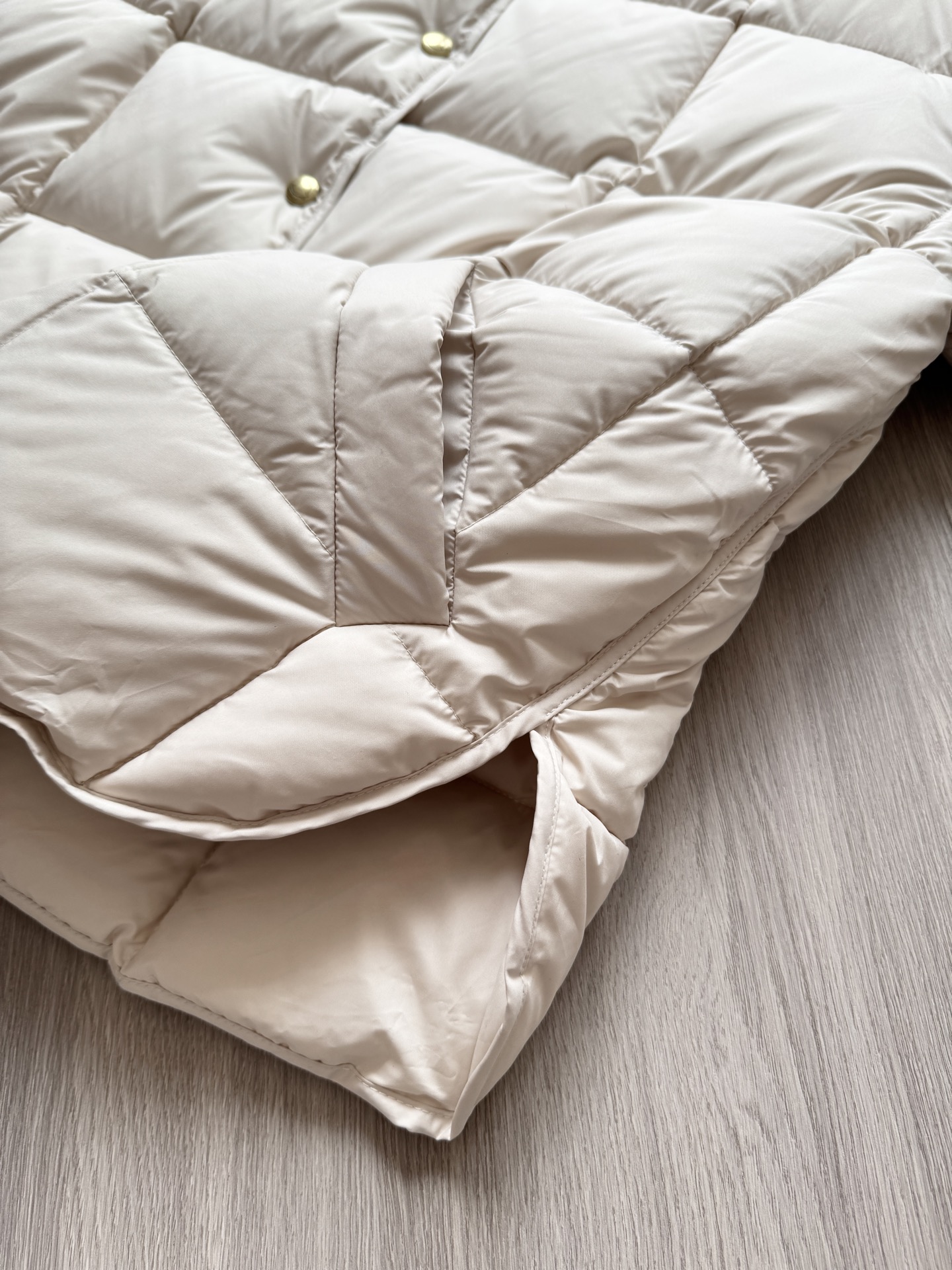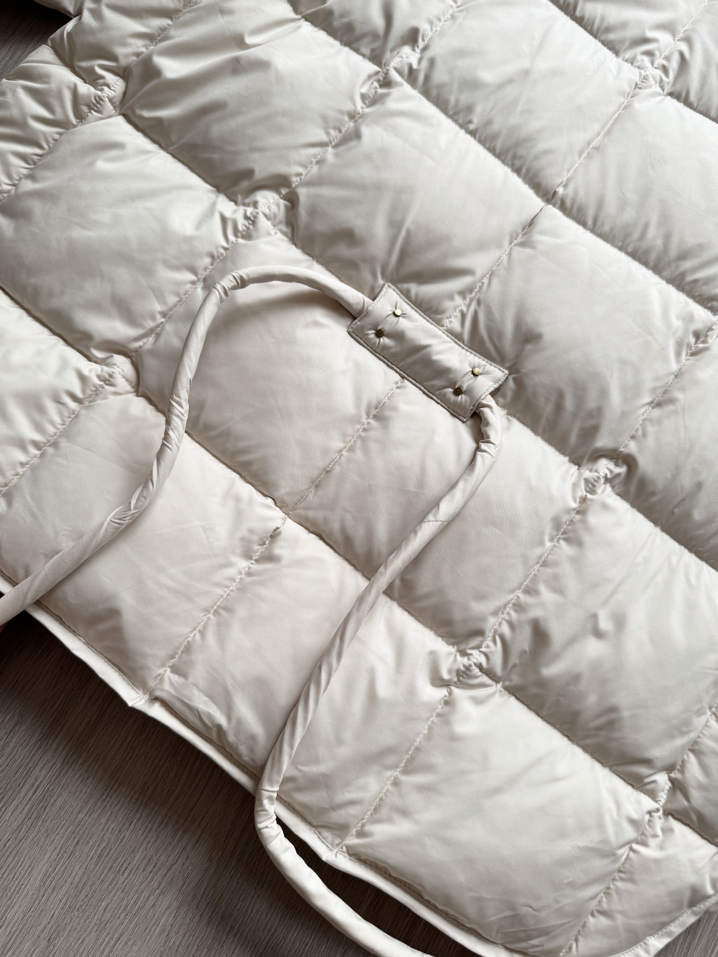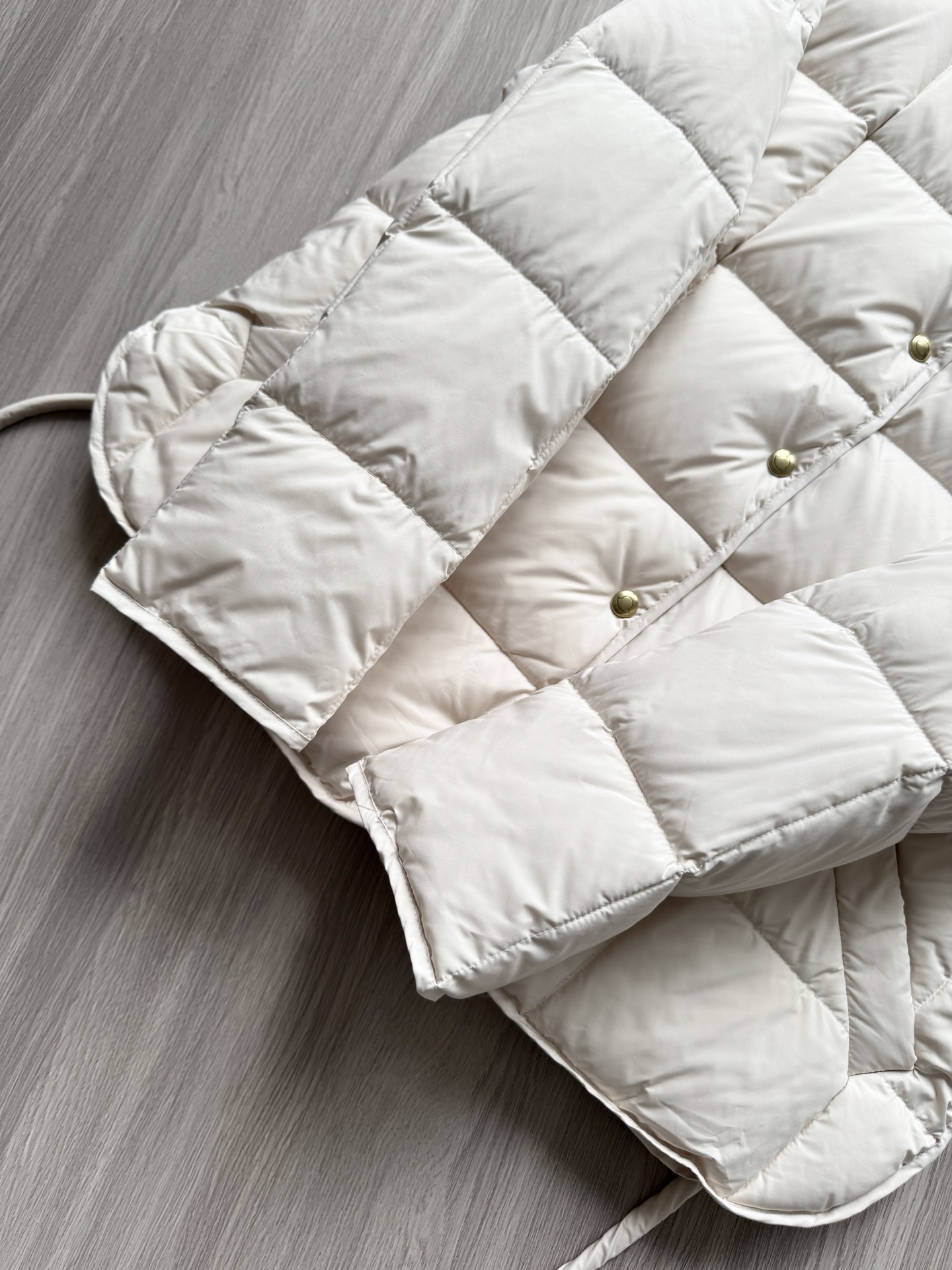 Moncler 盟可睐Caramagne 收腰羽绒服夹克外套 聚酯纤维面料制成,探索柔软廓形和材质,面料经过拉绒处理,增添纹理质感,呈现光滑外观!收腰腰带和无领设计,勾勒柔美造型,宽松版型,在寒冷天气中可轻松叠穿⚠️填充90白鹅绒羽绒 按扣开合 可拆卸腰带