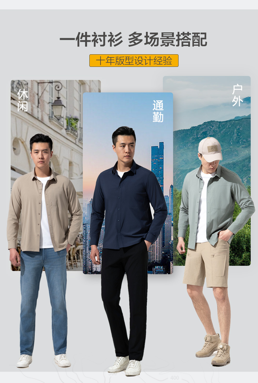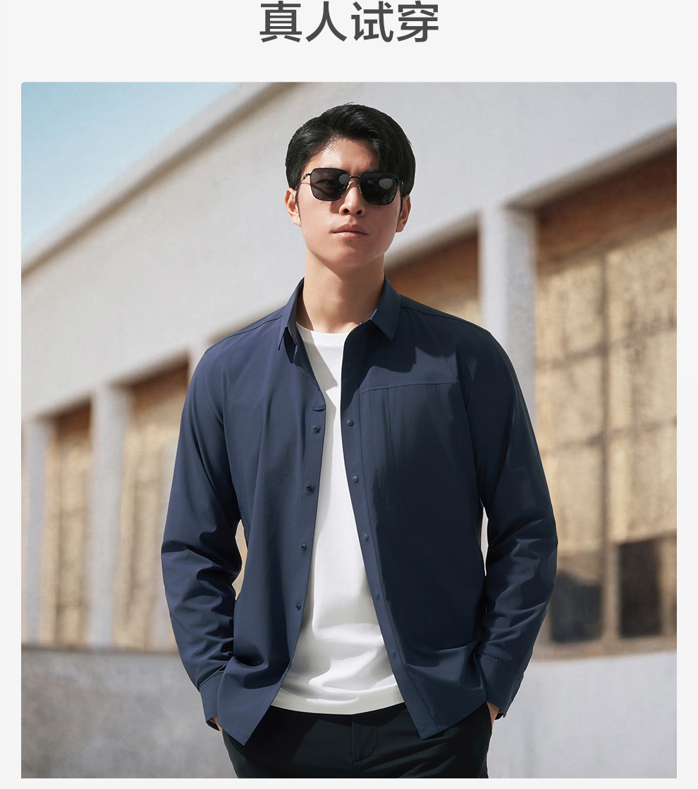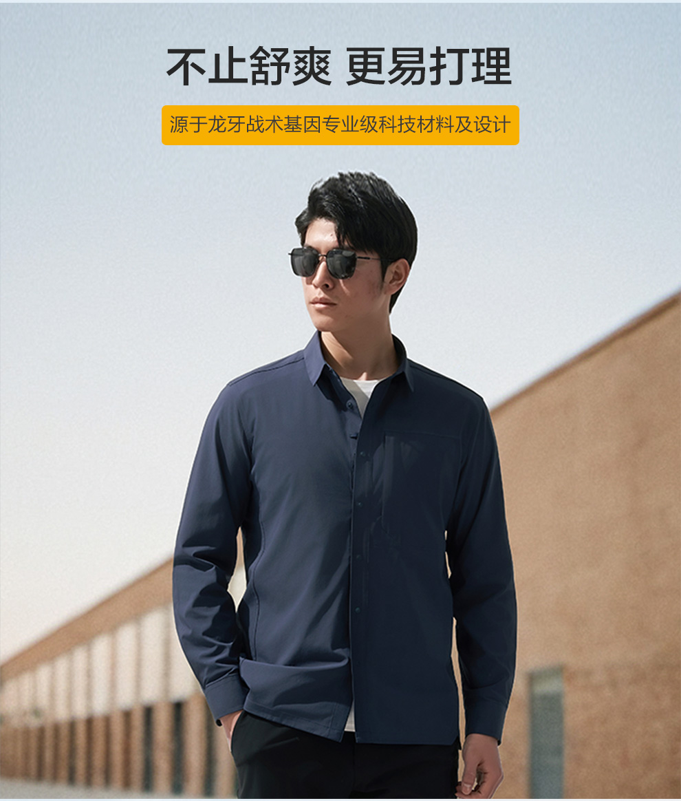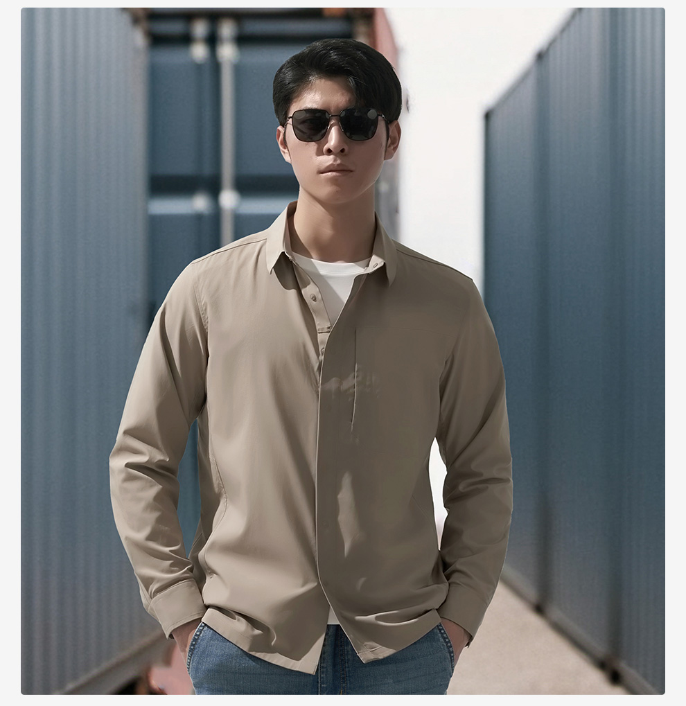 隐之轻竹速干休闲长袖衬衫春夏时尚百搭男通勤修身透气速干