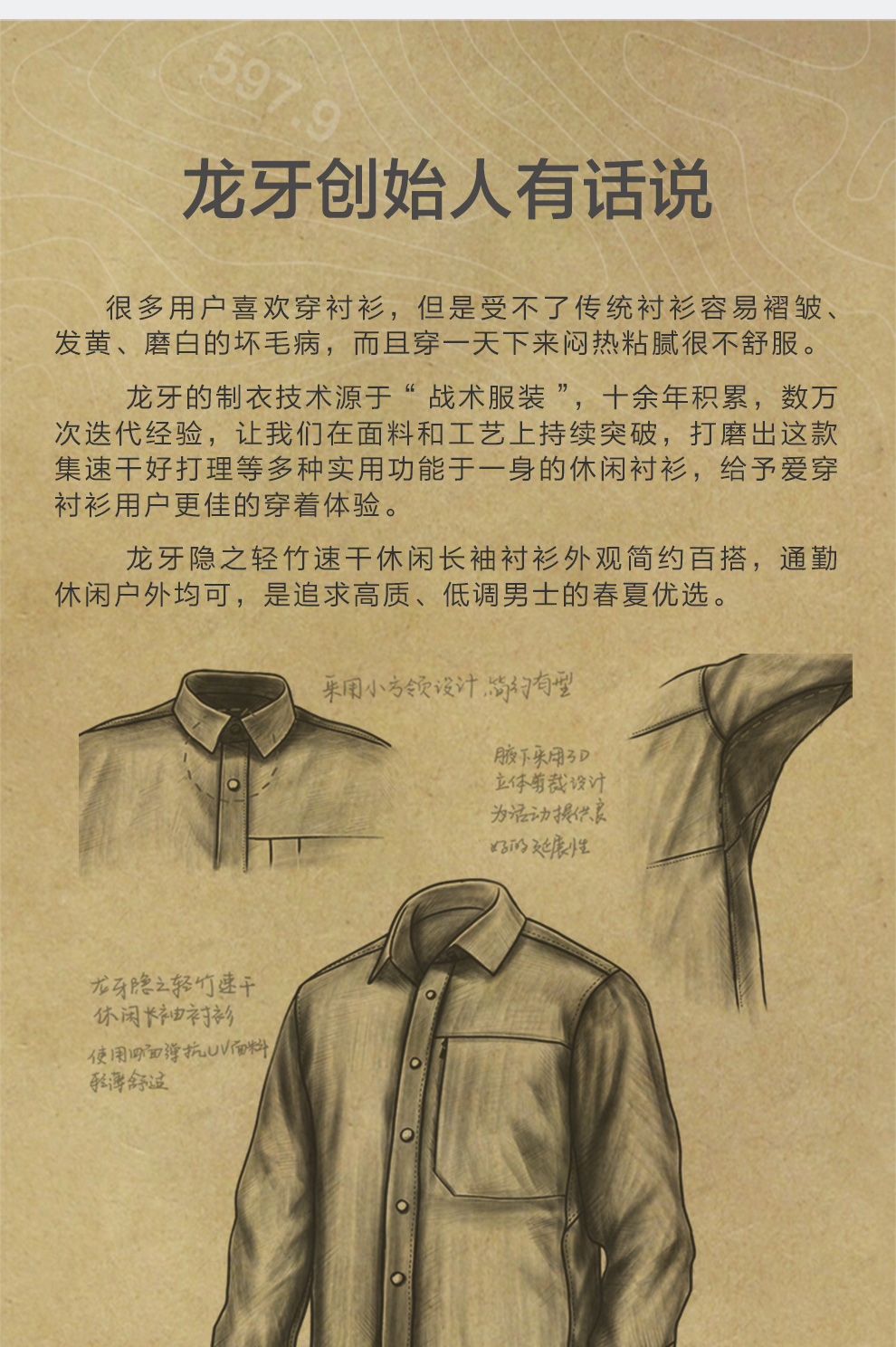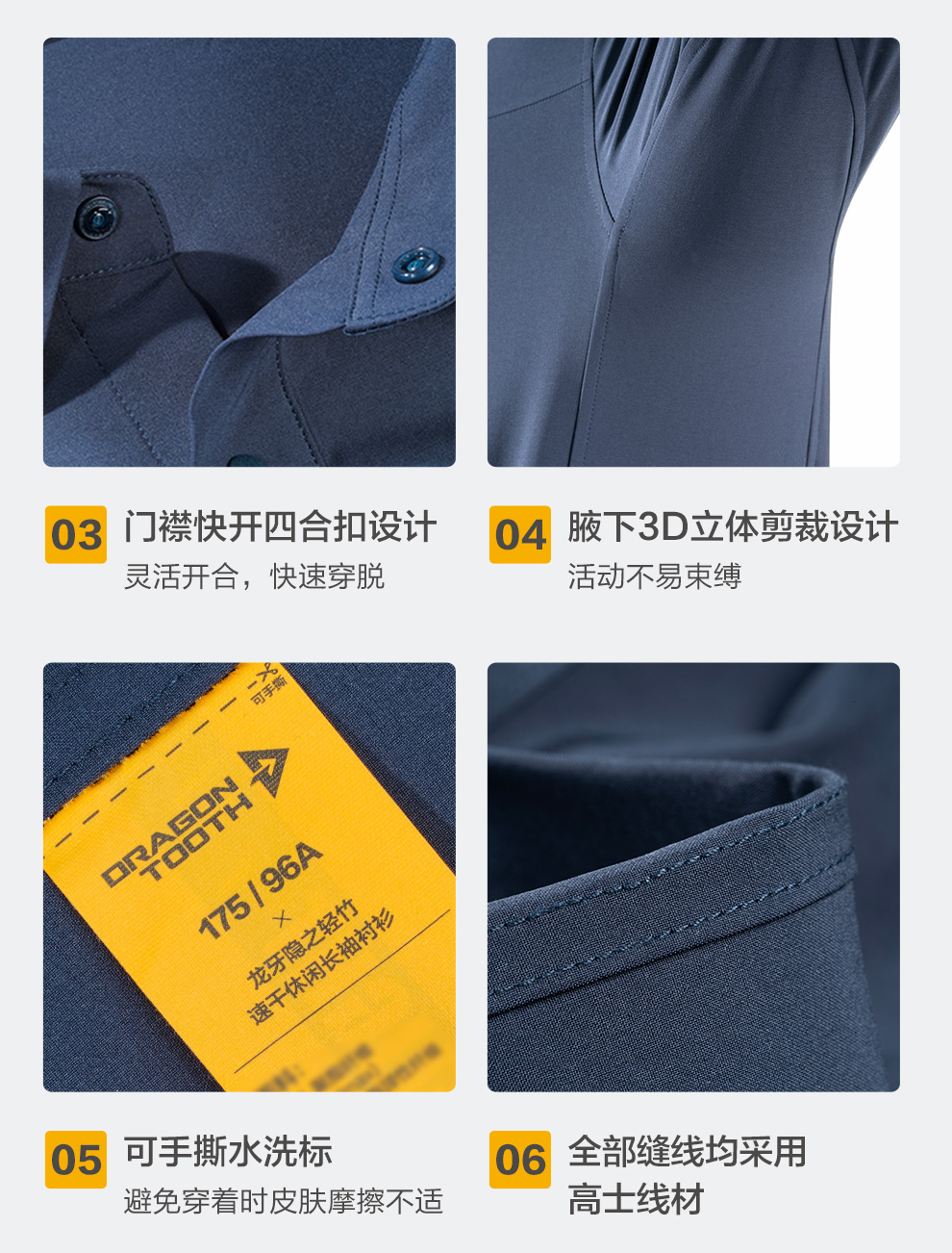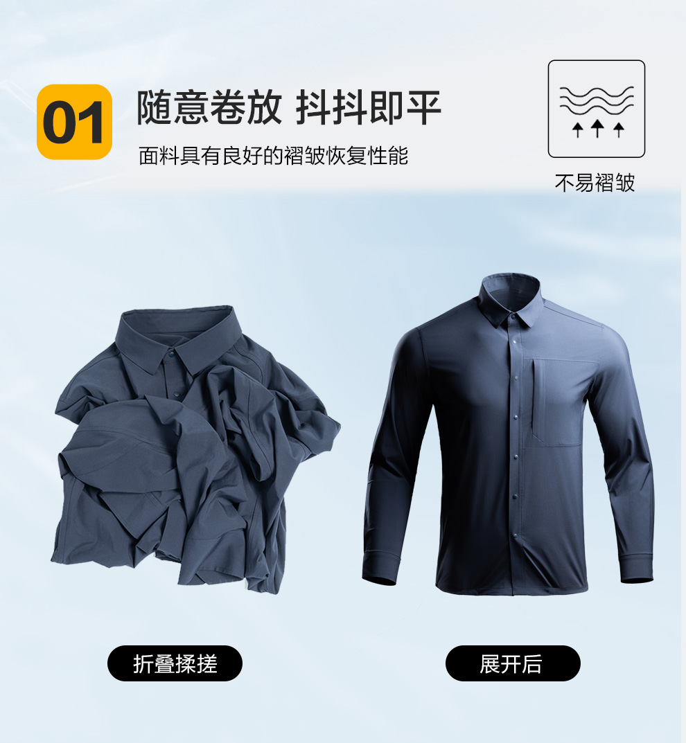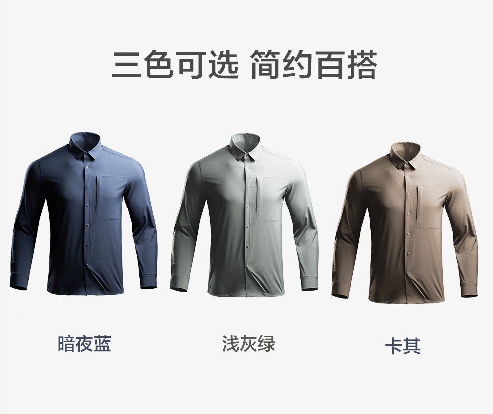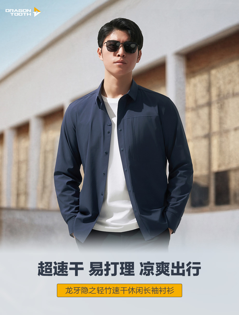 隐之轻竹速干休闲长袖衬衫春夏时尚百搭男通勤修身透气速干