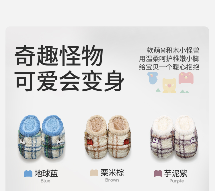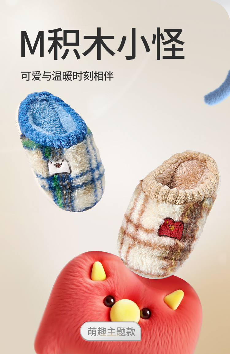 牧童积木小怪兽居家鞋冬季新款男童加绒保暖室内软底拖鞋