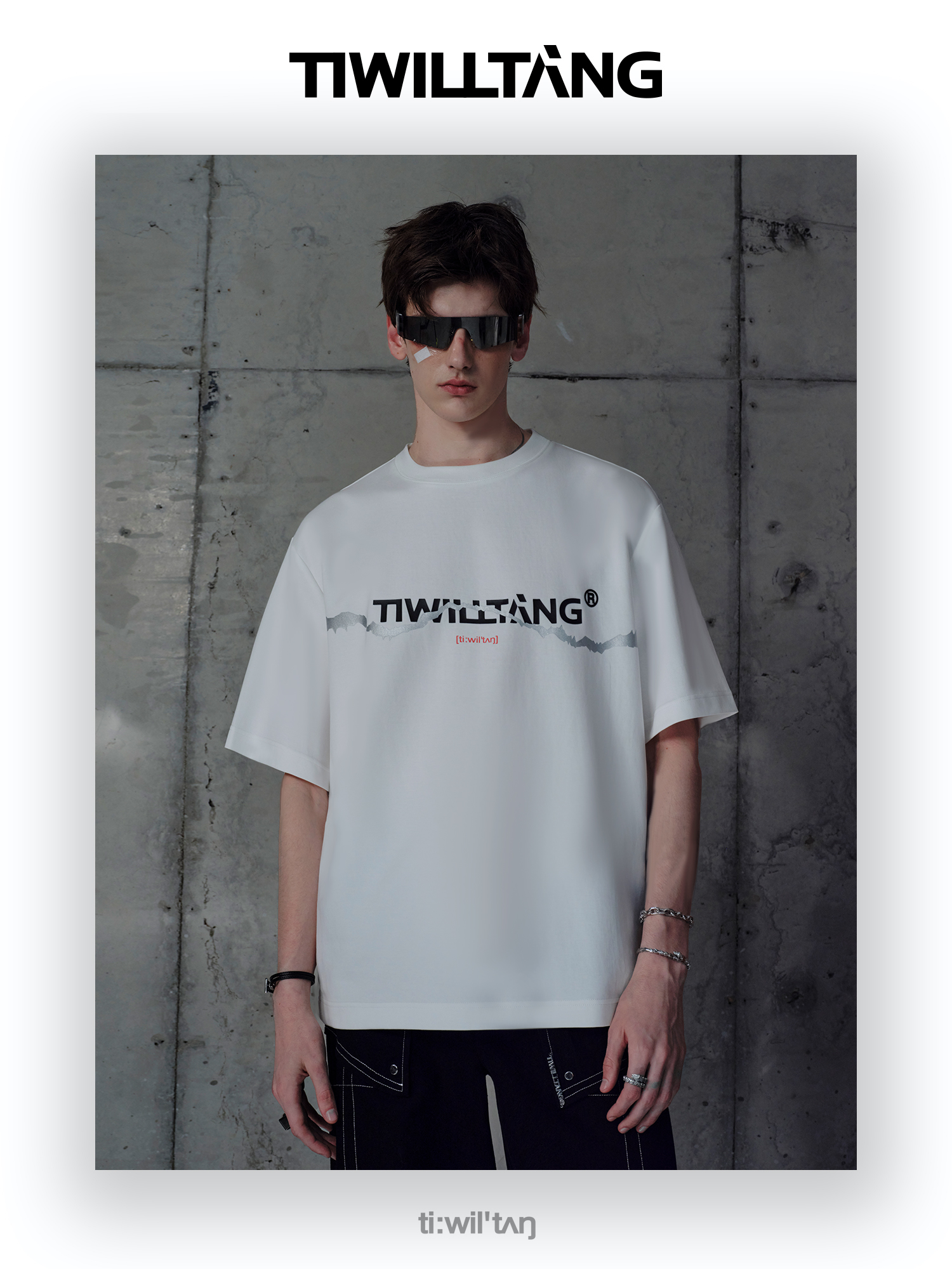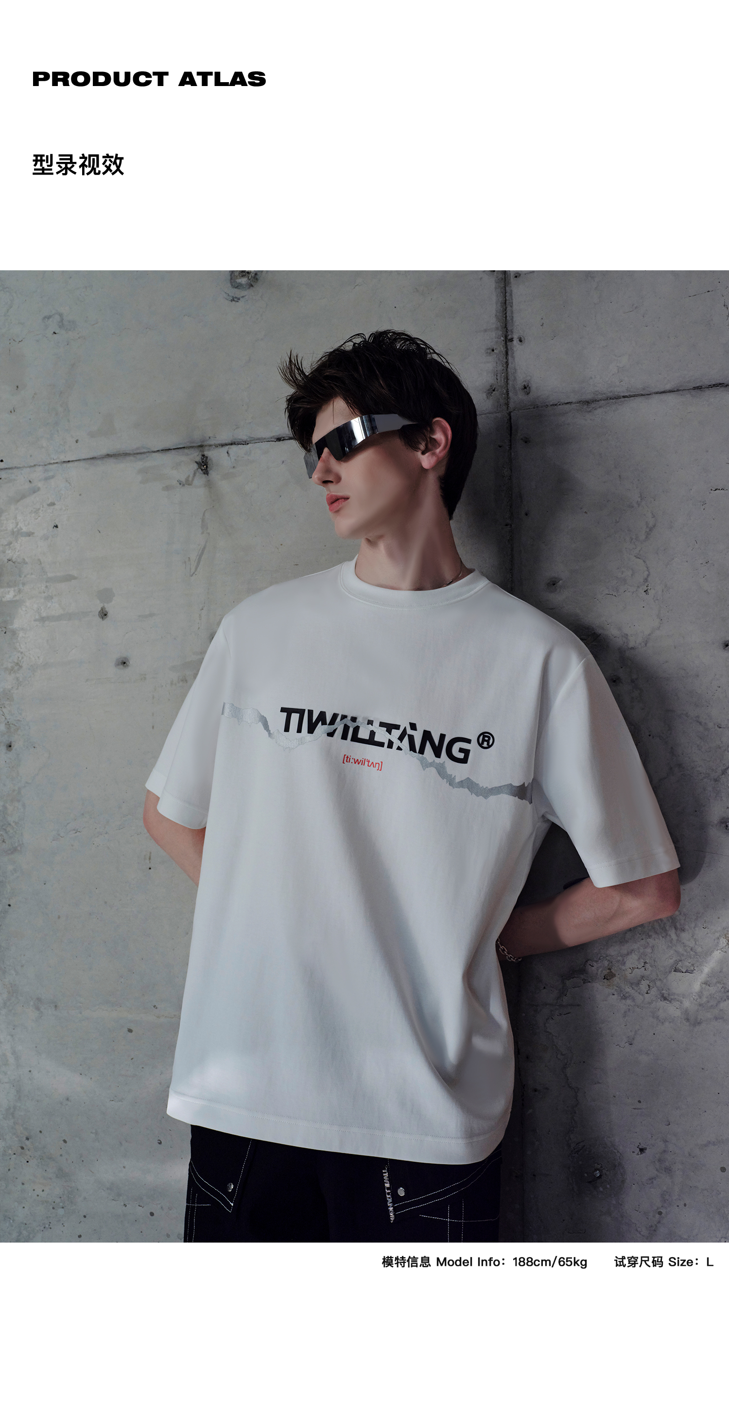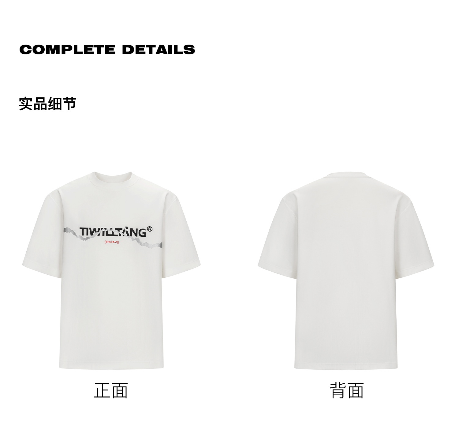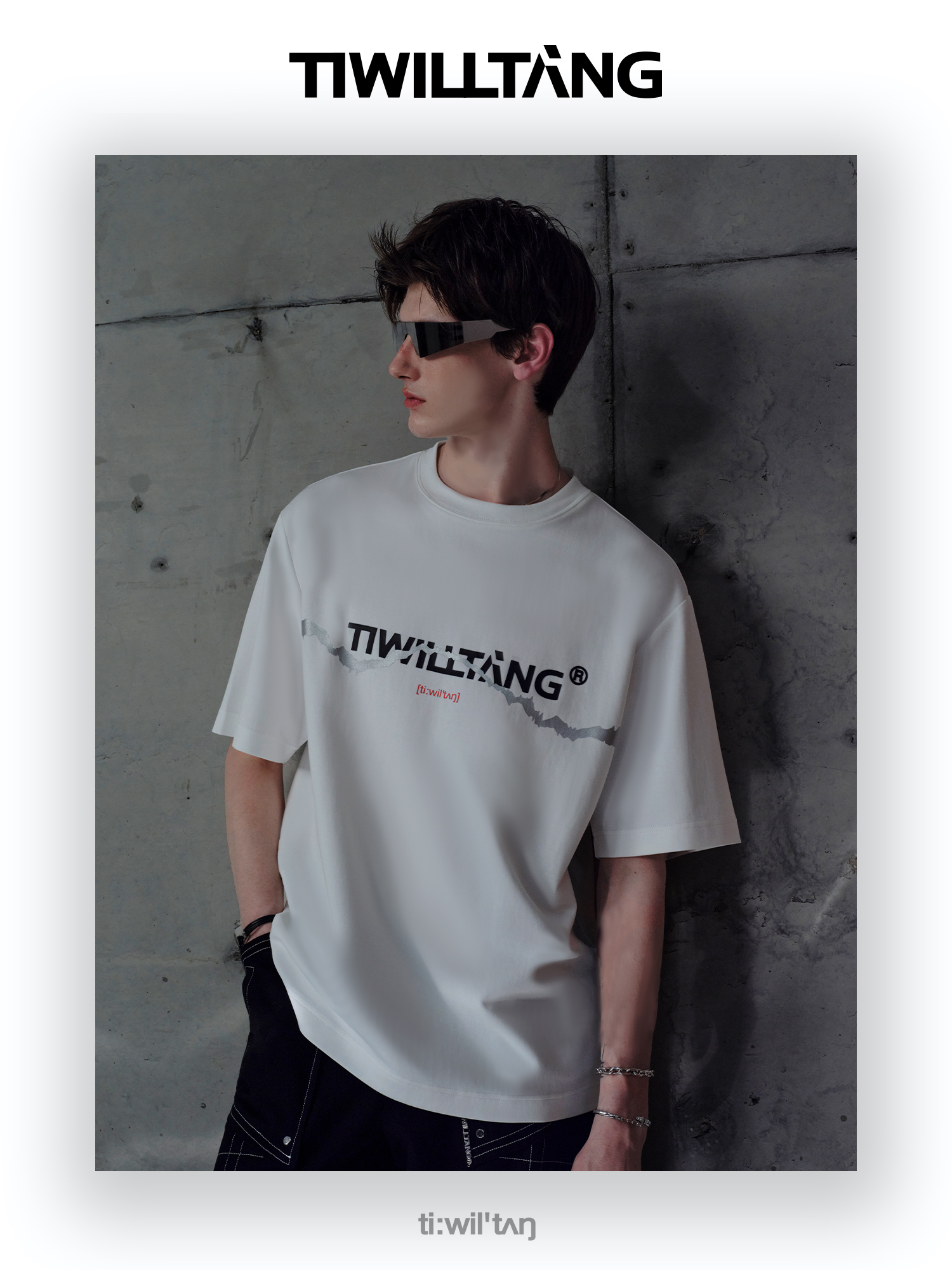 启世录TIWILLTANG“裂银映隙”刷银厚板印花logo短袖圆领t恤男
