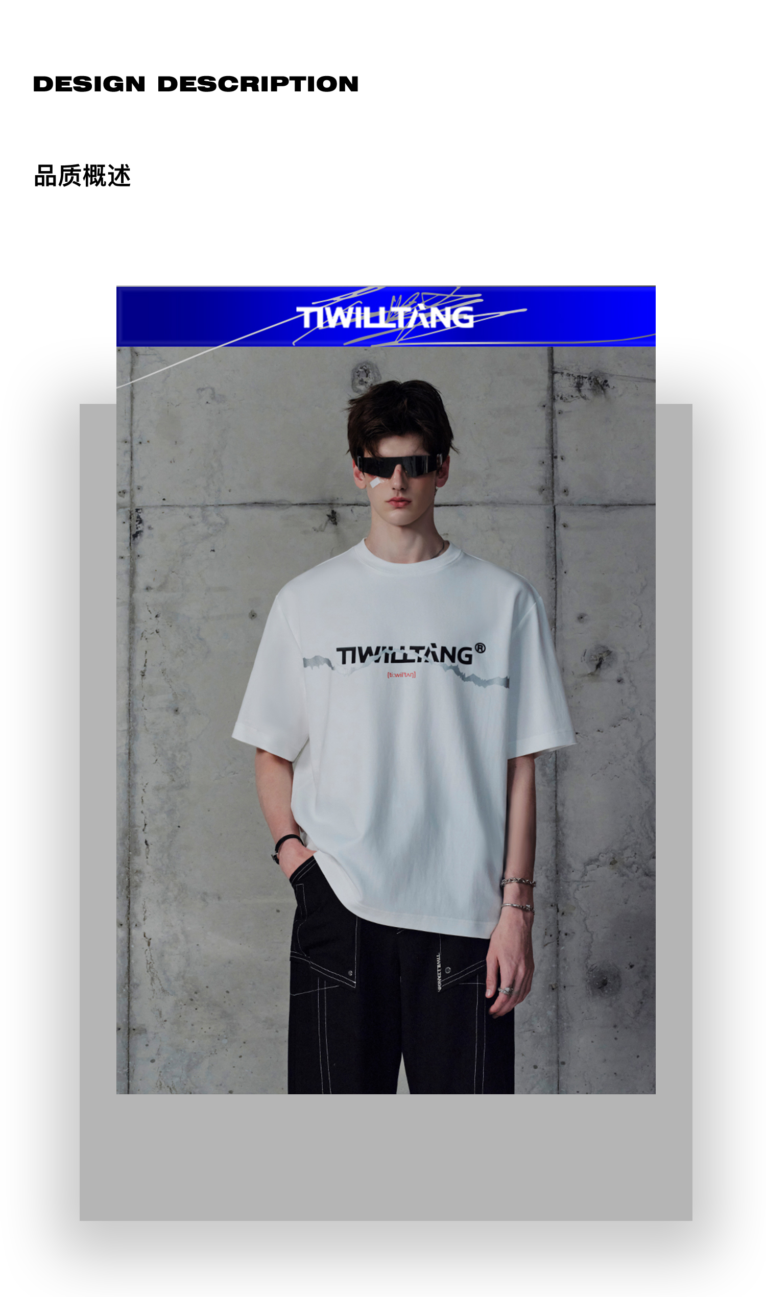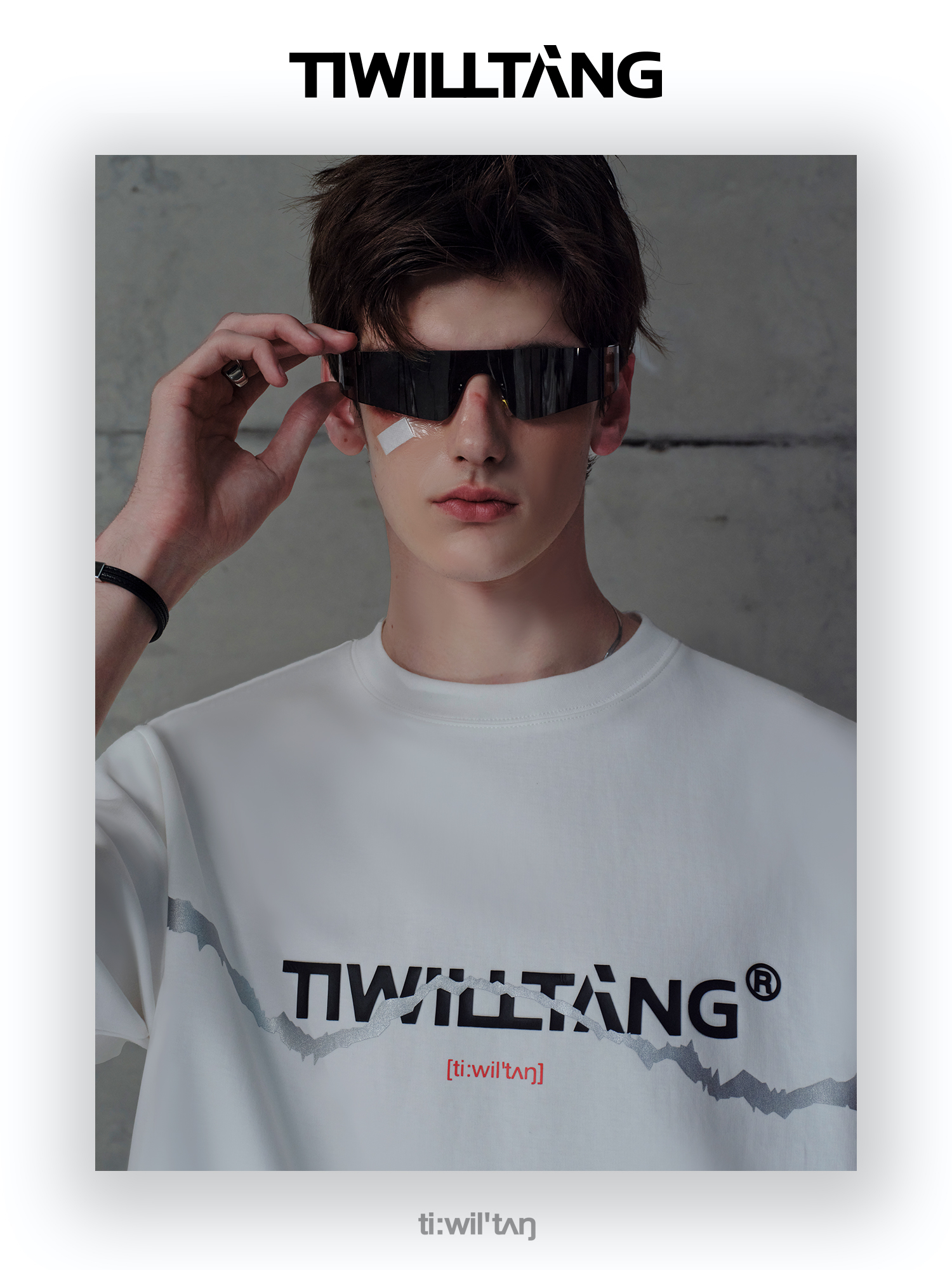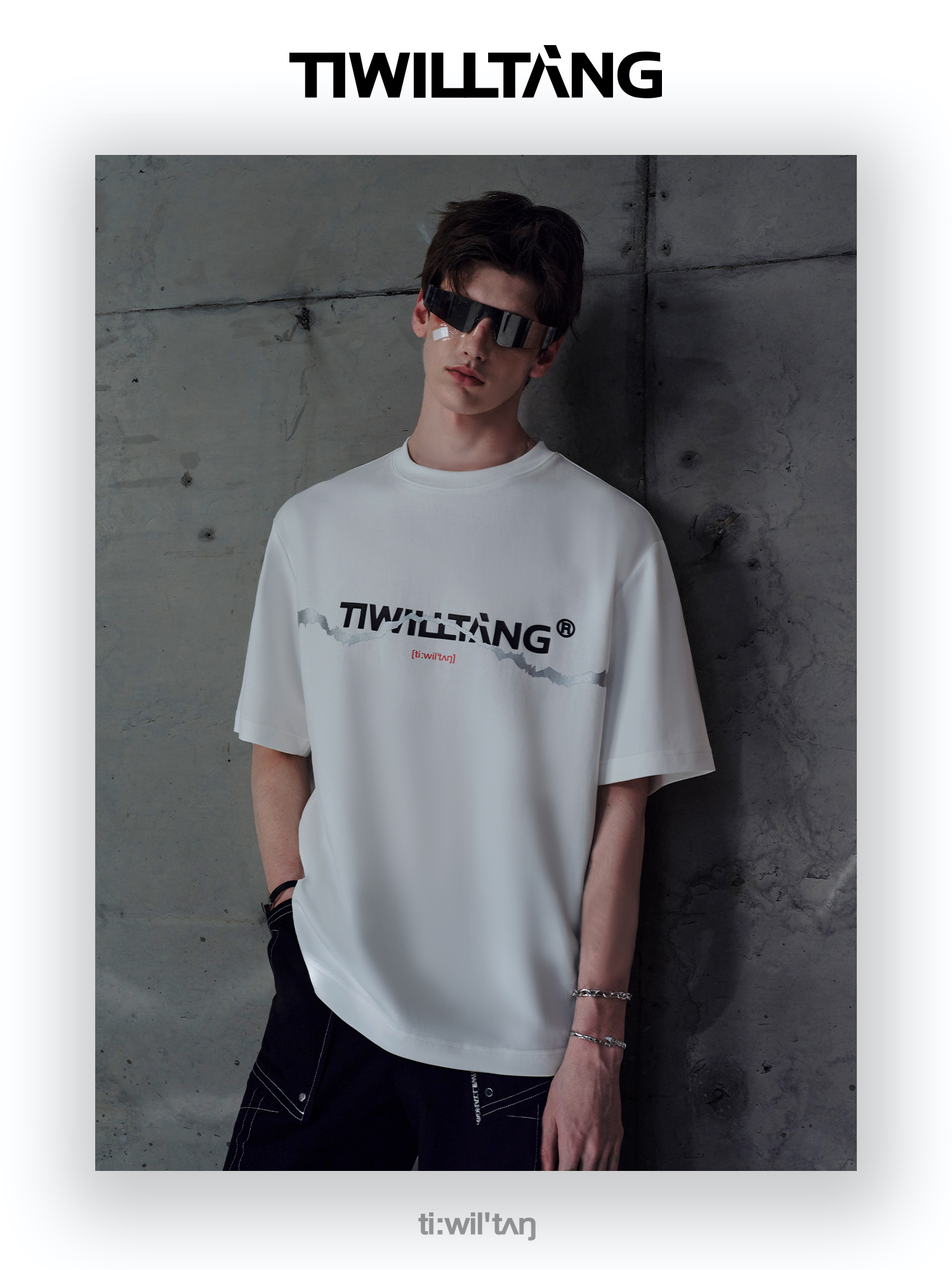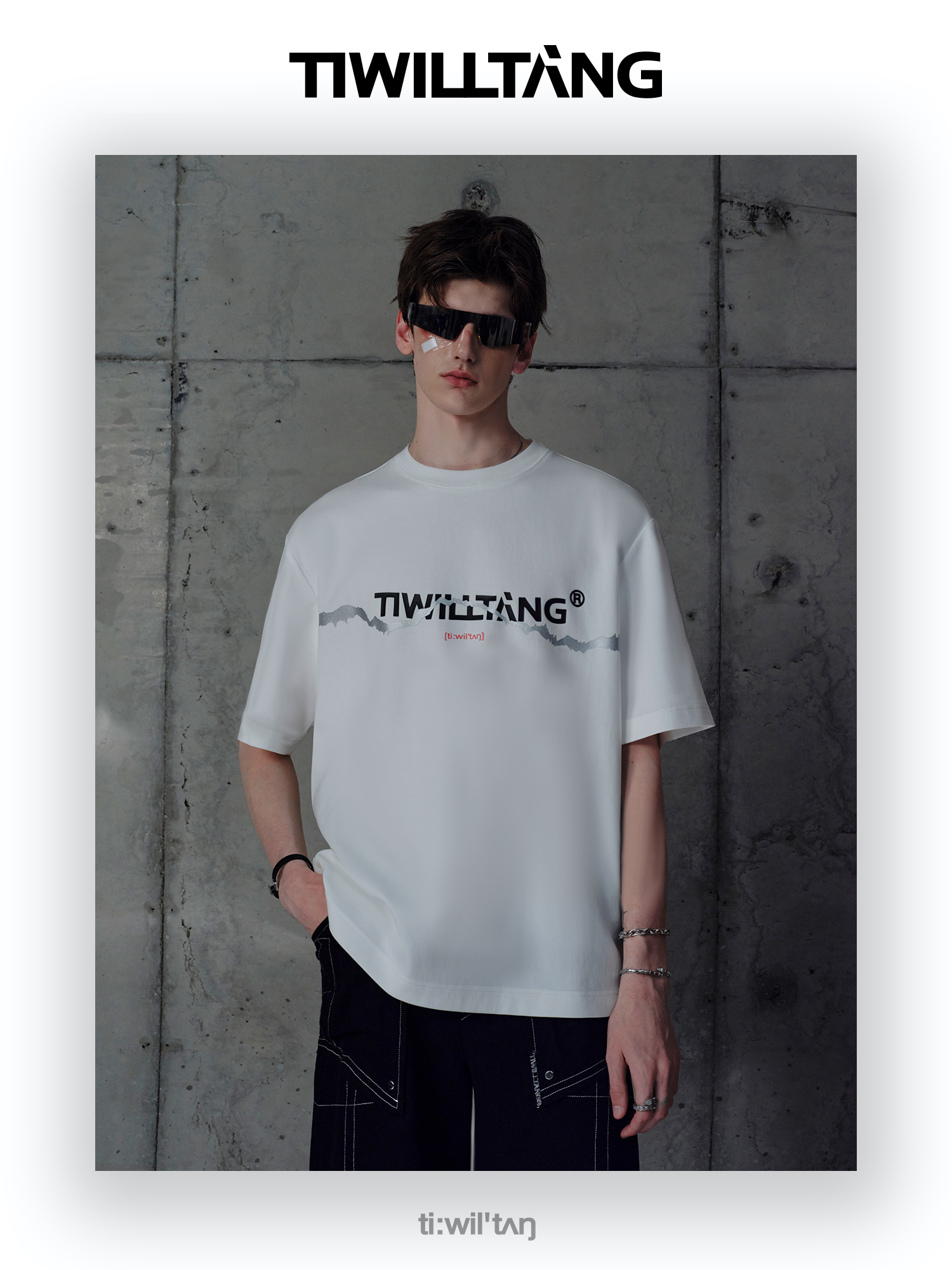 启世录TIWILLTANG“裂银映隙”刷银厚板印花logo短袖圆领t恤男