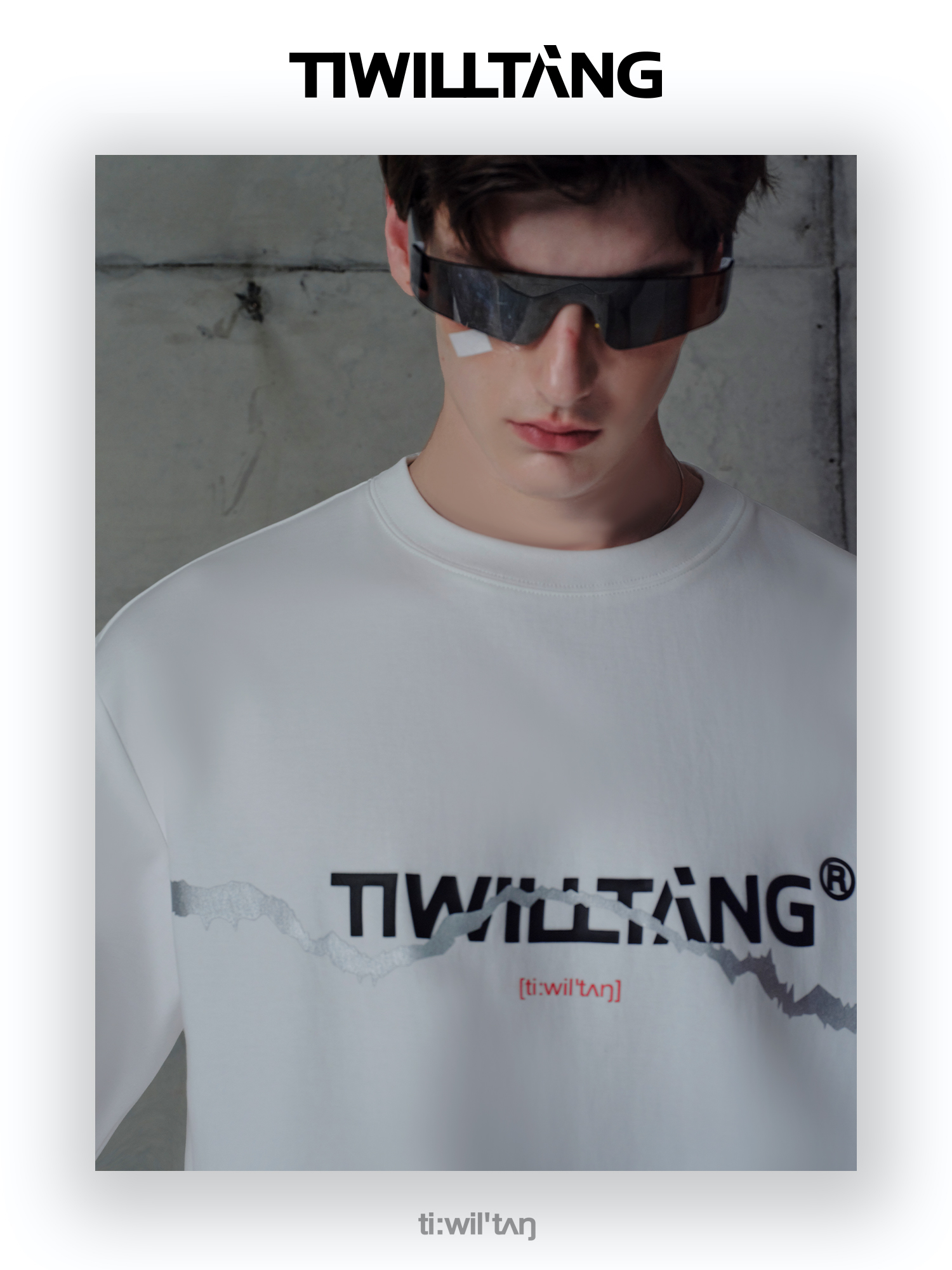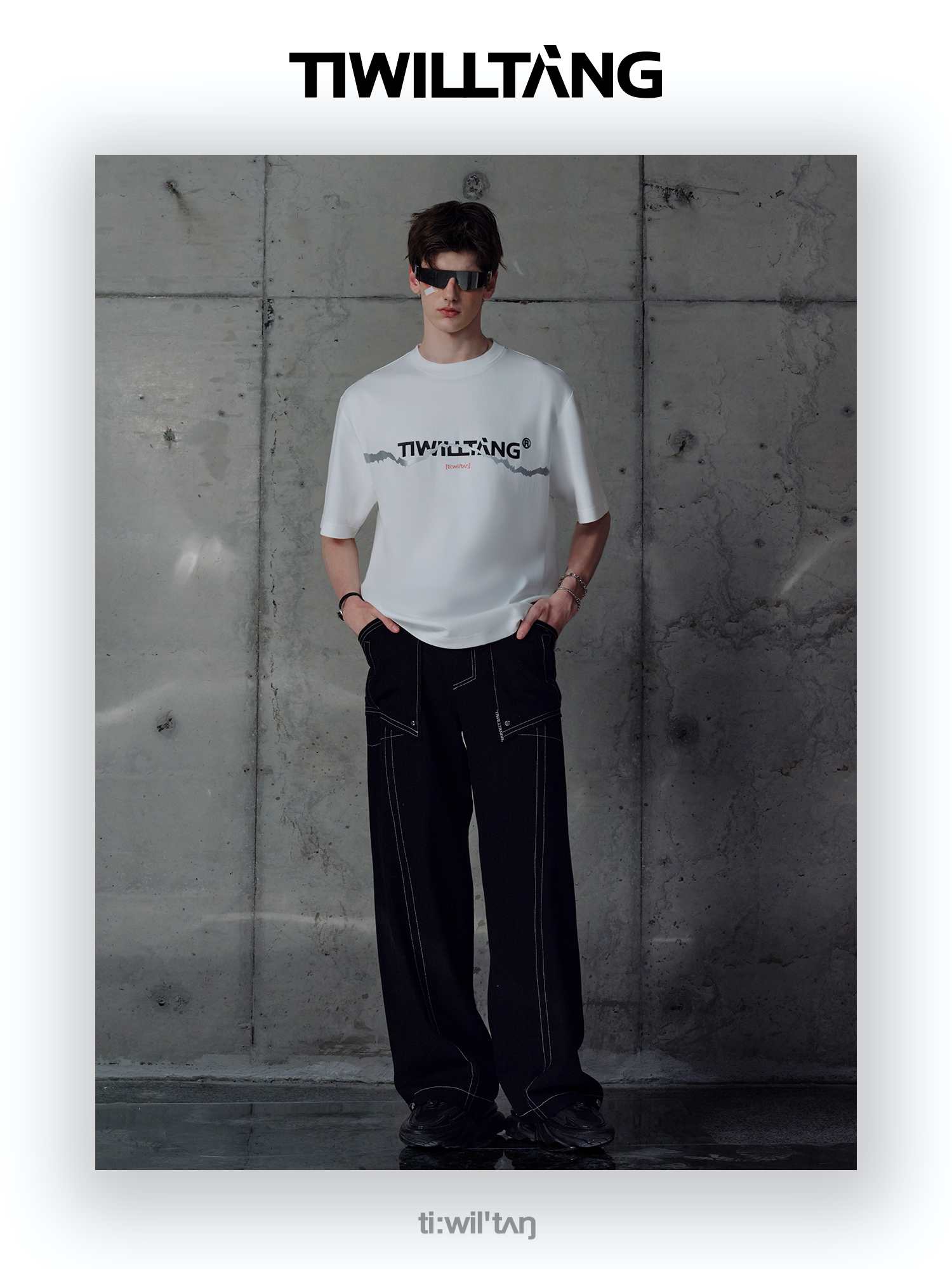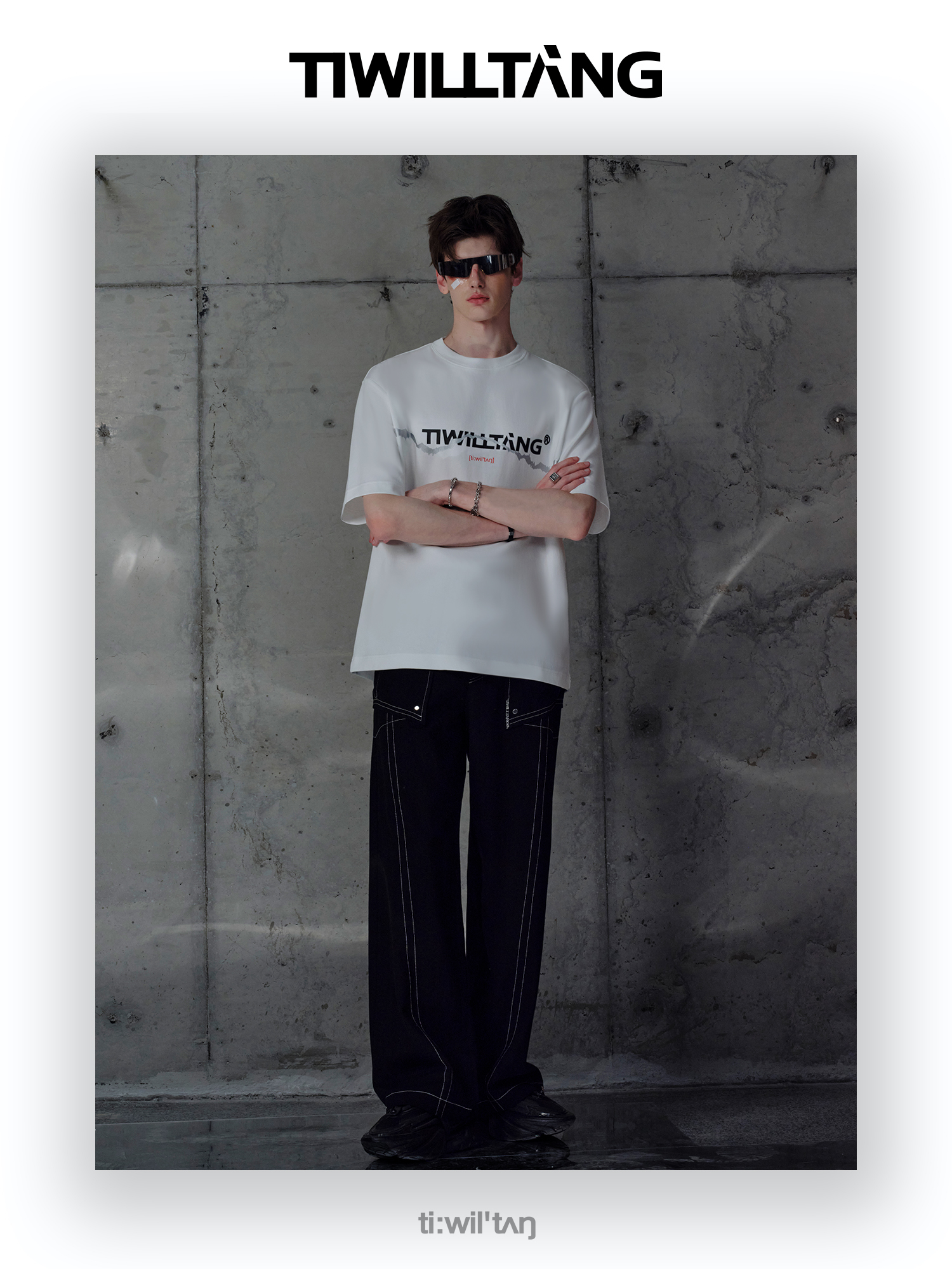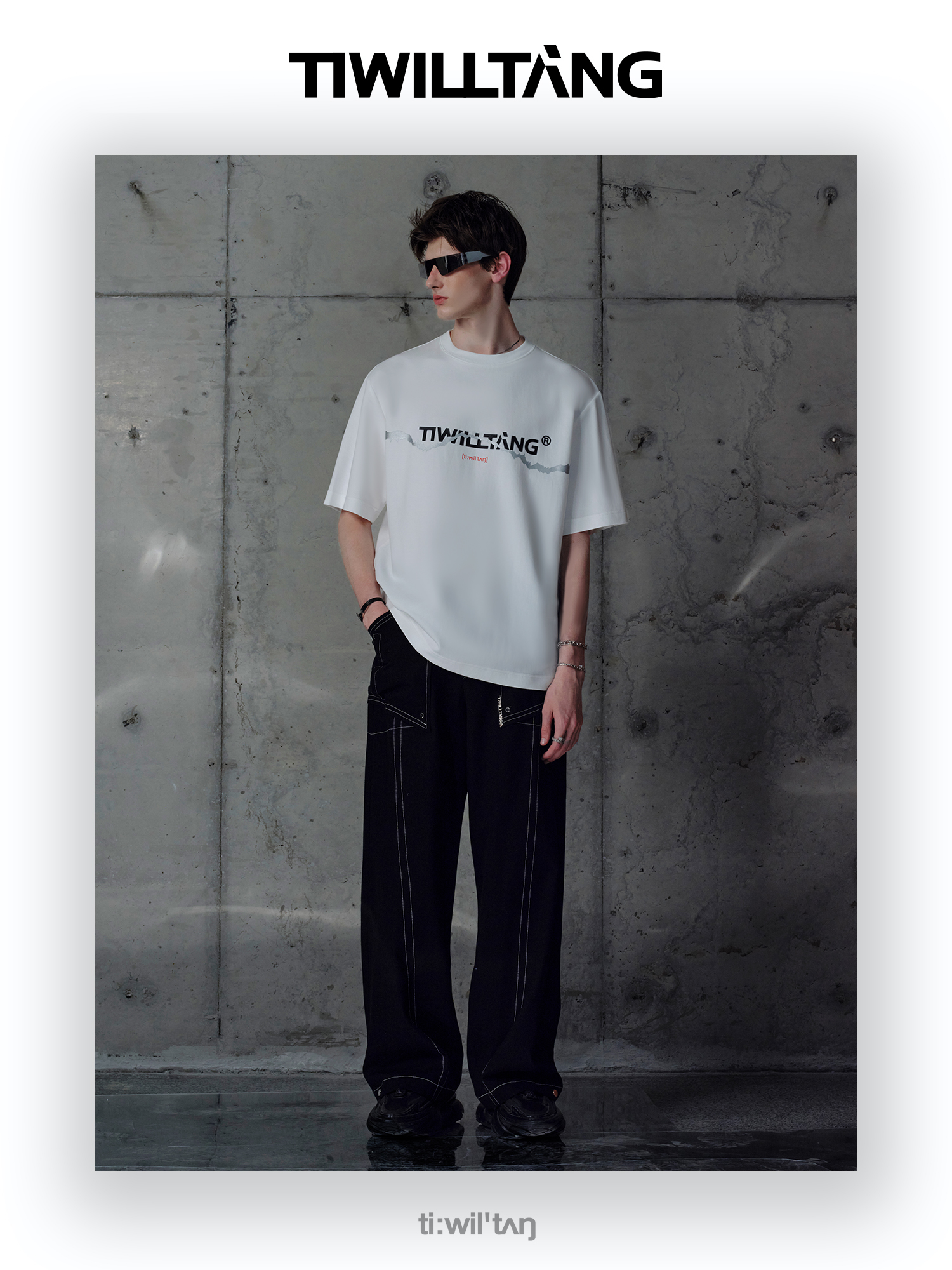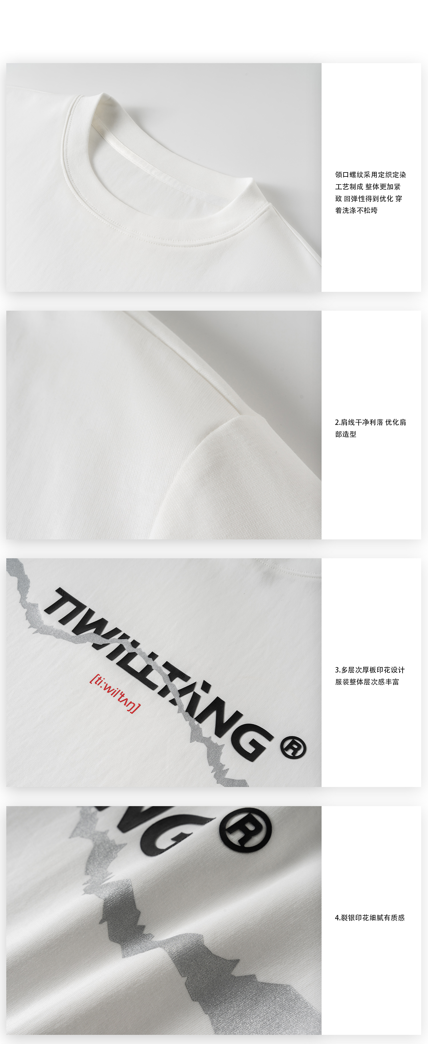 启世录TIWILLTANG“裂银映隙”刷银厚板印花logo短袖圆领t恤男