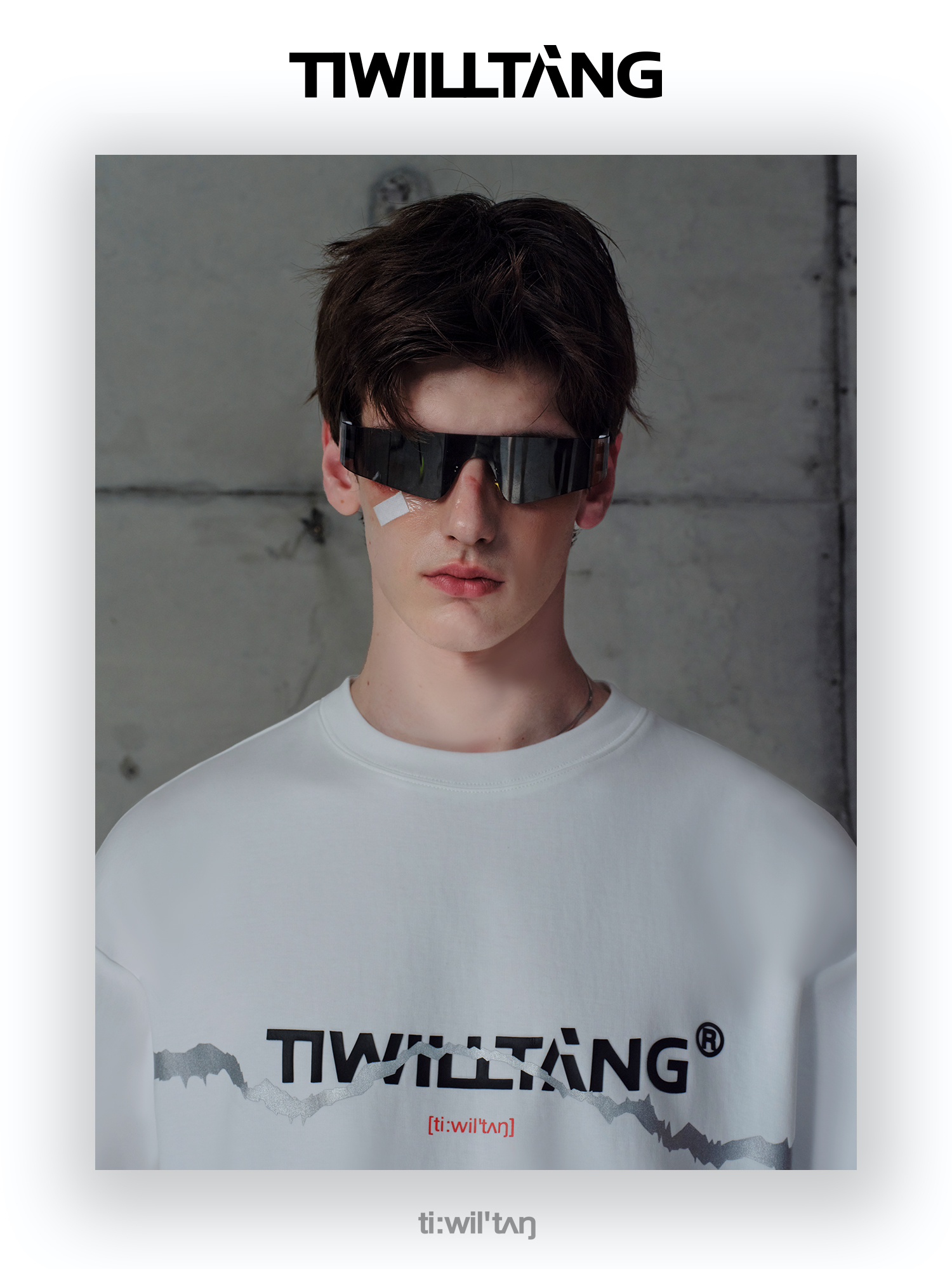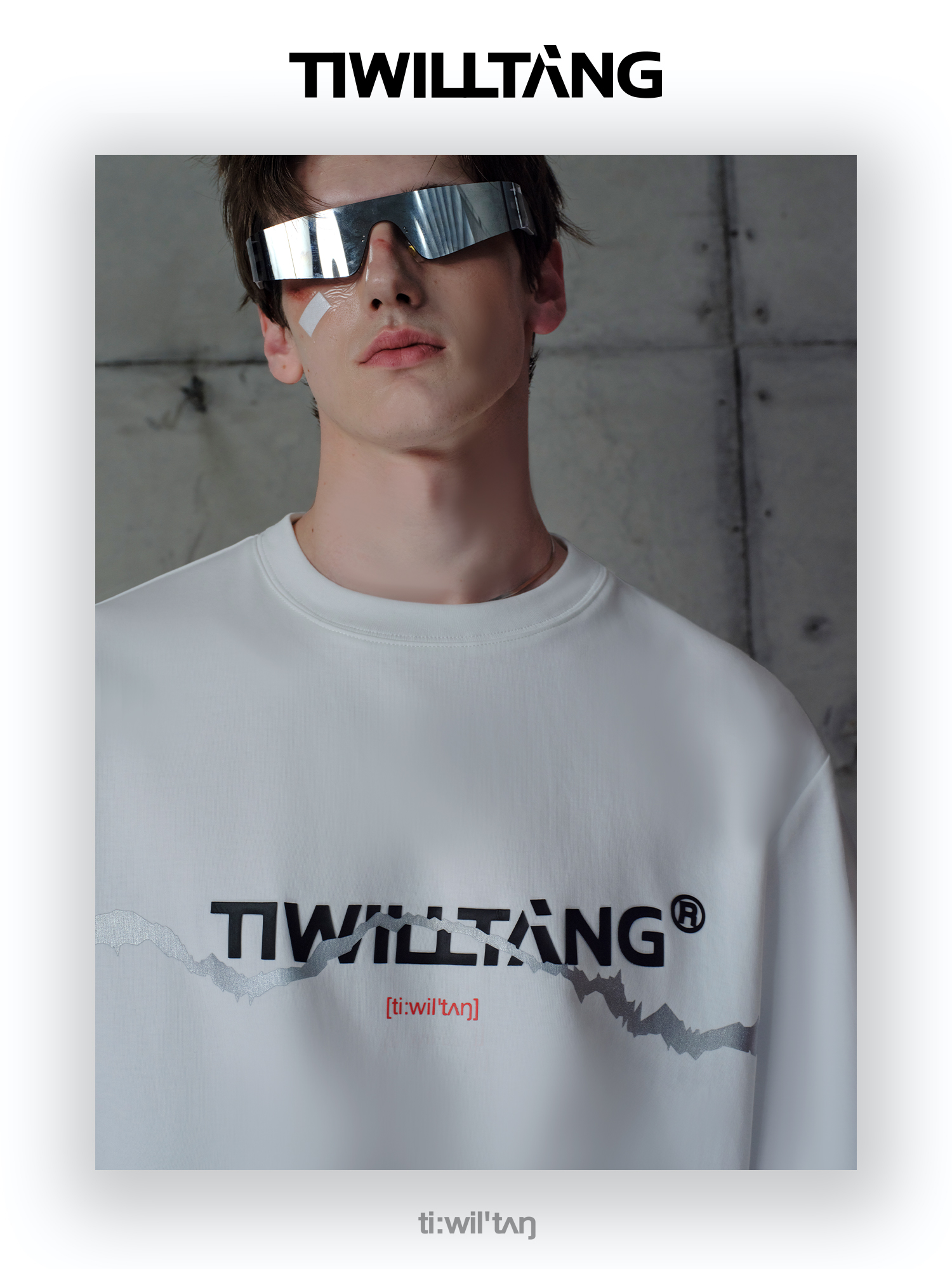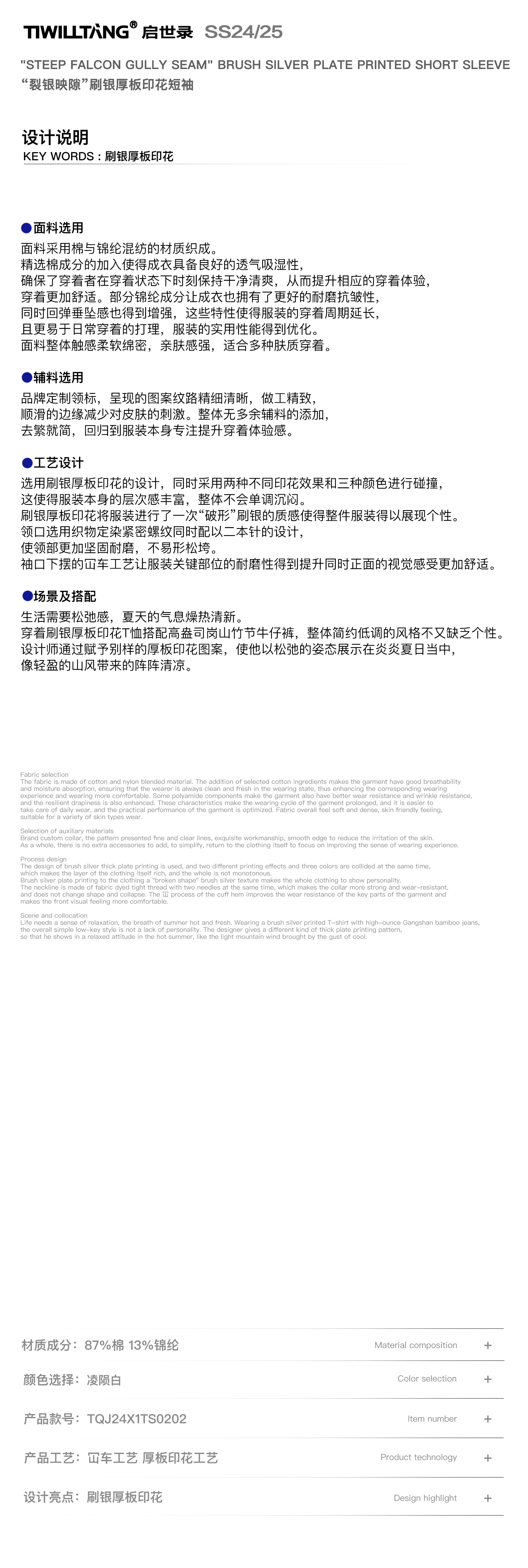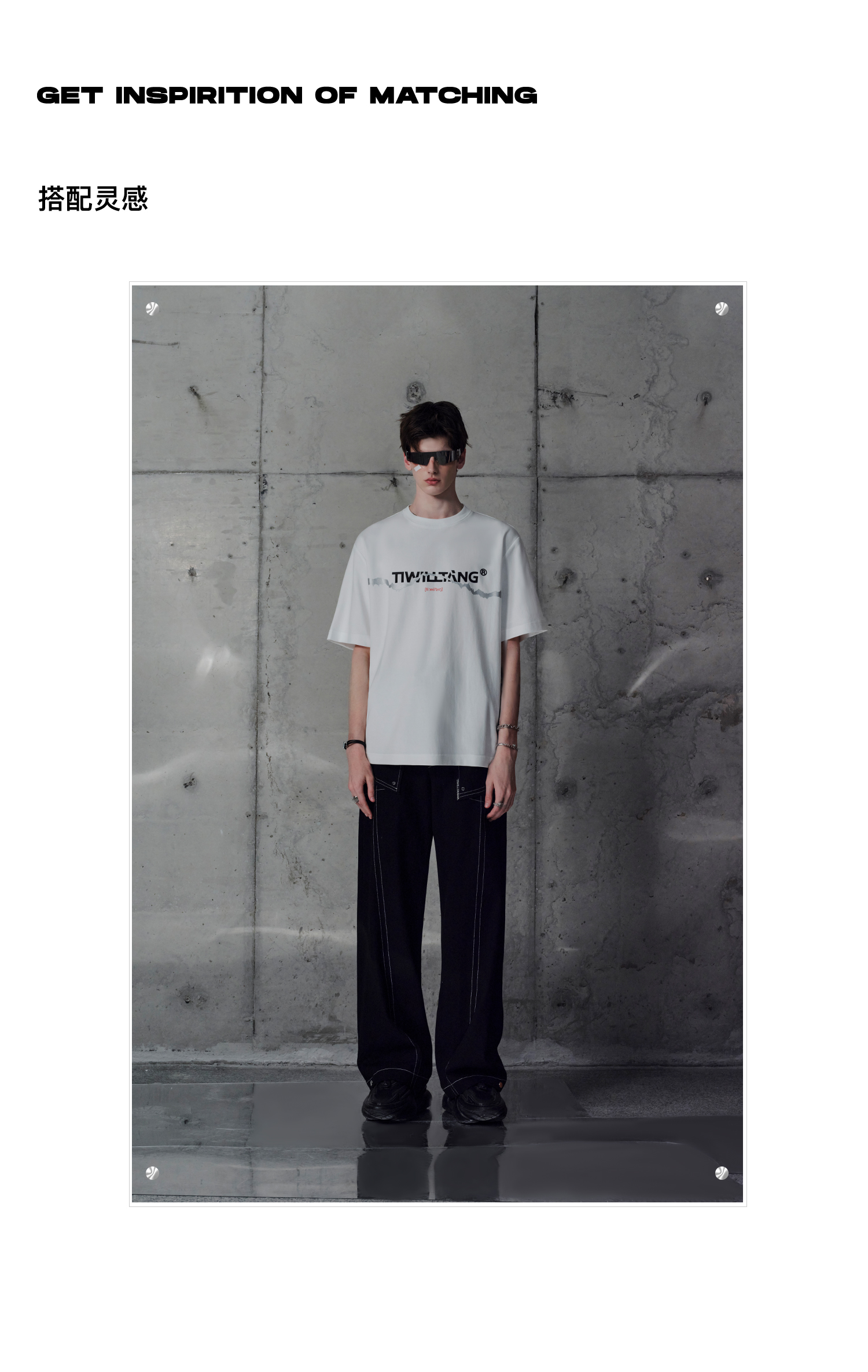启世录TIWILLTANG“裂银映隙”刷银厚板印花logo短袖圆领t恤男