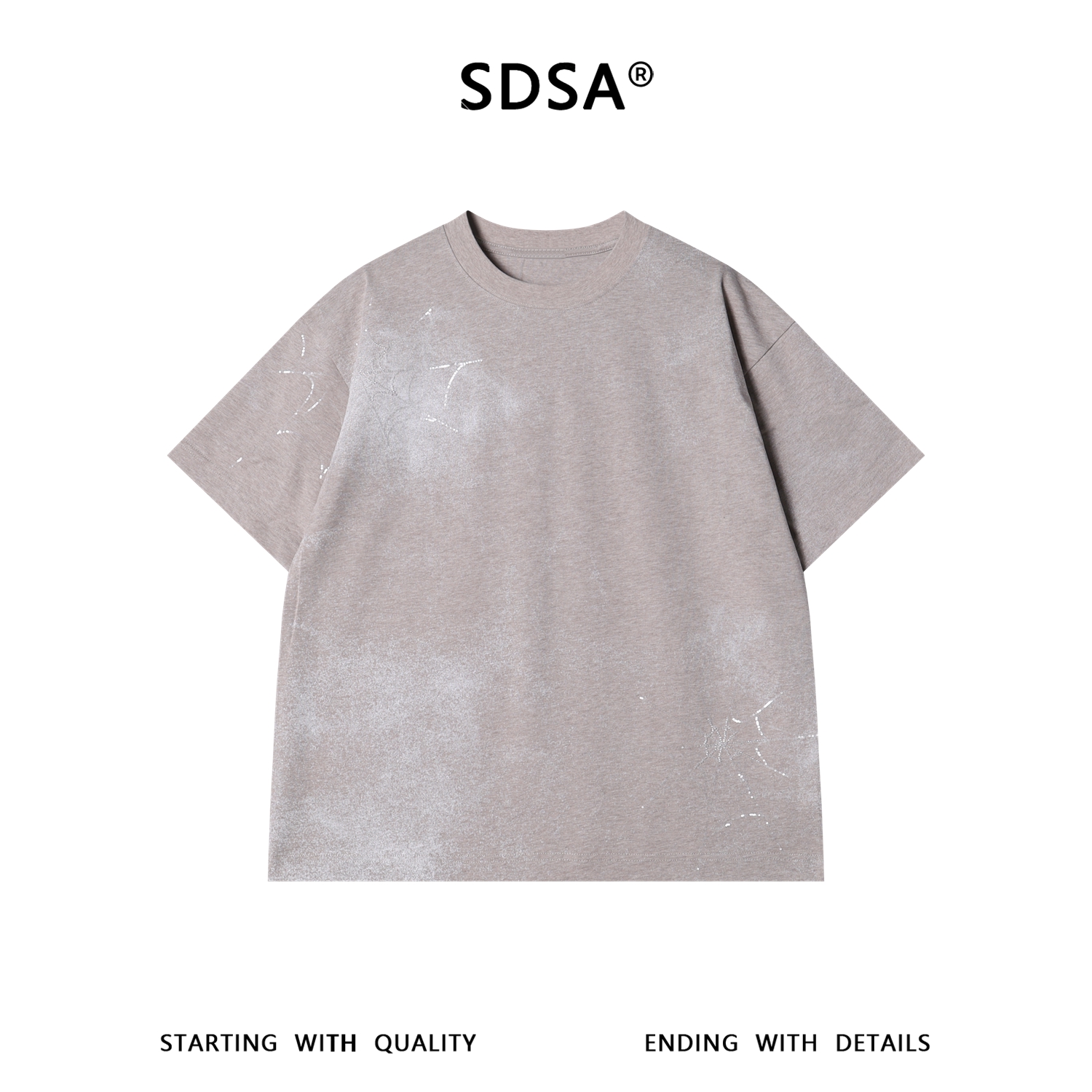 SDSA男装2026新款高贵轻奢潮牌蛛网亮片圆领短袖T恤扎染百搭上衣